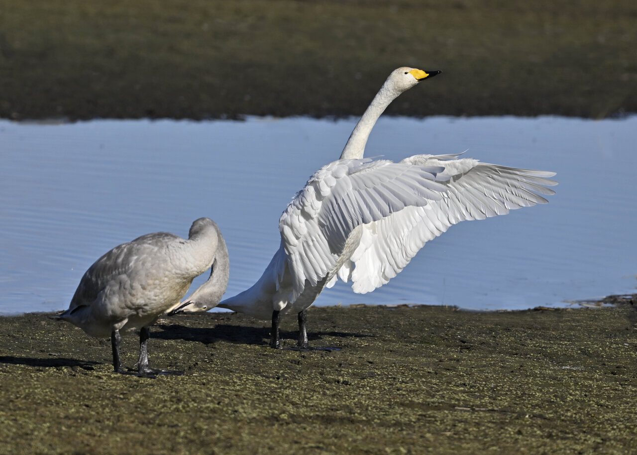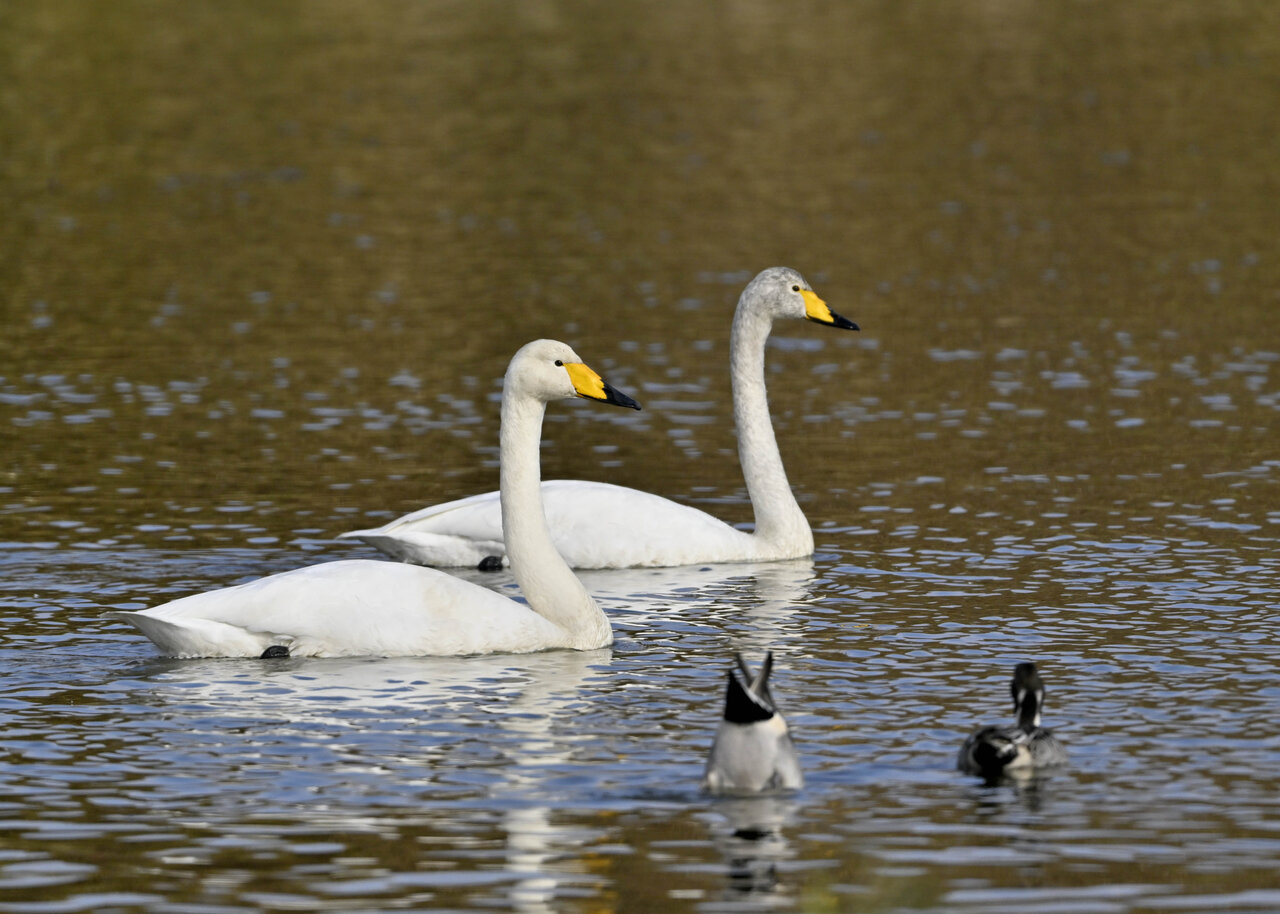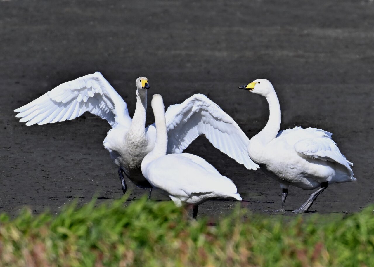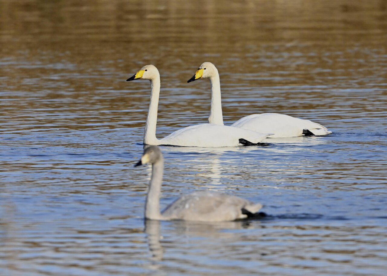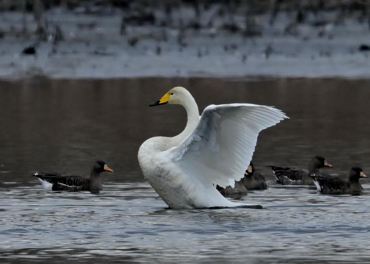 毎年やって来るアメリカコハクチョウのペアーもまだ飛来して無く、オオハクチョウとコハクチョウのみが見られました。