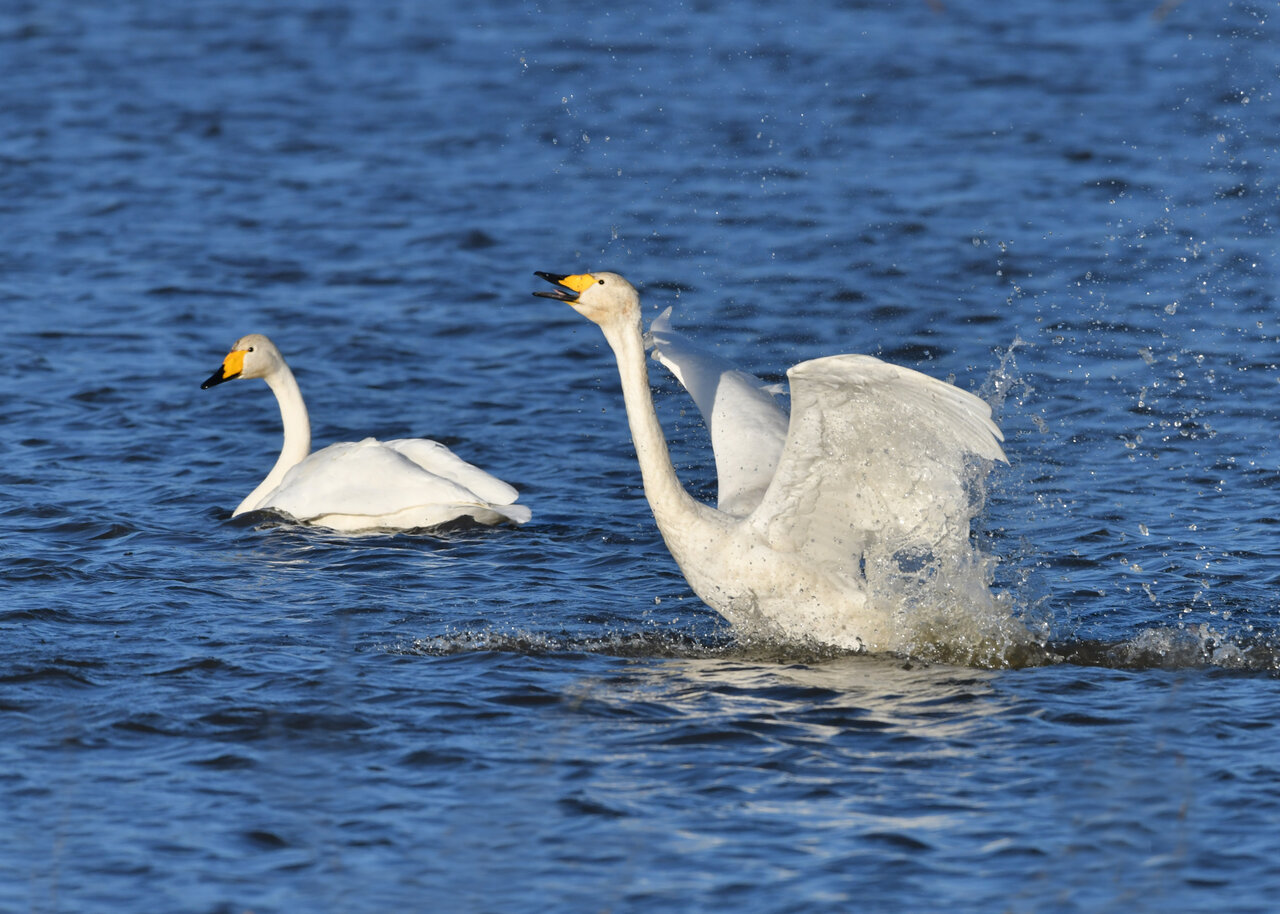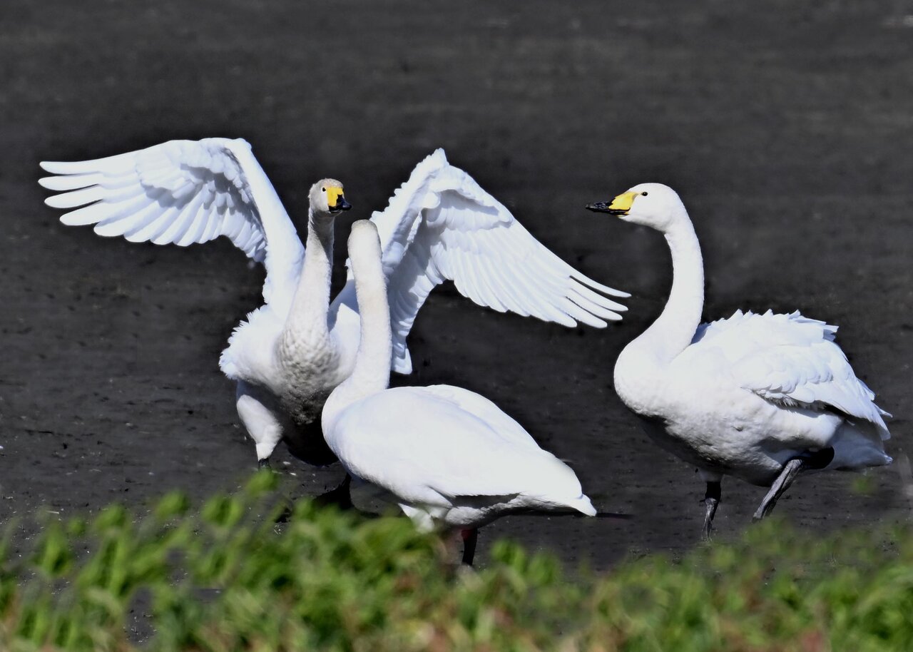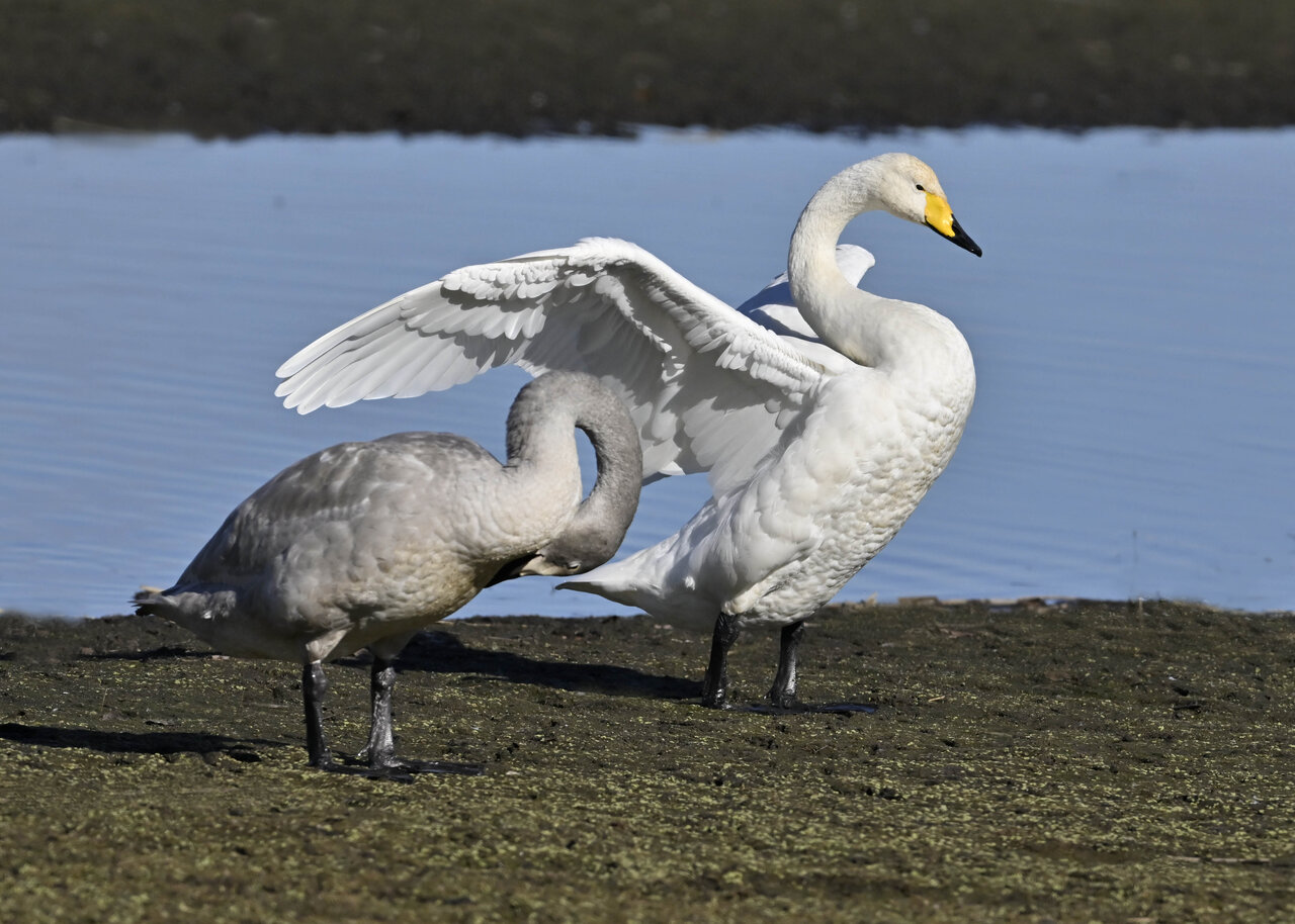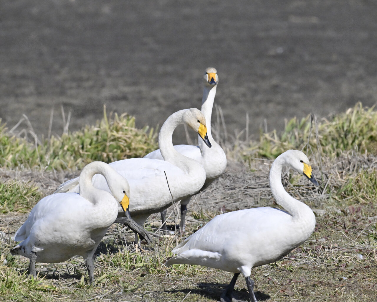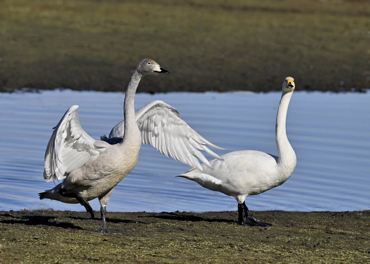 毎年やって来るアメリカコハクチョウのペアーもまだ飛来して無く、オオハクチョウとコハクチョウのみが見られました。