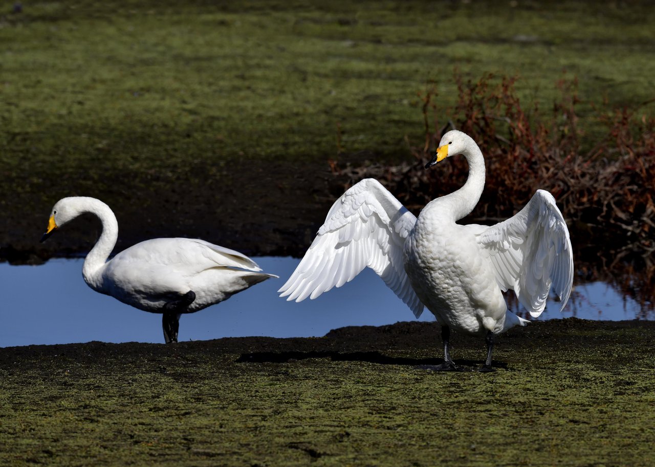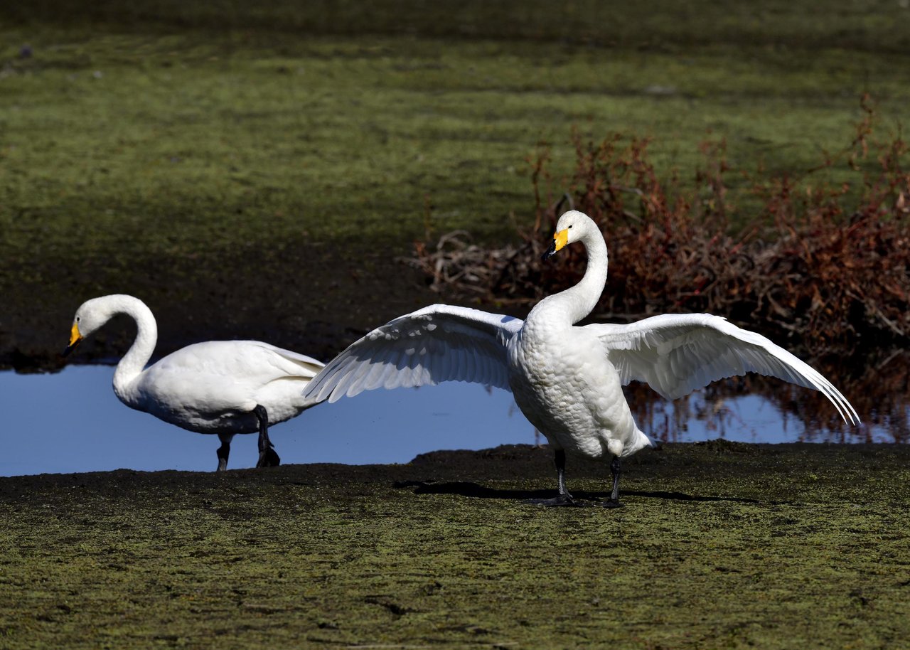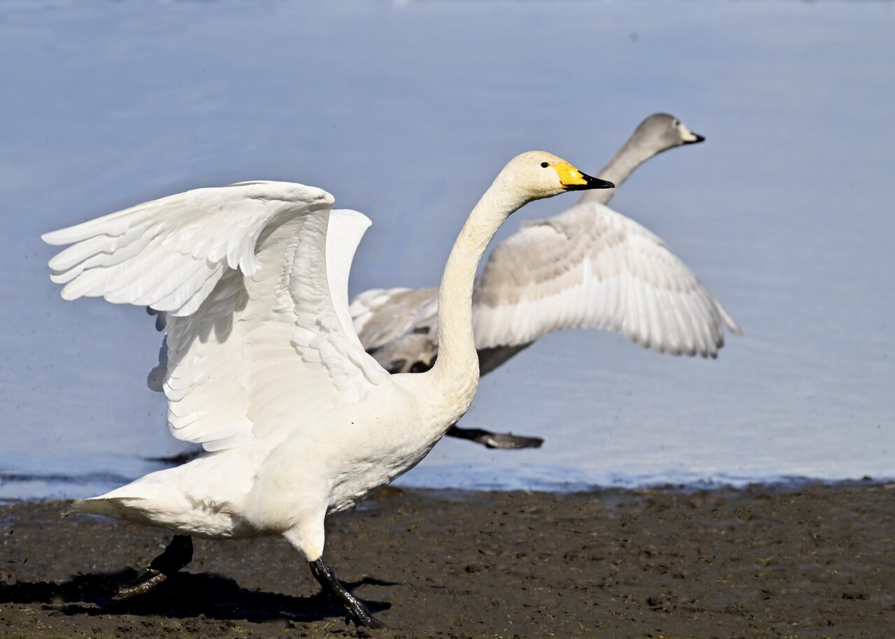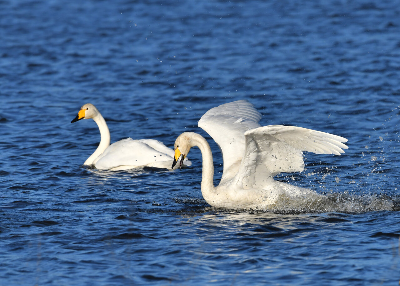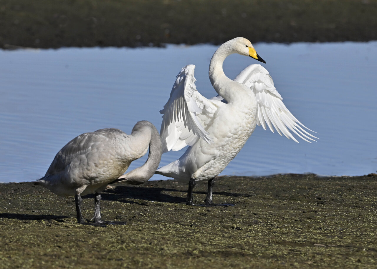 毎年やって来るアメリカコハクチョウのペアーもまだ飛来して無く、オオハクチョウとコハクチョウのみが見られました。