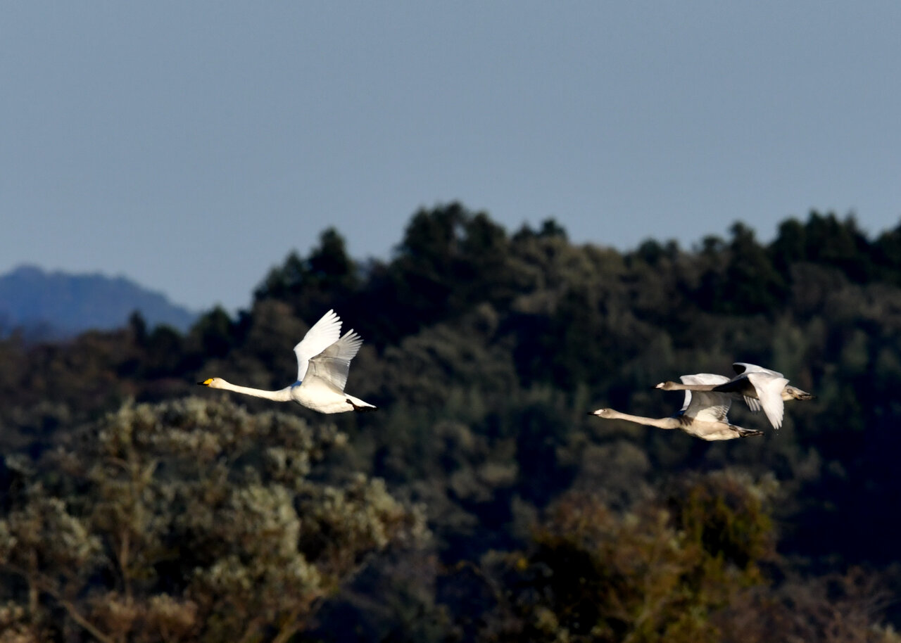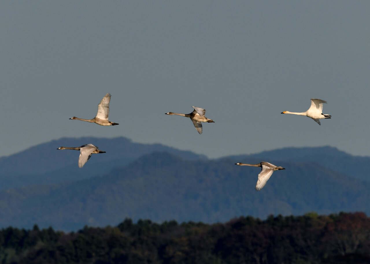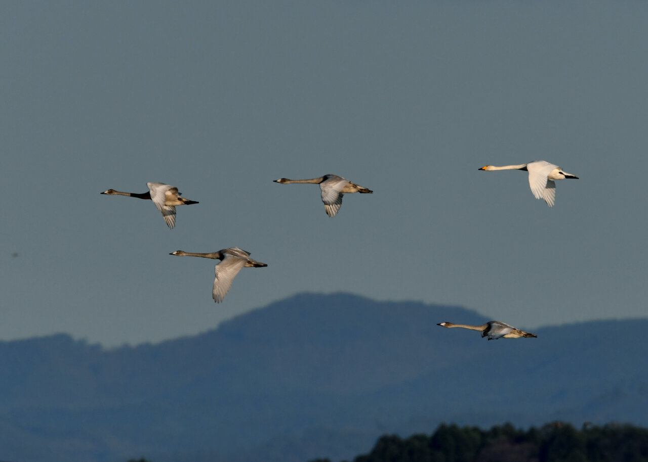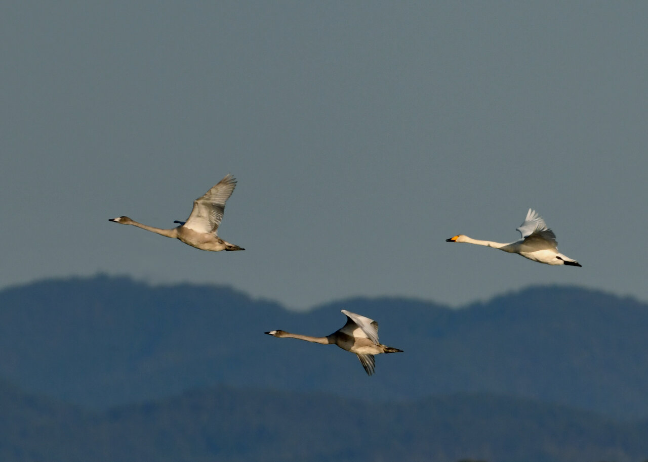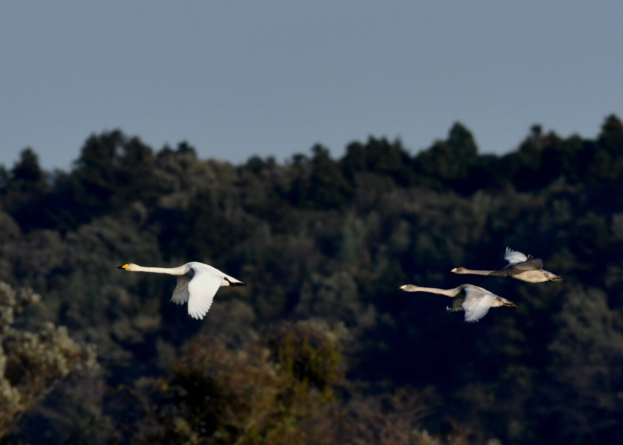 今シーズン初撮りの白鳥です。 白鳥類は北海道には例年通り順調に渡来していますが、北海道・東北が暖かく本州への南下が遅れているようです。