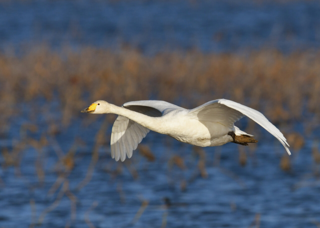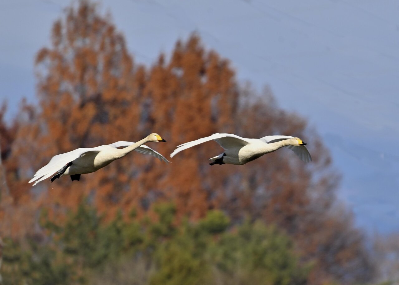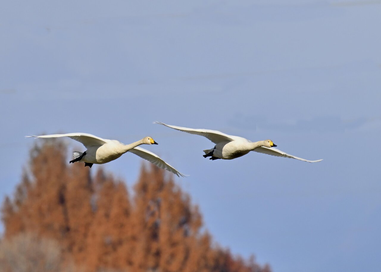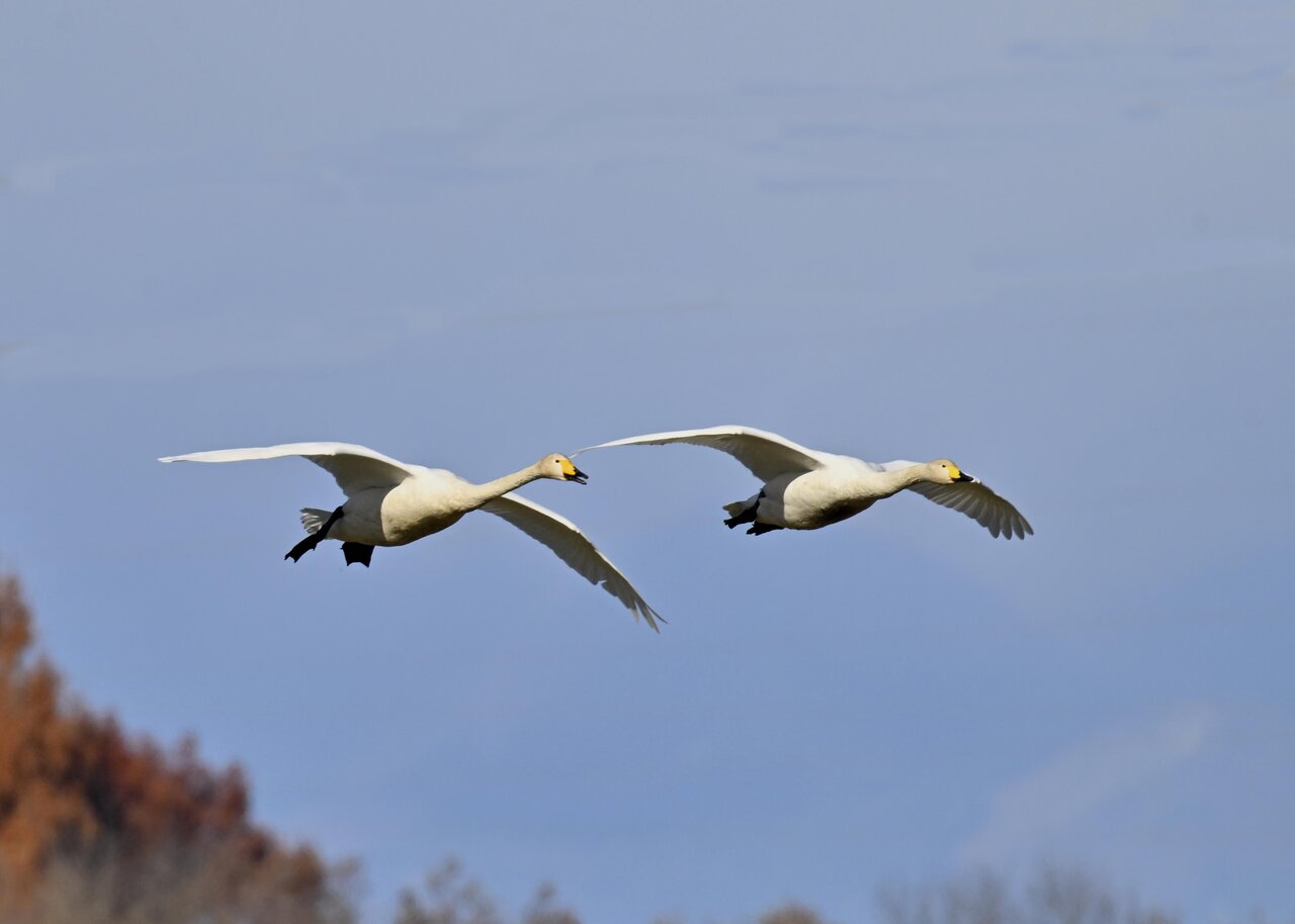 今シーズン初撮りの白鳥です。 白鳥類は北海道には例年通り順調に渡来していますが、北海道・東北が暖かく本州への南下が遅れているようです。