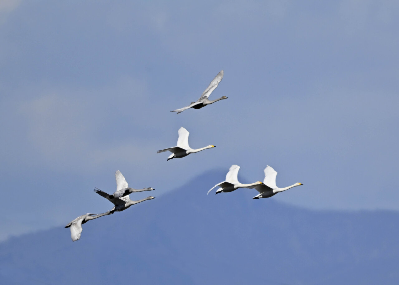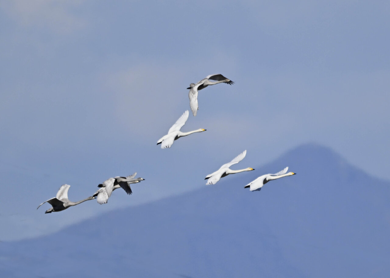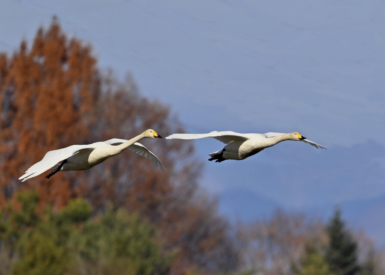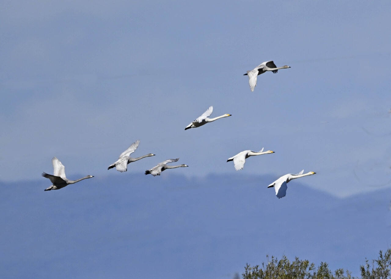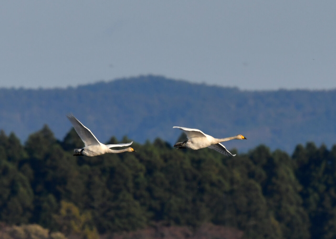 今シーズン初撮りの白鳥です。 白鳥類は北海道には例年通り順調に渡来していますが、北海道・東北が暖かく本州への南下が遅れているようです。