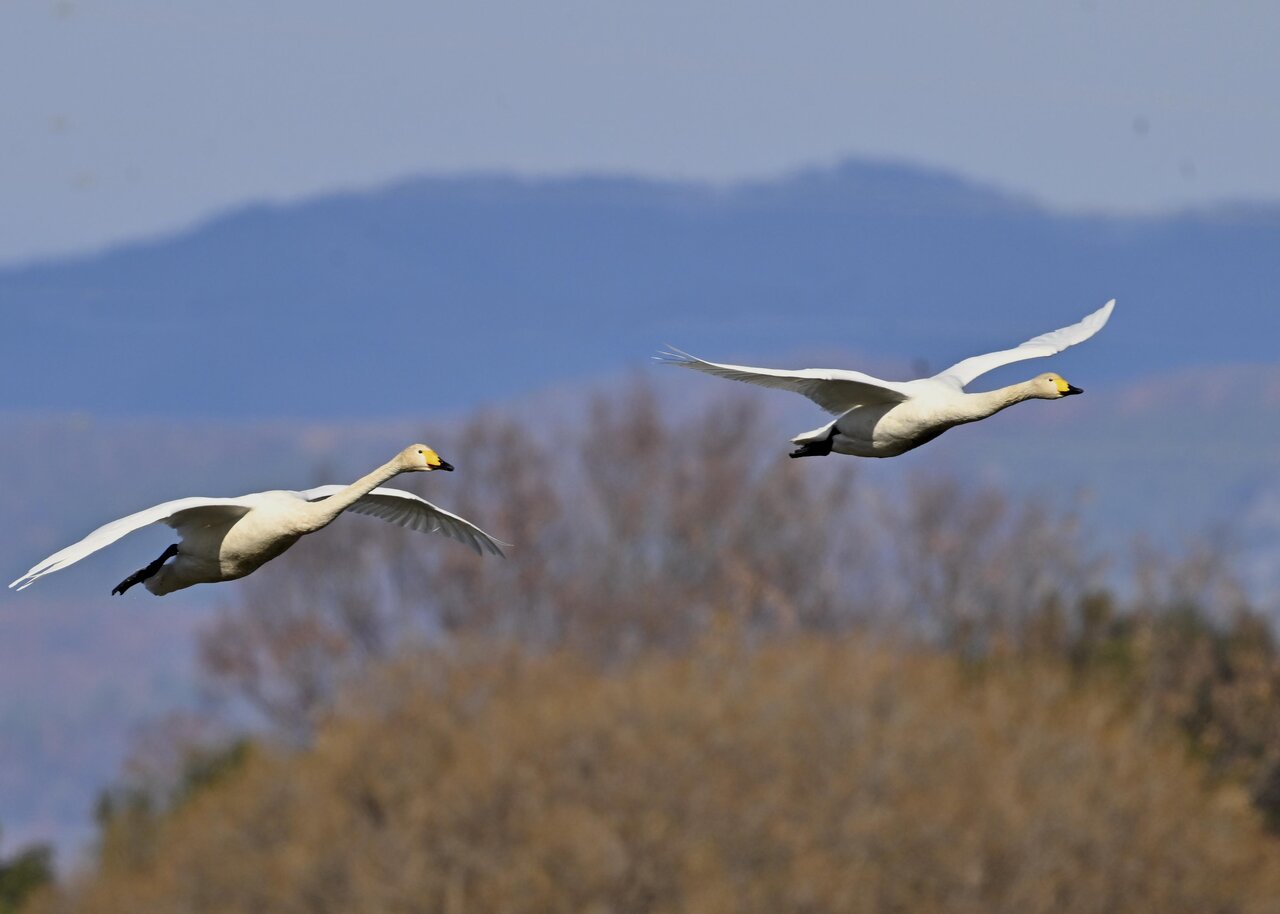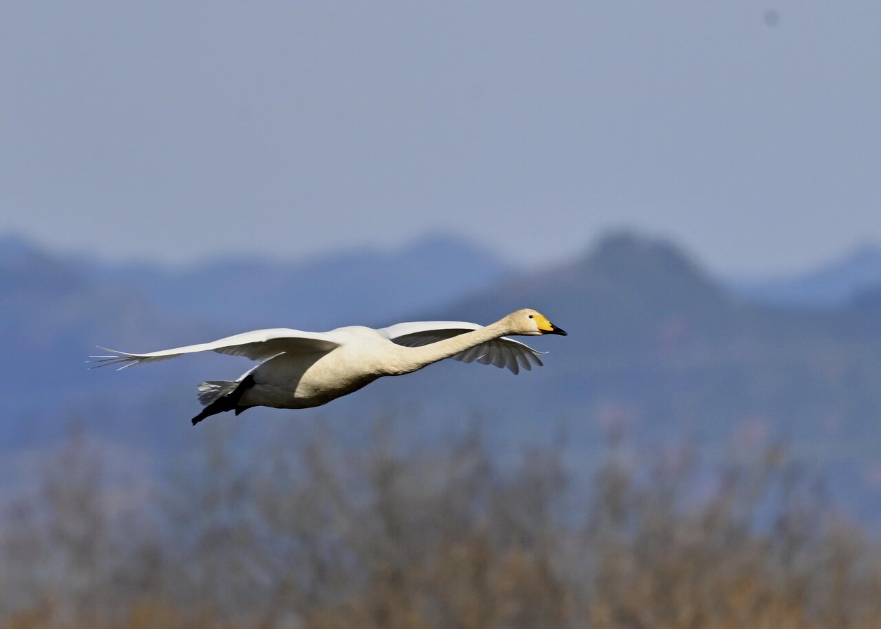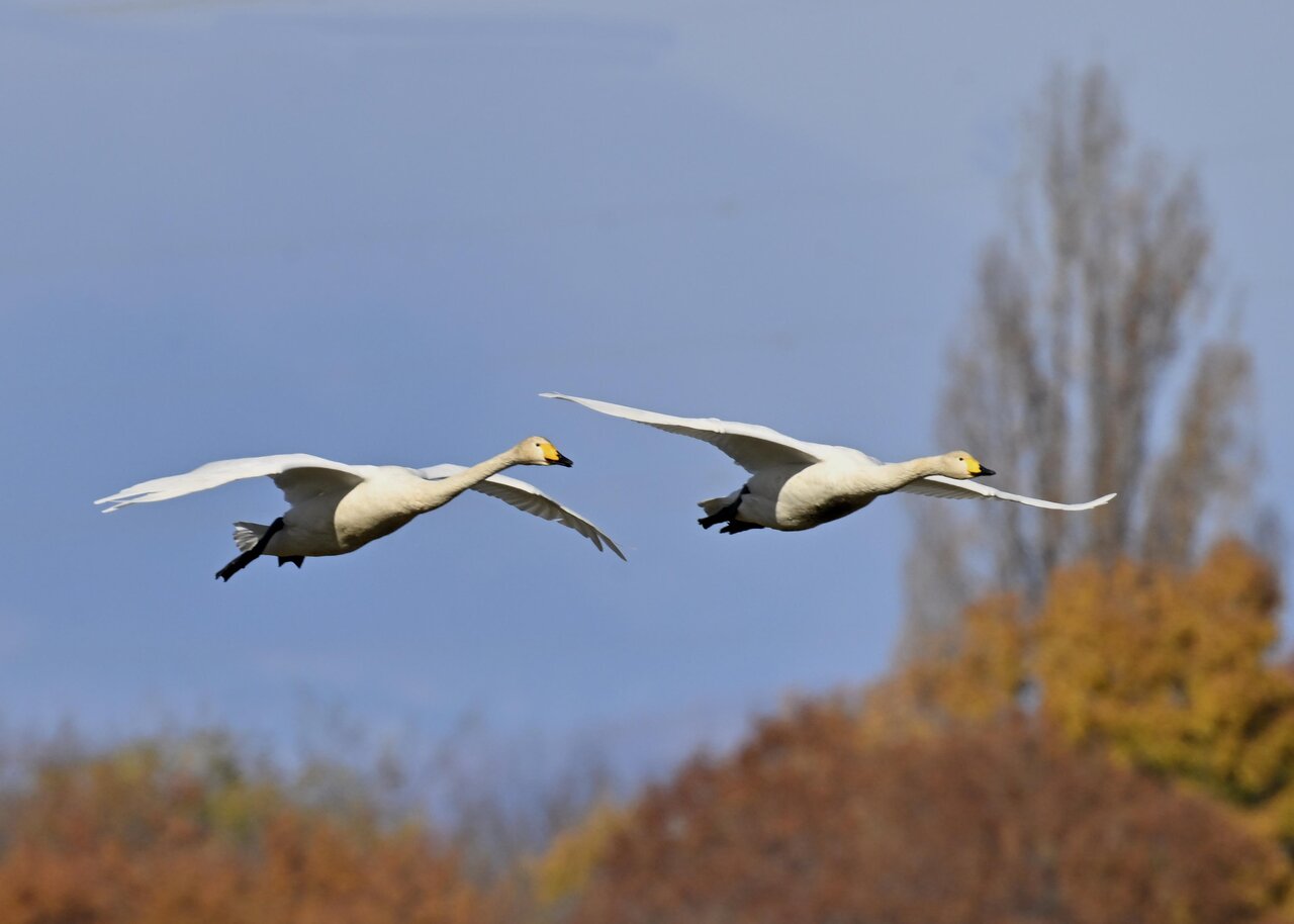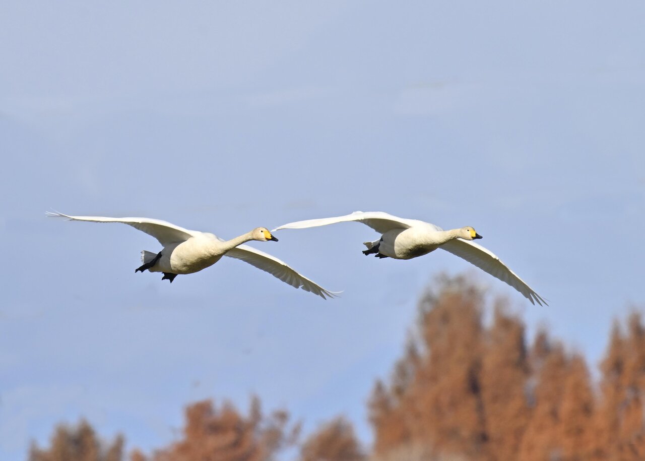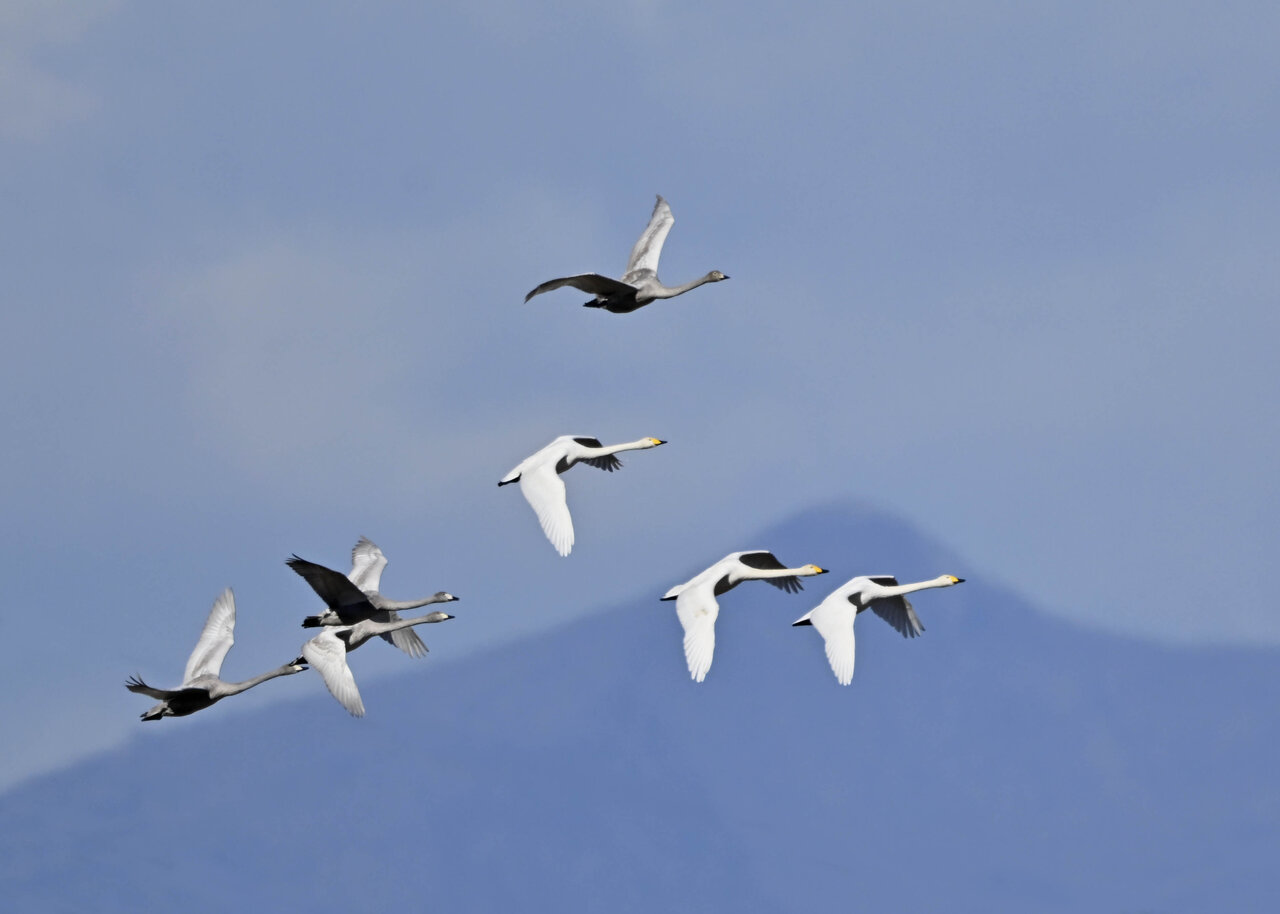 今シーズン初撮りの白鳥です。 白鳥類は北海道には例年通り順調に渡来していますが、北海道・東北が暖かく本州への南下が遅れているようです。