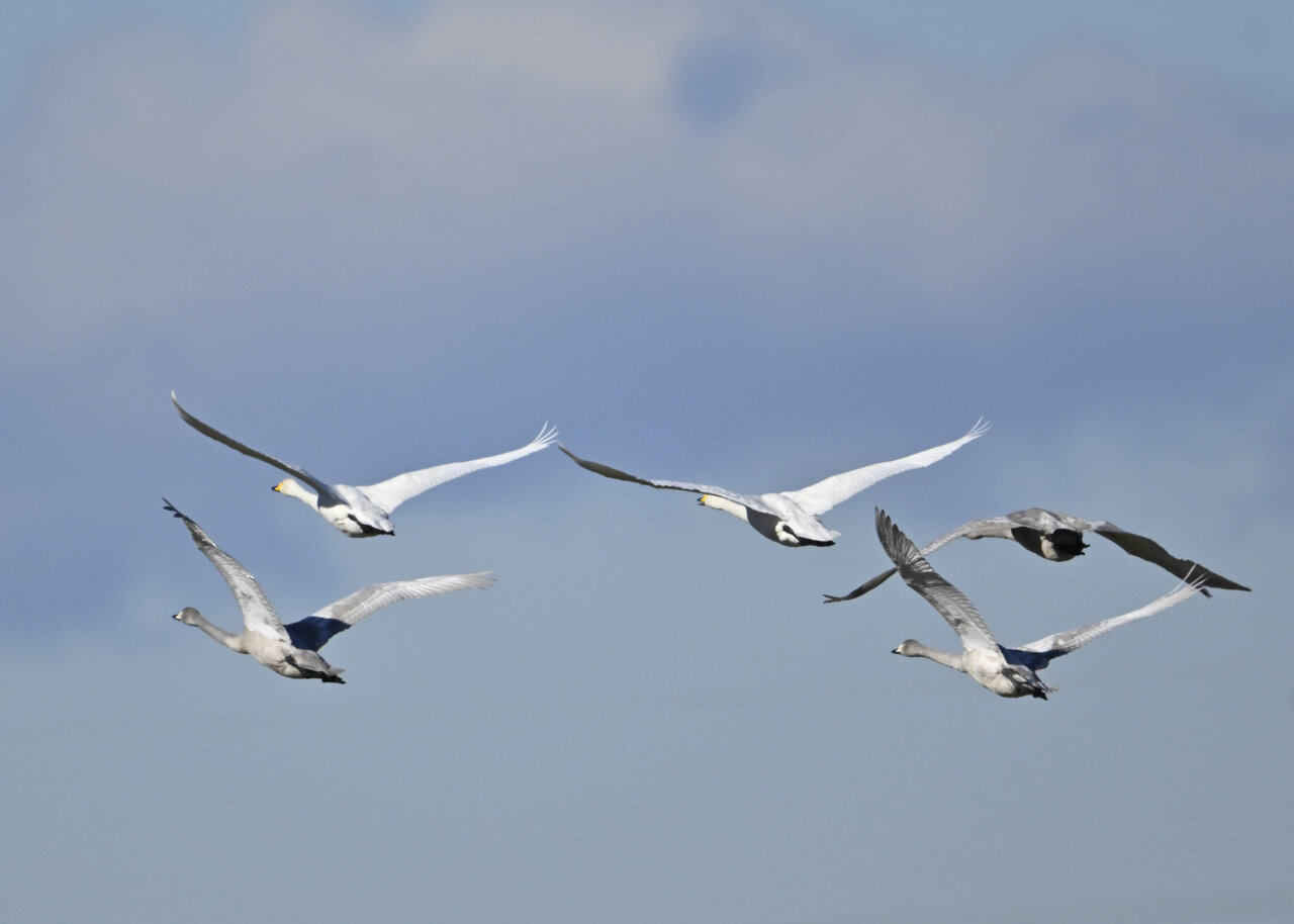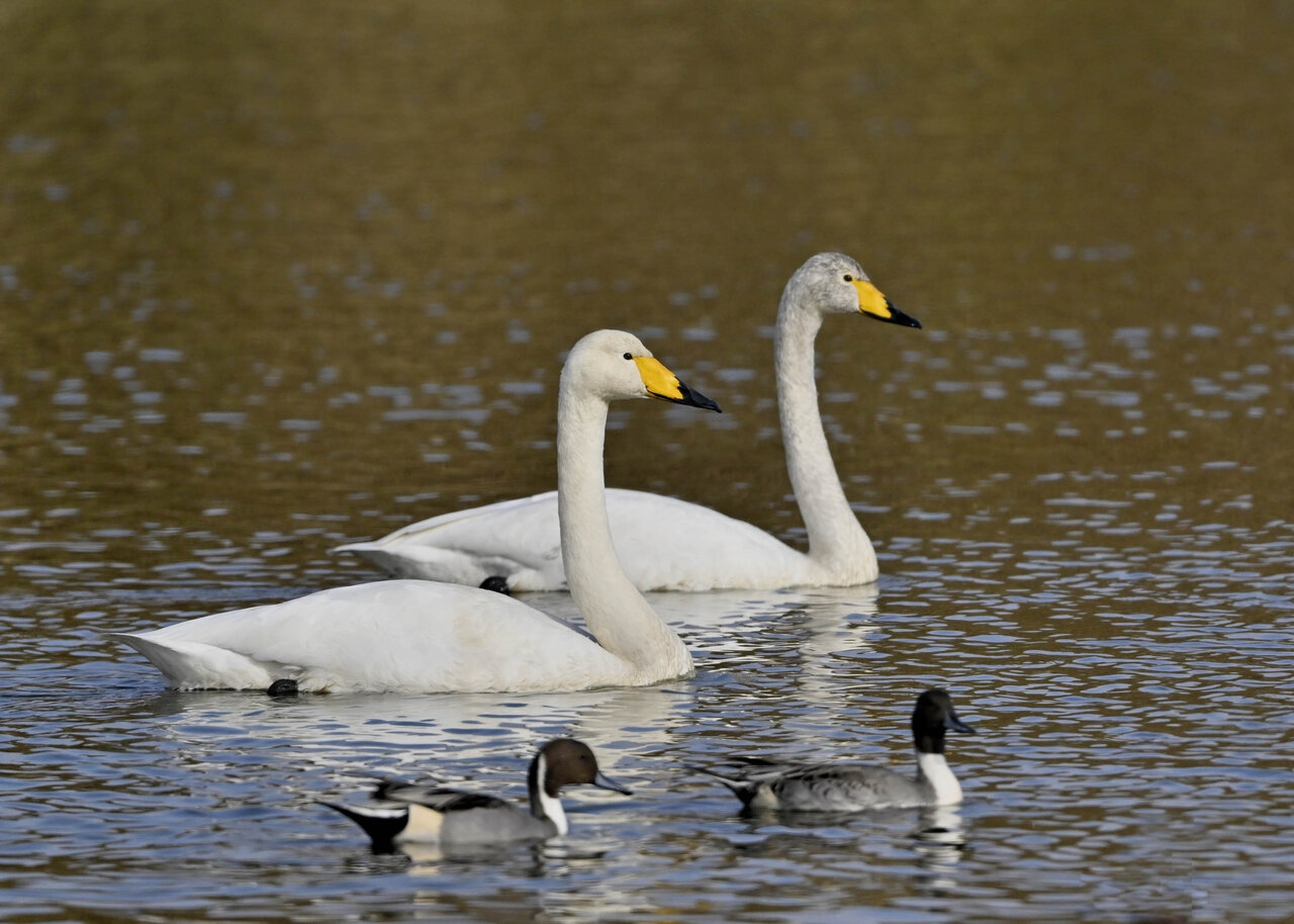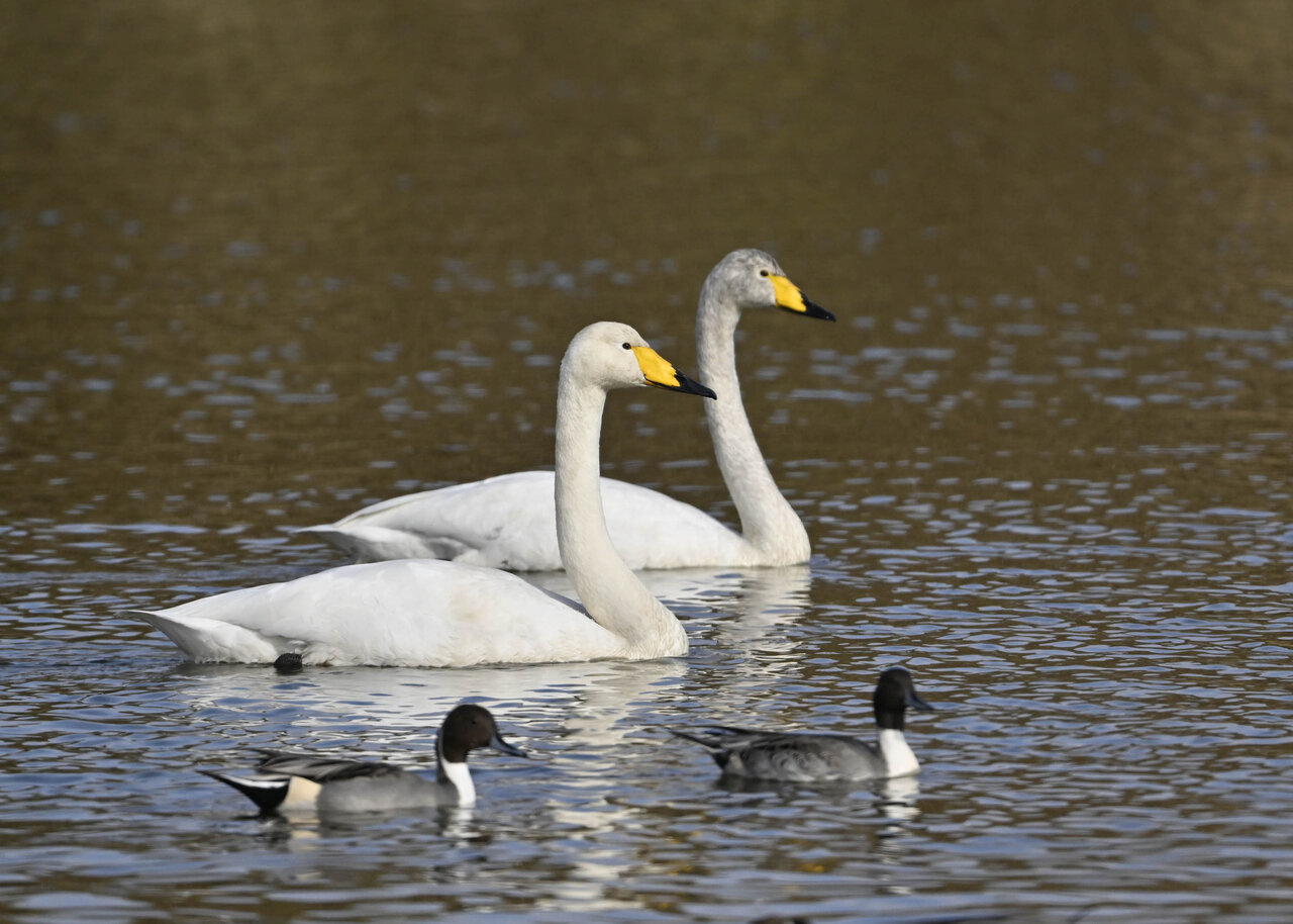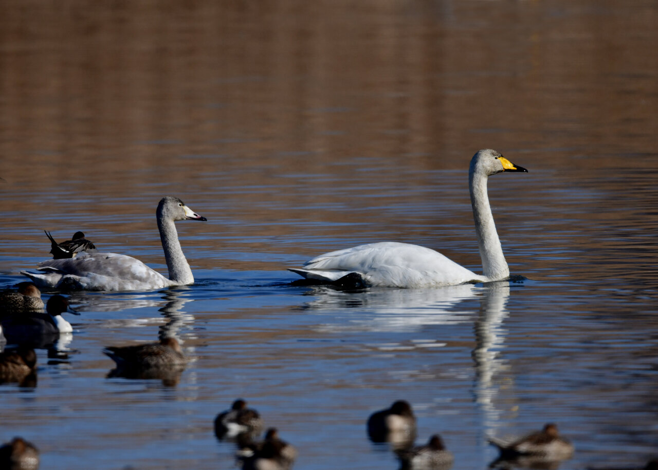 白鳥が渡来しています。今シーズンは、例年よりオオハクチョウが多いように思います。