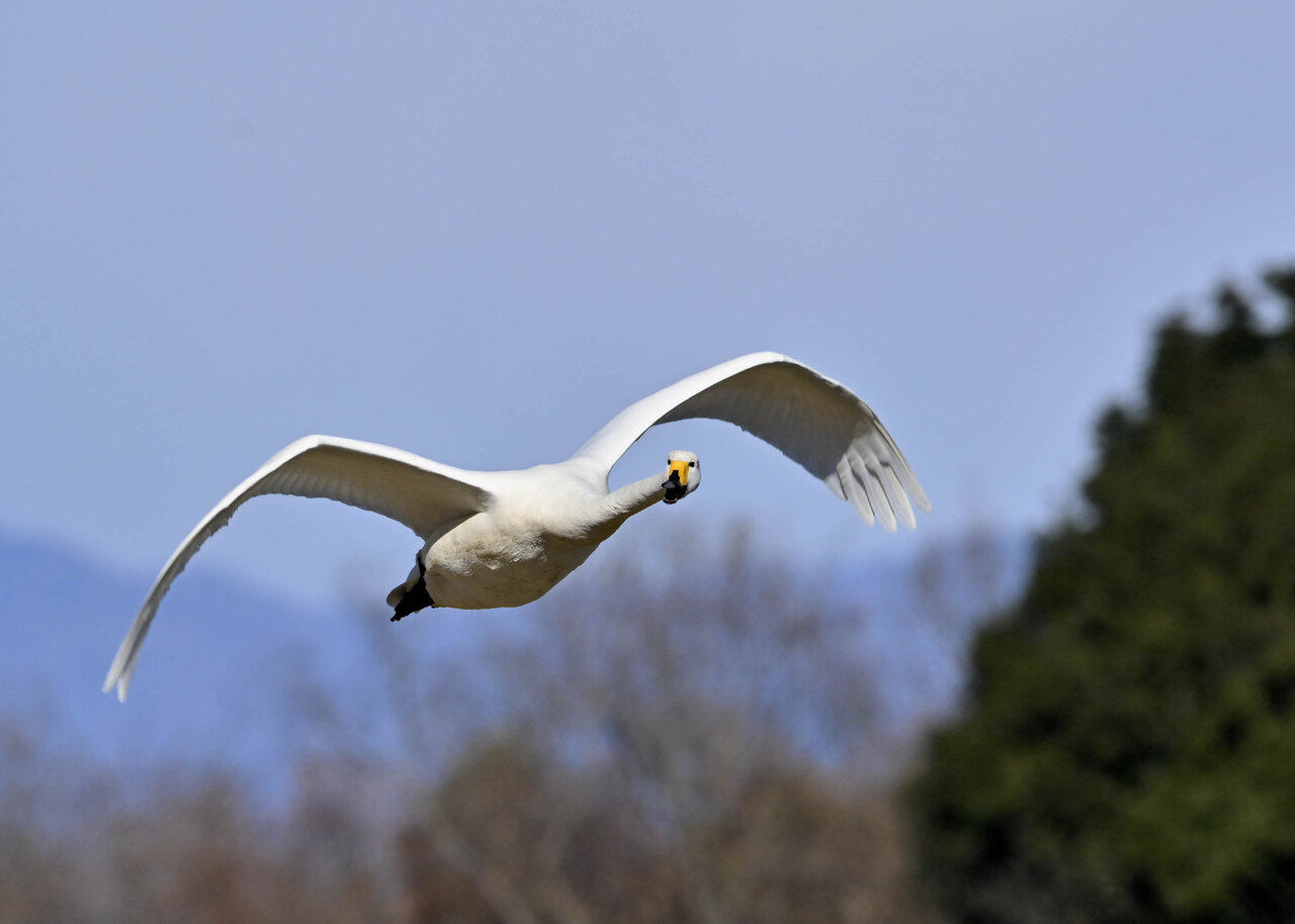 「青空に舞う・オオハクチョウ」 撮影地 : 群馬県邑楽町