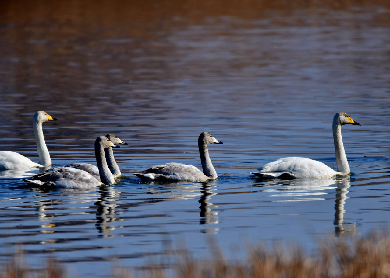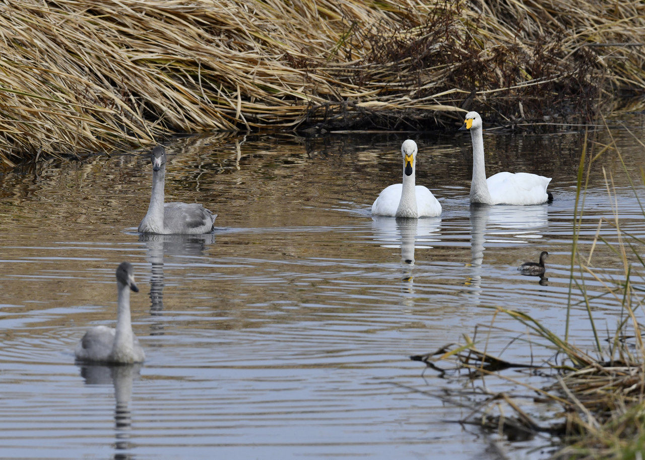 「オオハクチョウ・成鳥、幼鳥」 撮影地 : 群馬県邑楽町