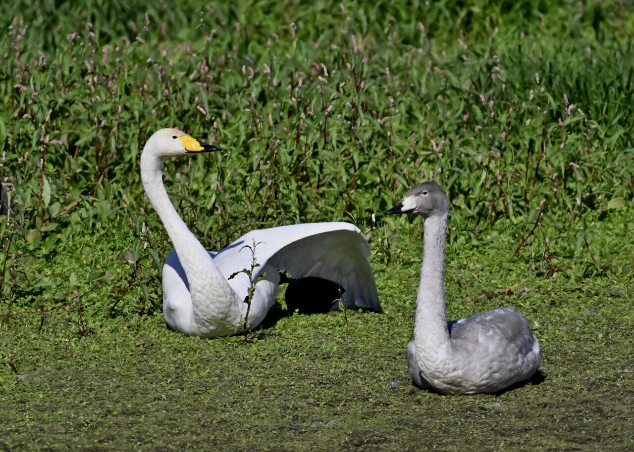 オオハクチョウ親子