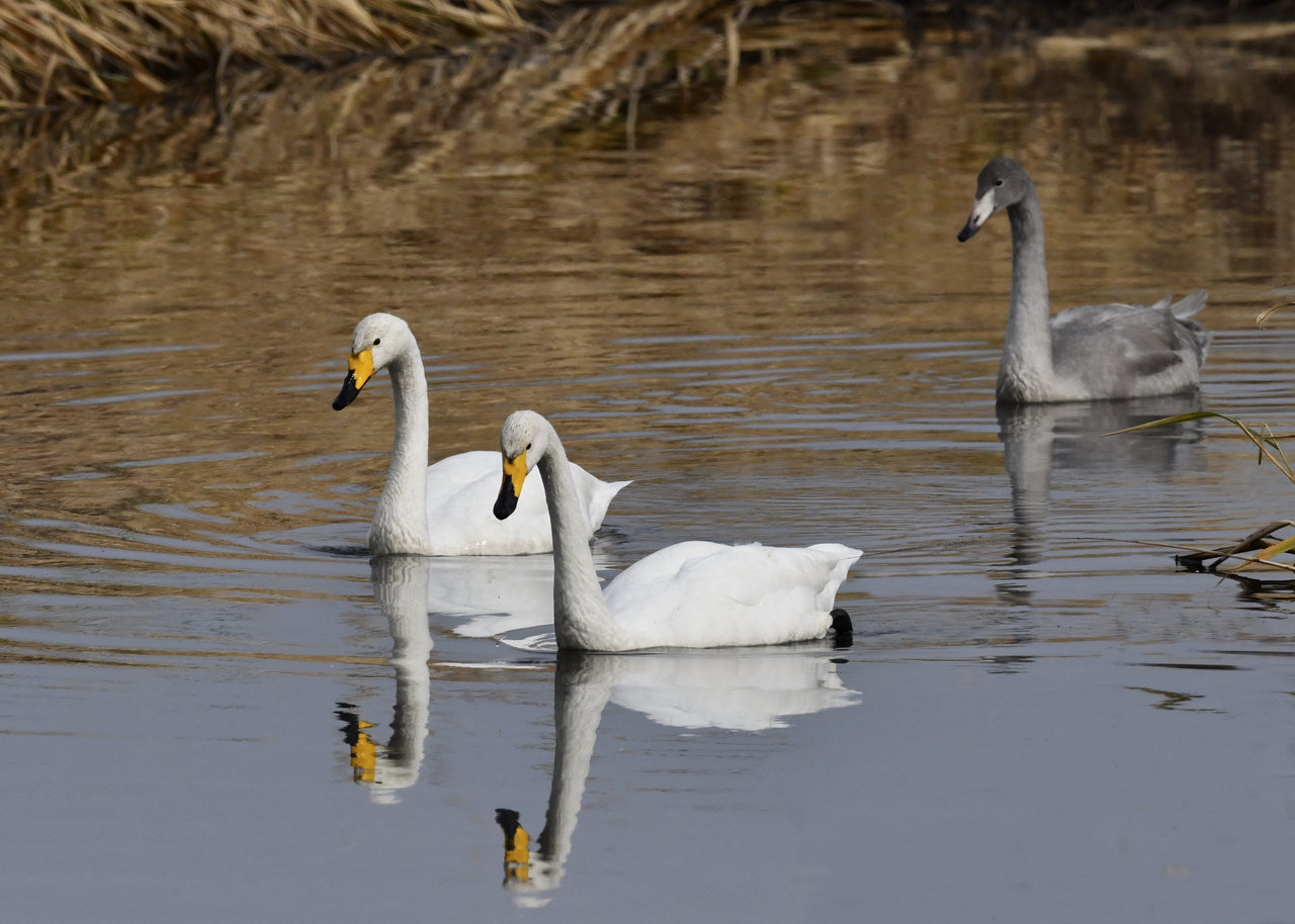 先ずは、オオハクチョウ幼鳥から、、、