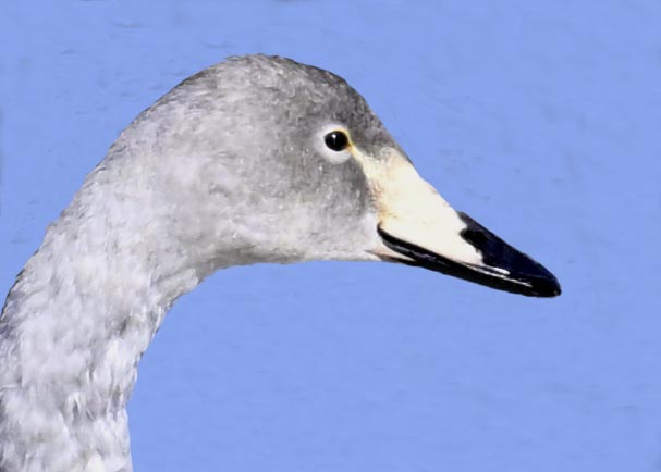 昨日に続きオオハクチョウですが、今日は幼鳥を掲載しています。 幼鳥は全体が灰褐色で