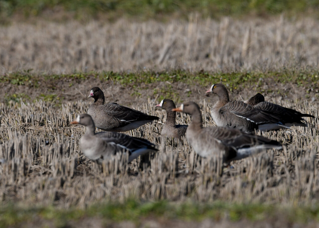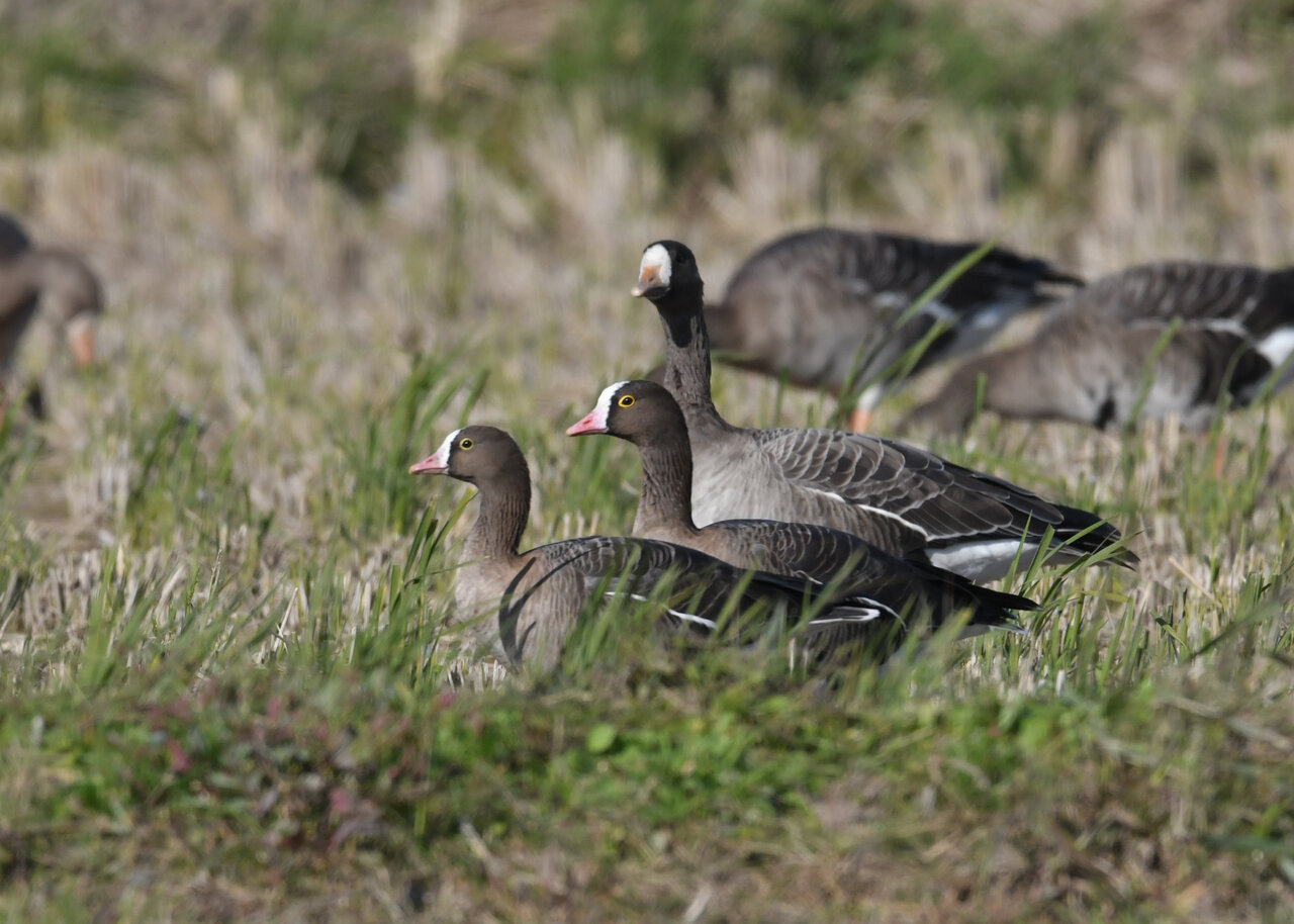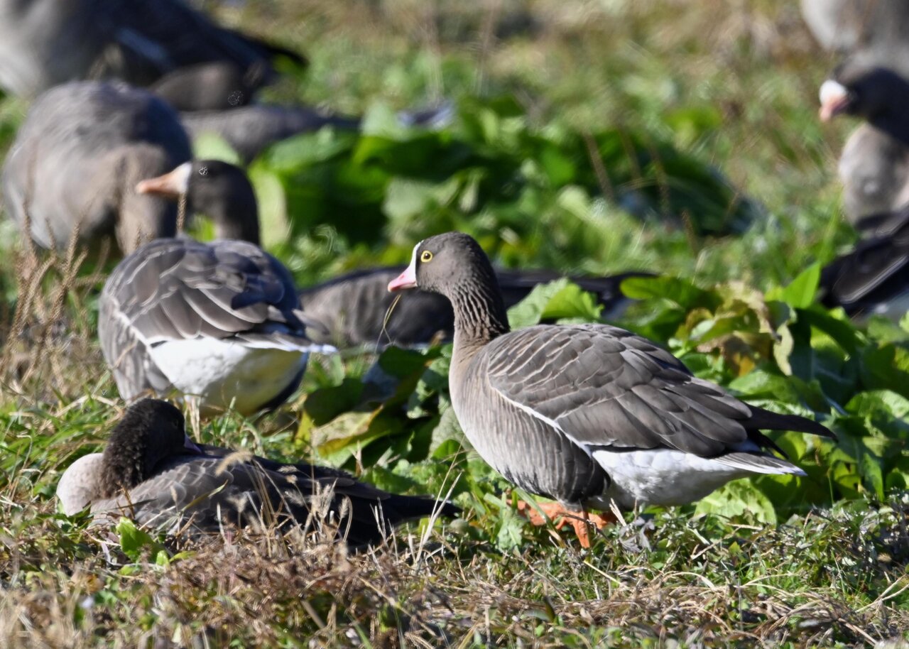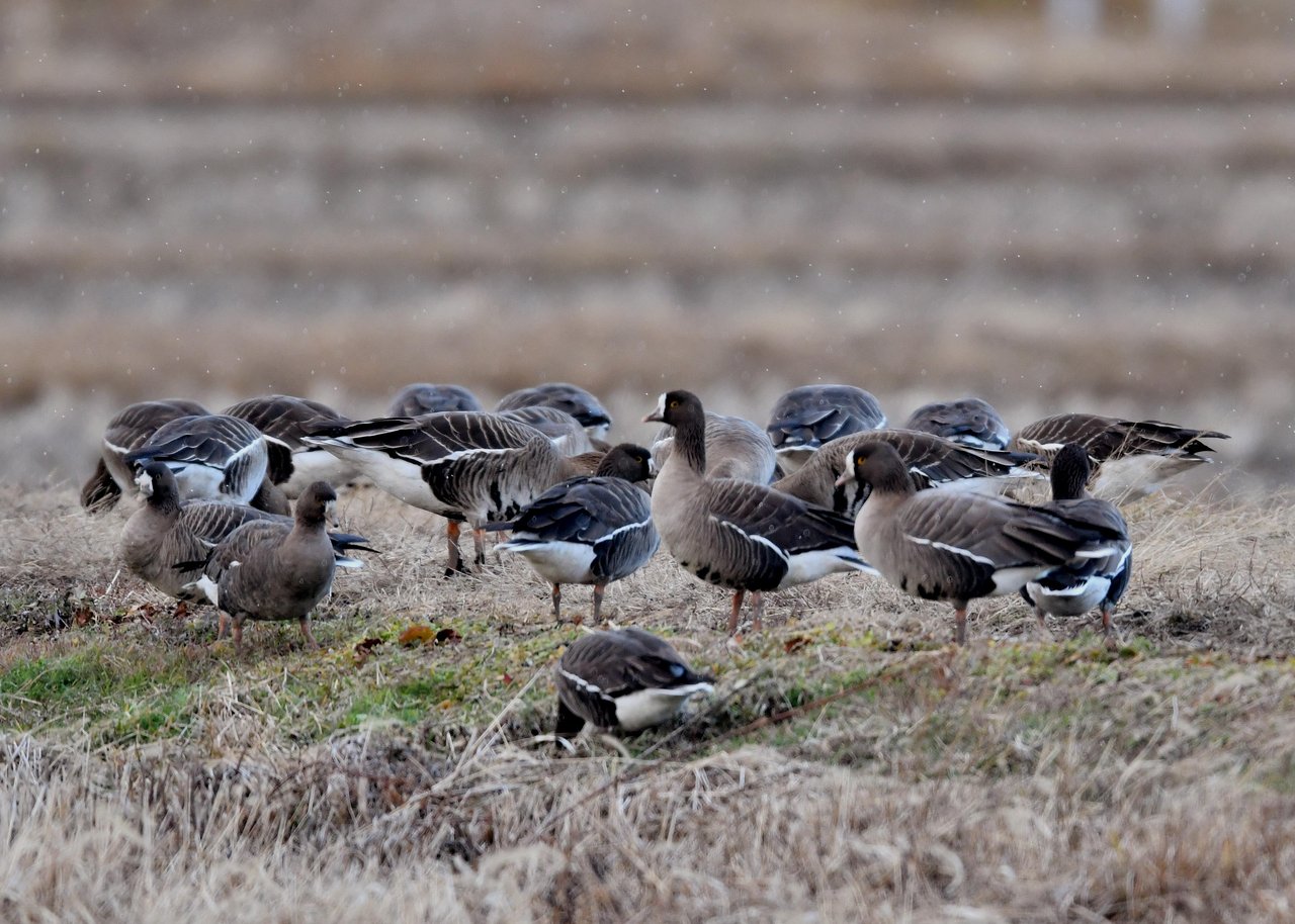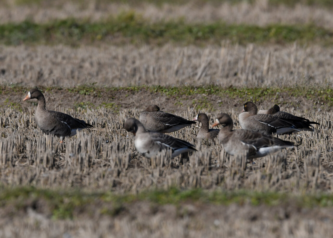 今回の遠征のターゲットの一つは数百羽が入っているカリガネの群れでしたが、あまり大きな群れは見つけられずマガンの群れと混じっている数十羽の群れが見られました。