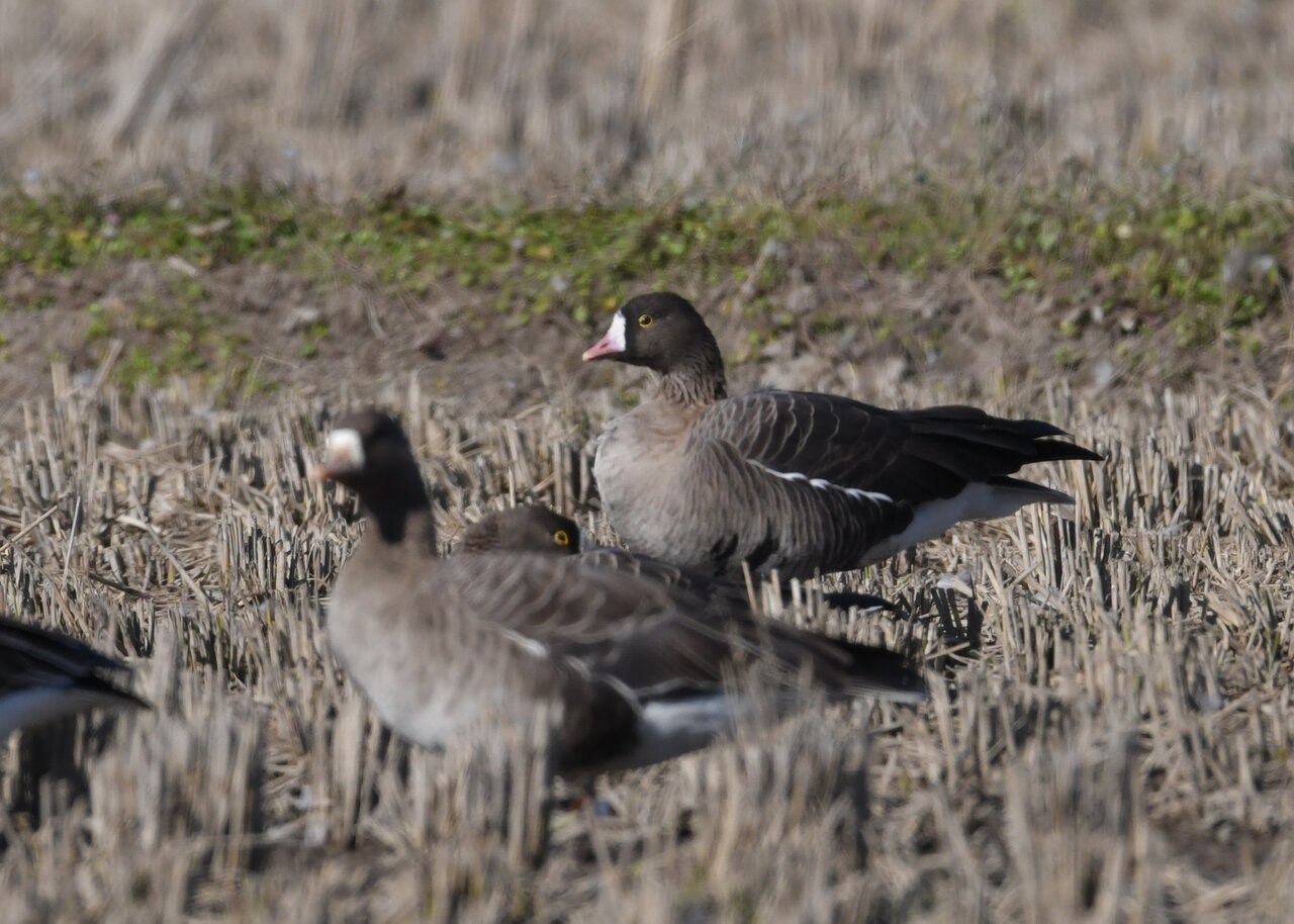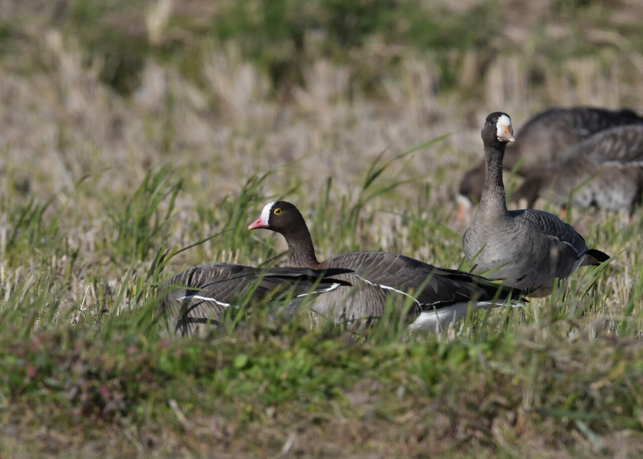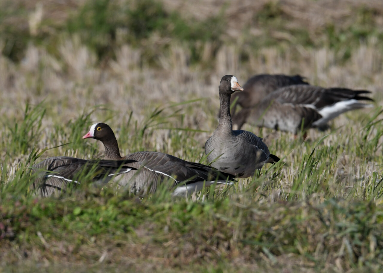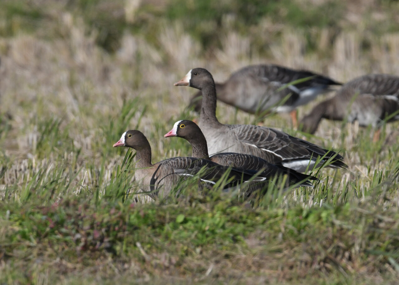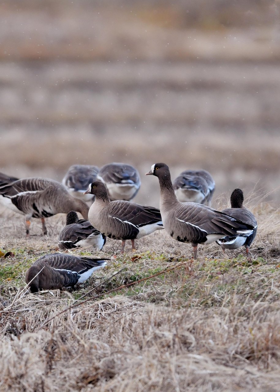 今回の遠征のターゲットの一つは数百羽が入っているカリガネの群れでしたが、あまり大きな群れは見つけられずマガンの群れと混じっている数十羽の群れが見られました。