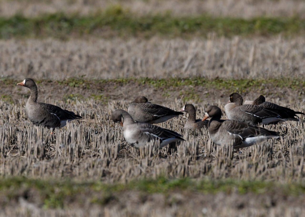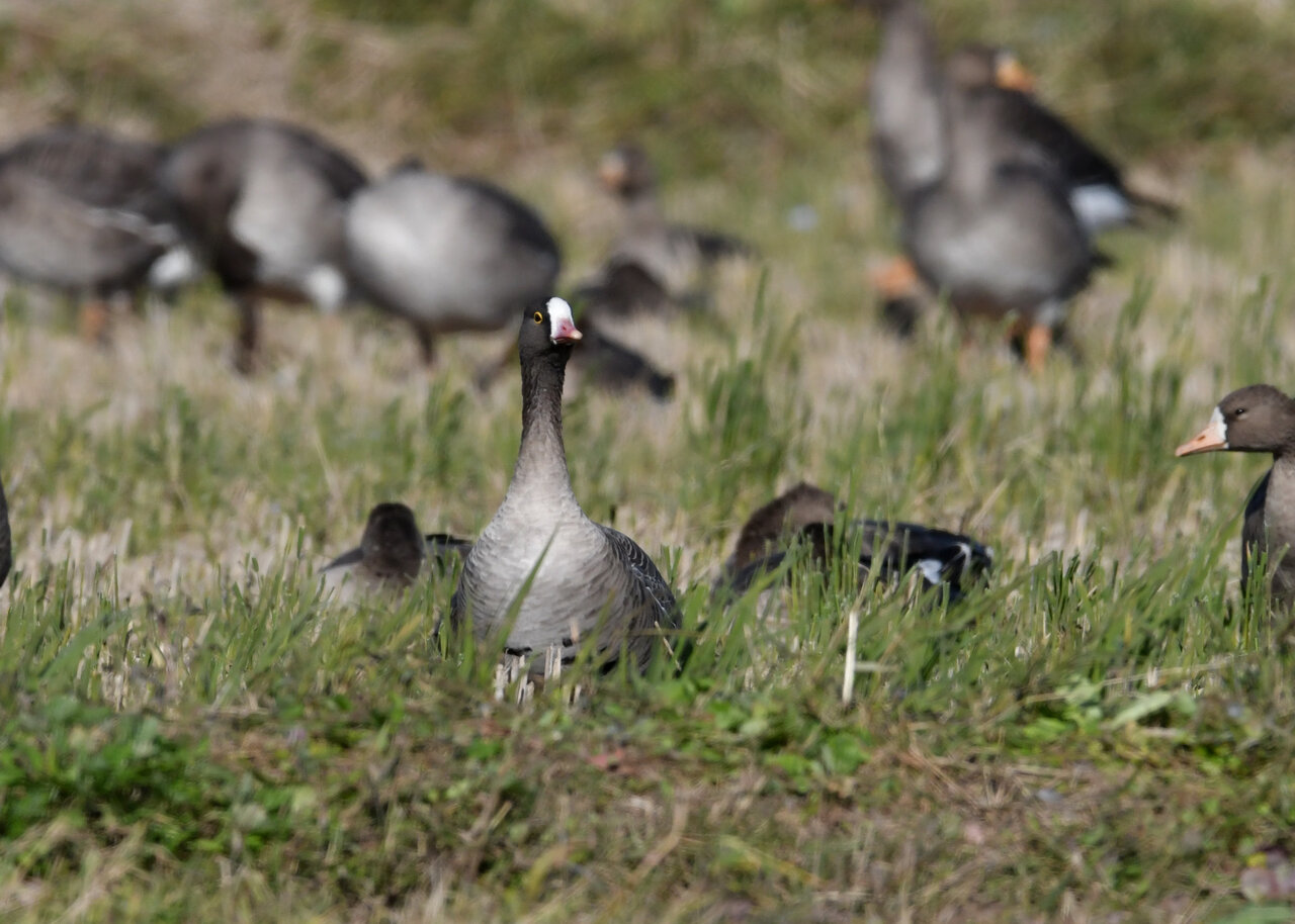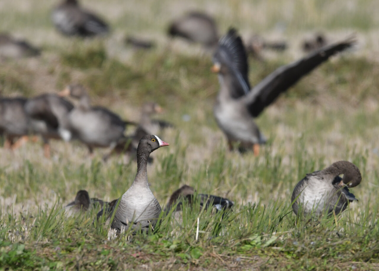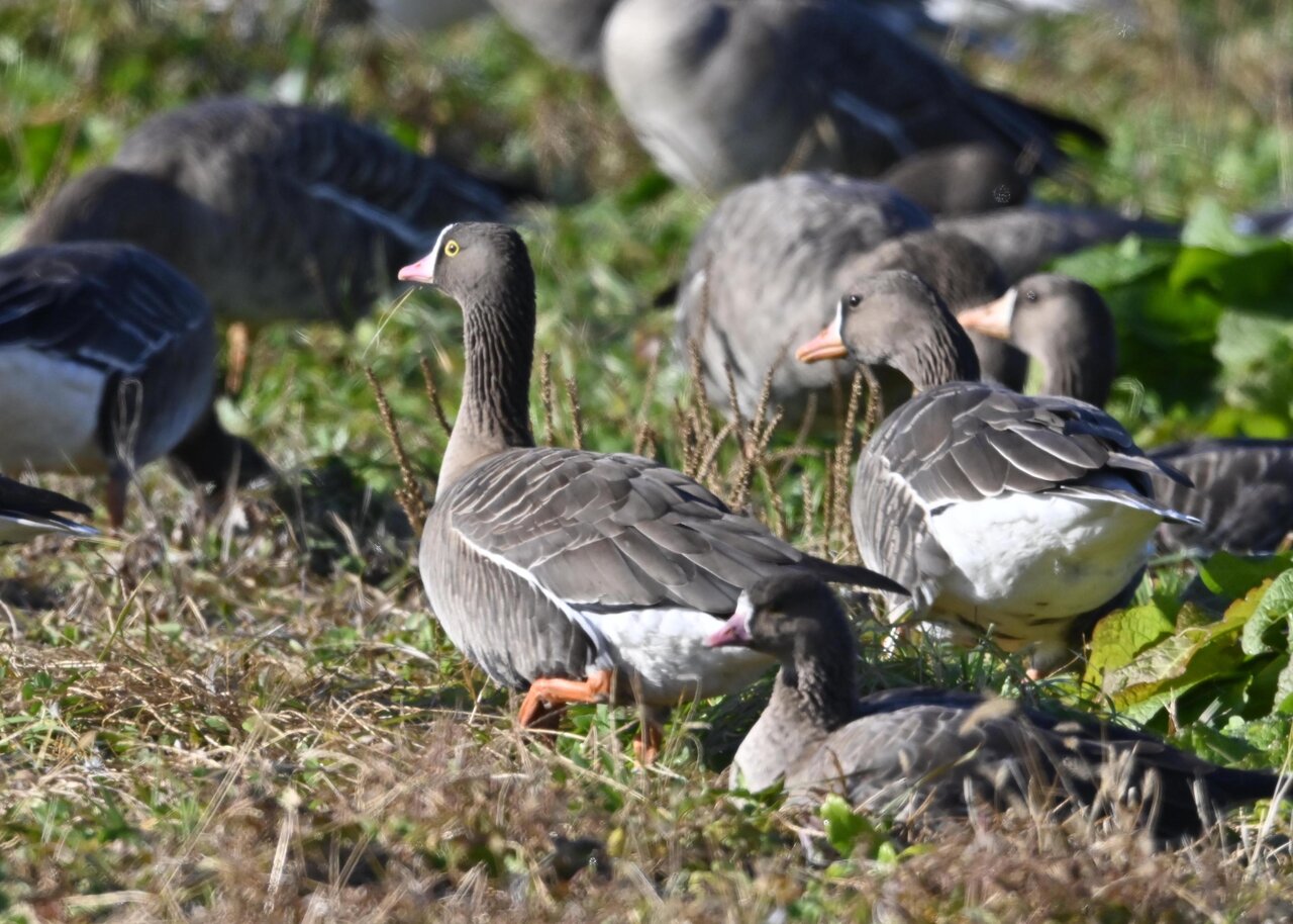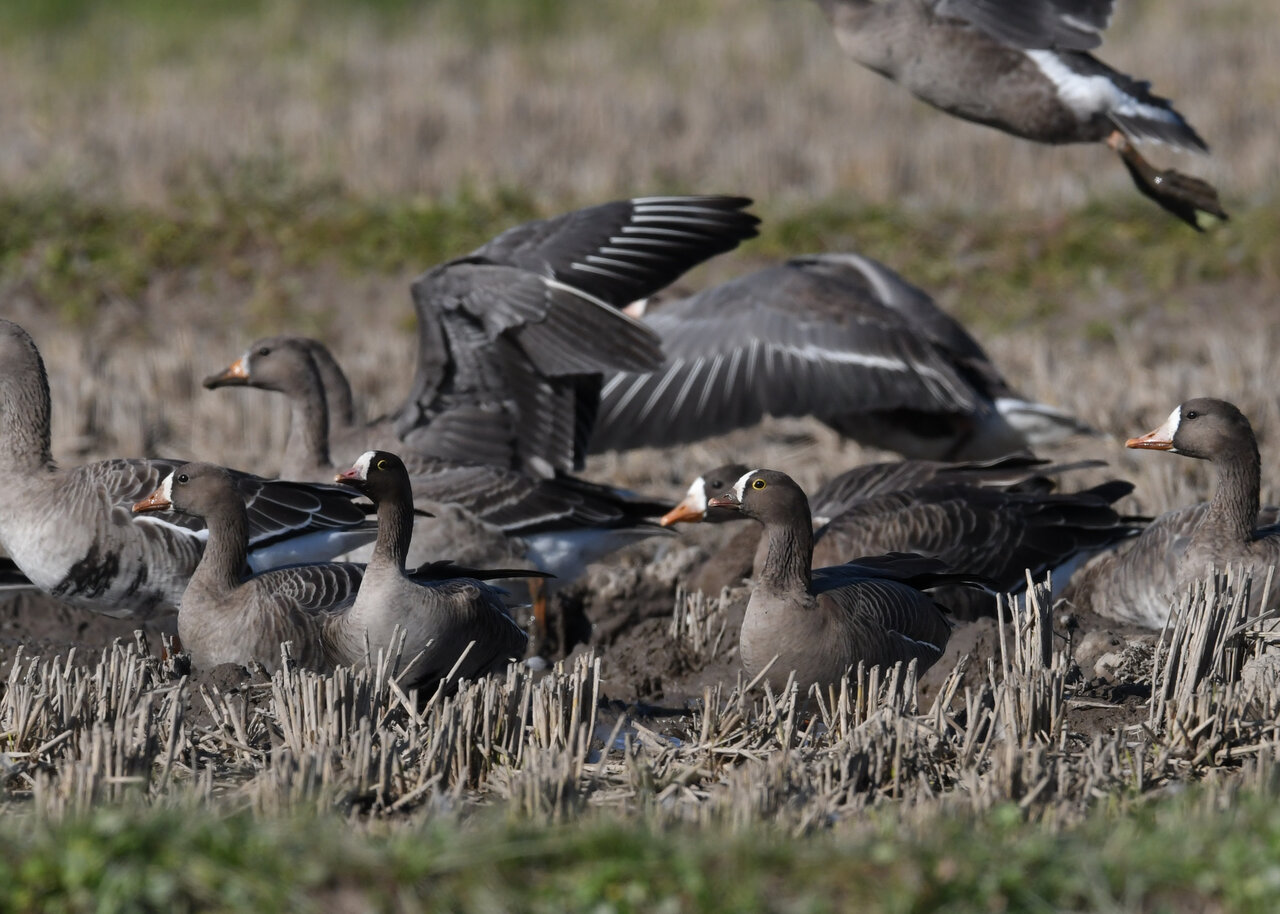 今回の遠征のターゲットの一つは数百羽が入っているカリガネの群れでしたが、あまり大きな群れは見つけられずマガンの群れと混じっている数十羽の群れが見られました。
