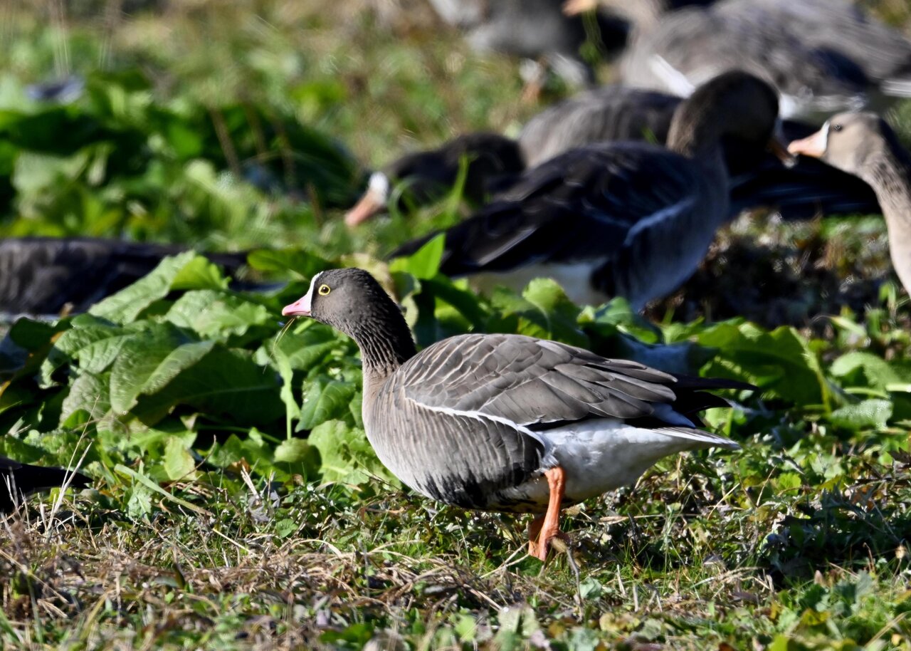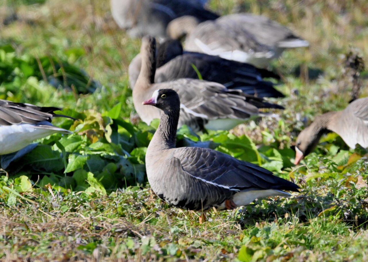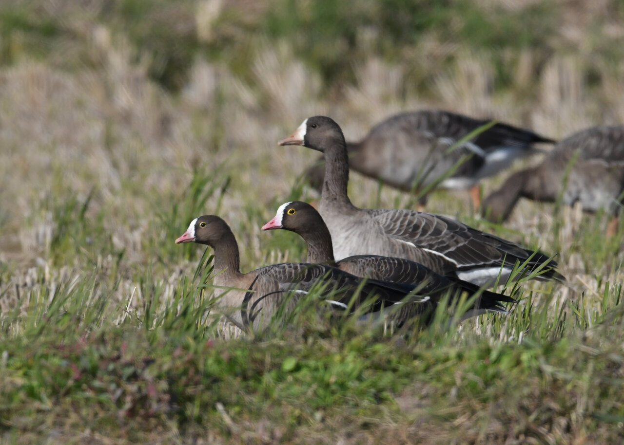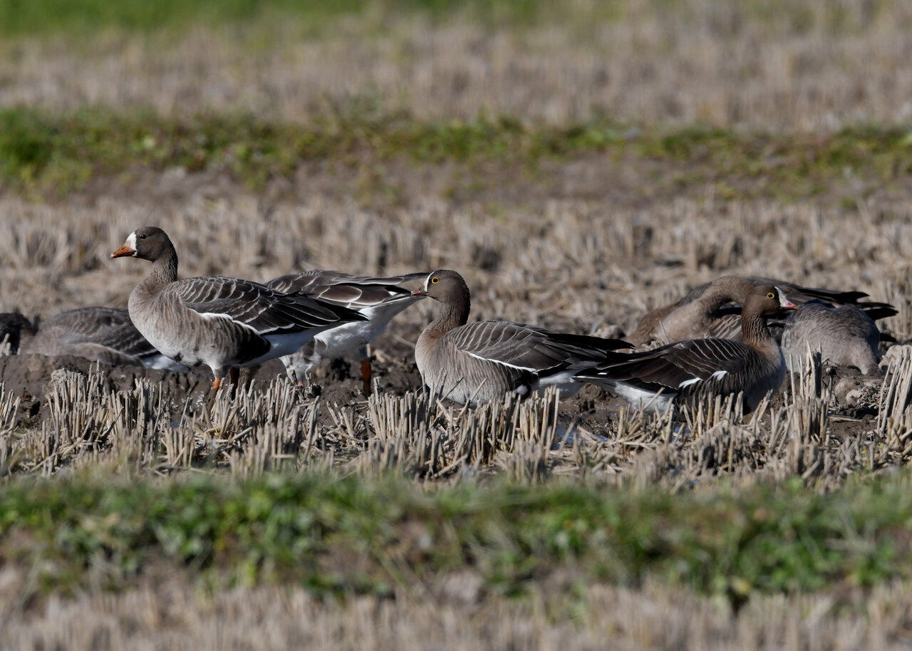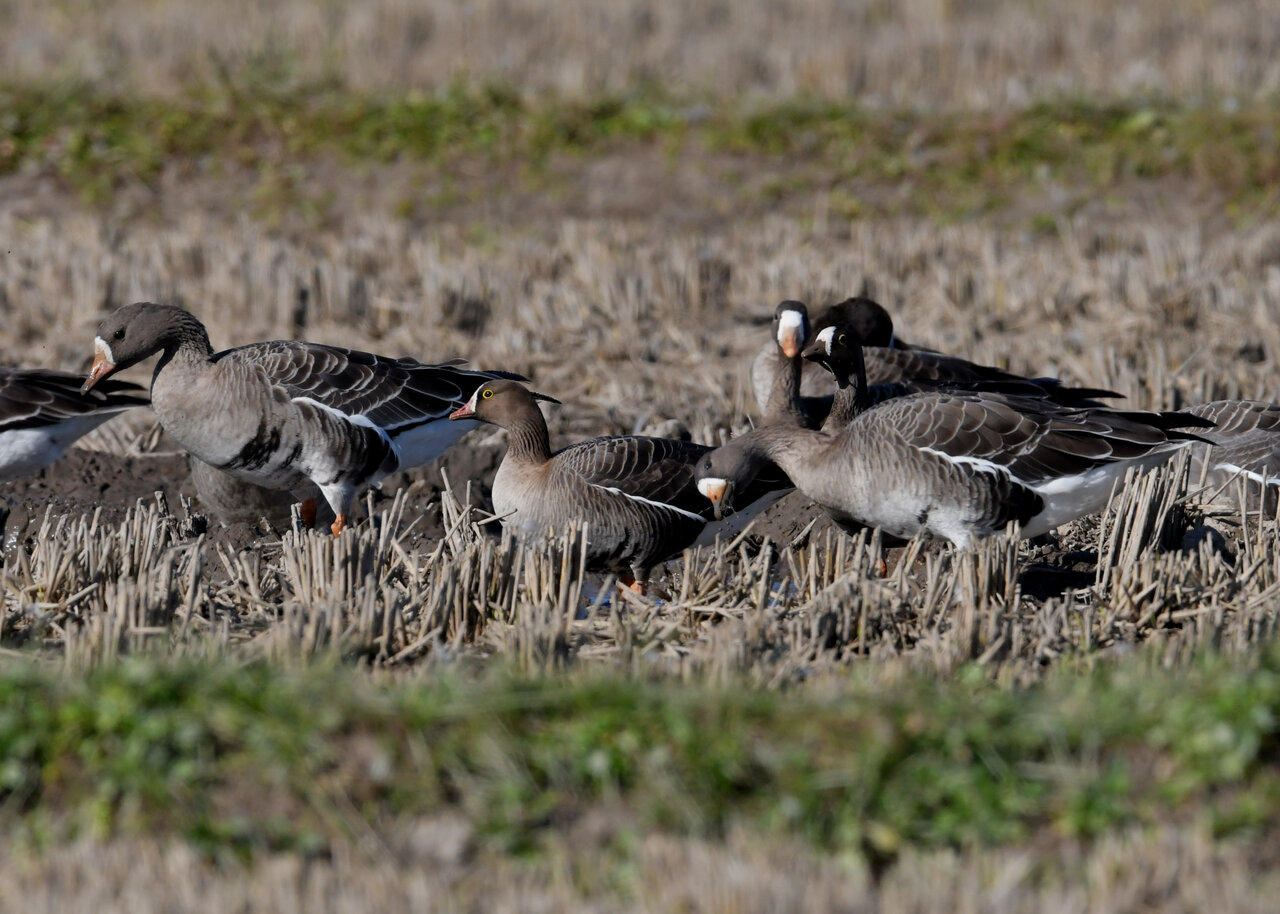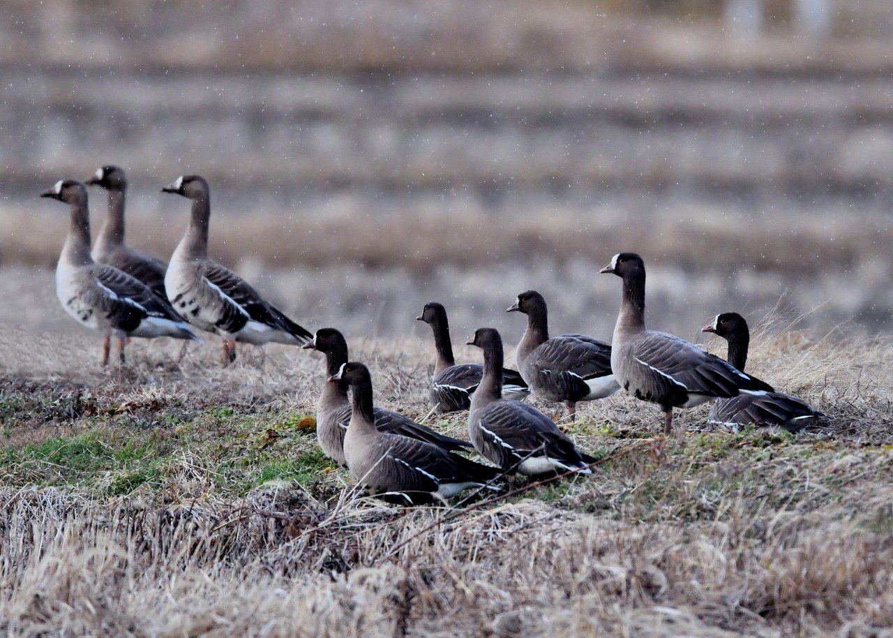 今回の遠征のターゲットの一つは数百羽が入っているカリガネの群れでしたが、あまり大きな群れは見つけられずマガンの群れと混じっている数十羽の群れが見られました。