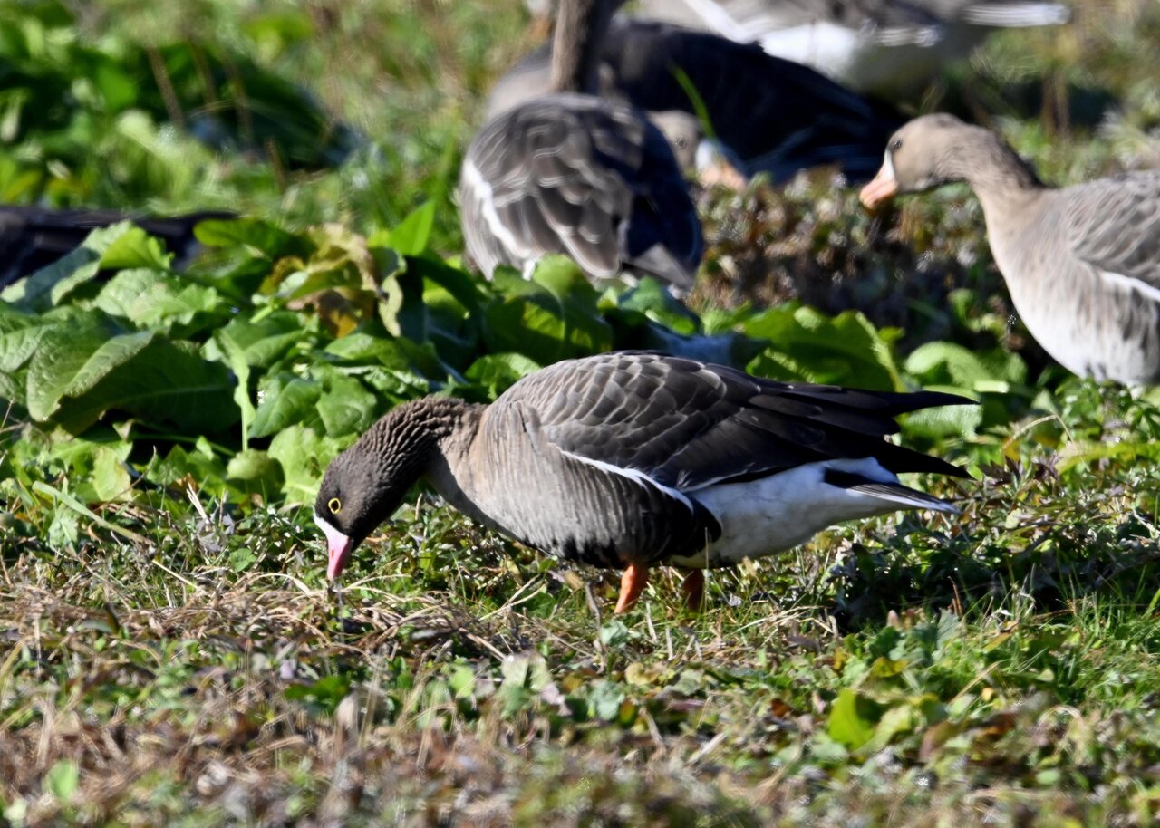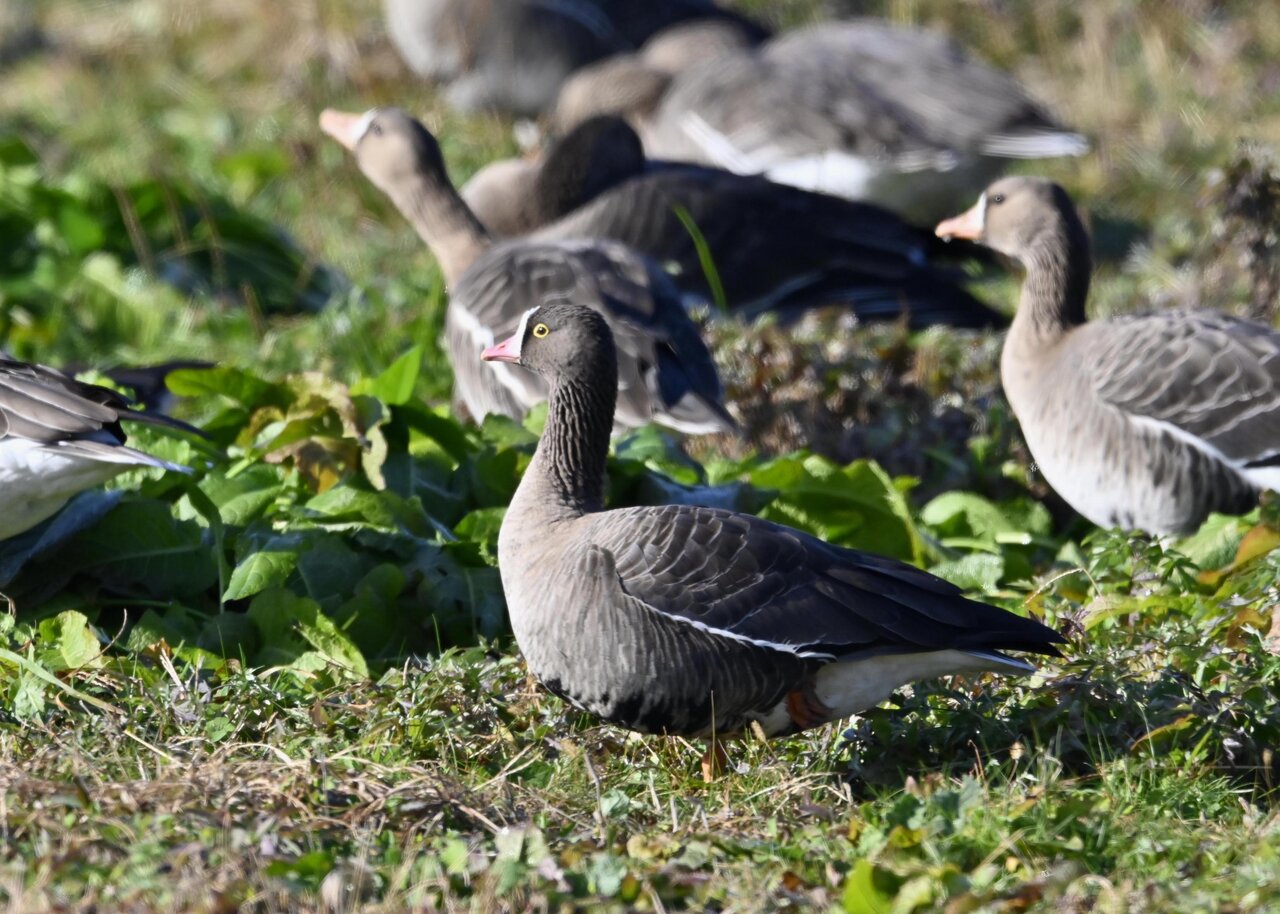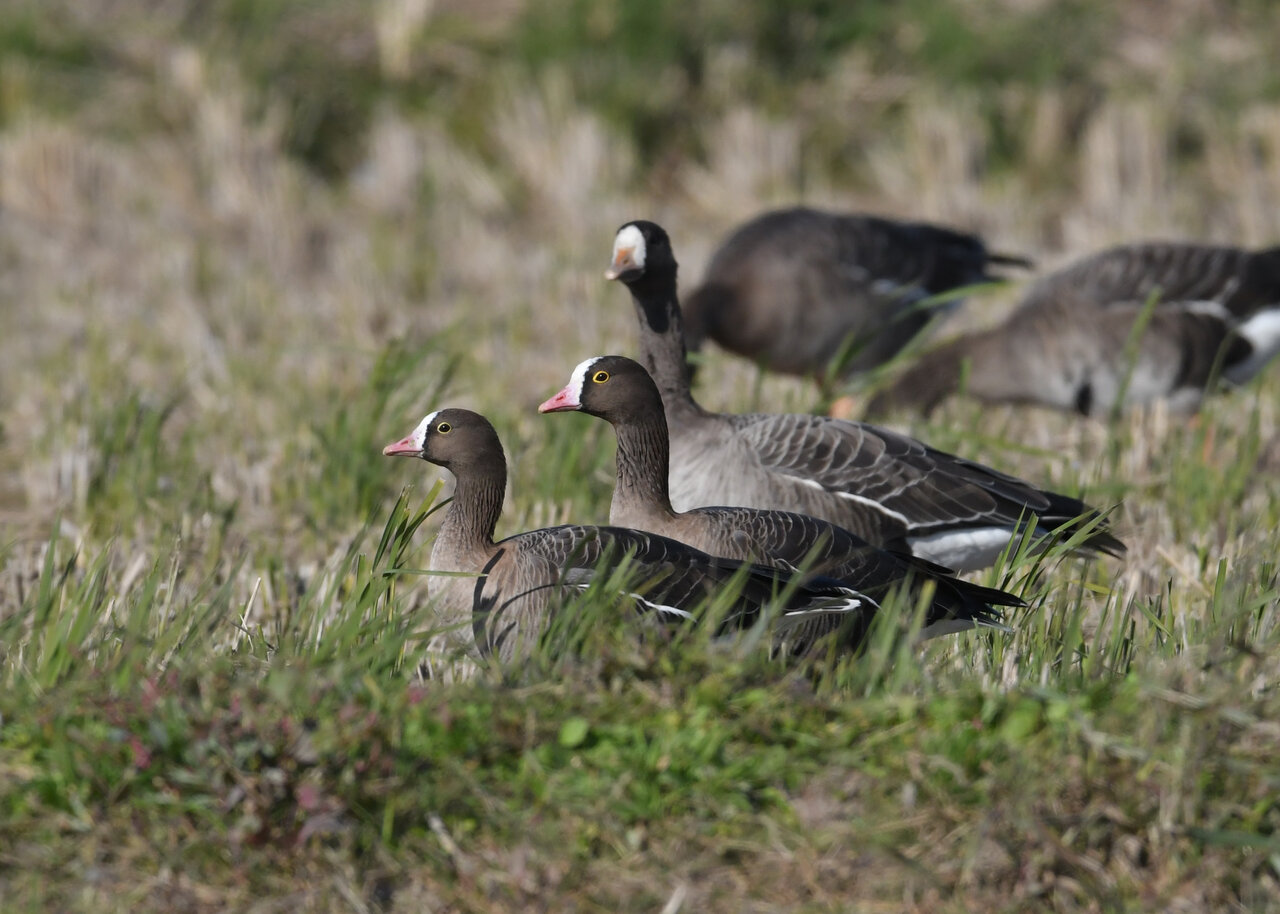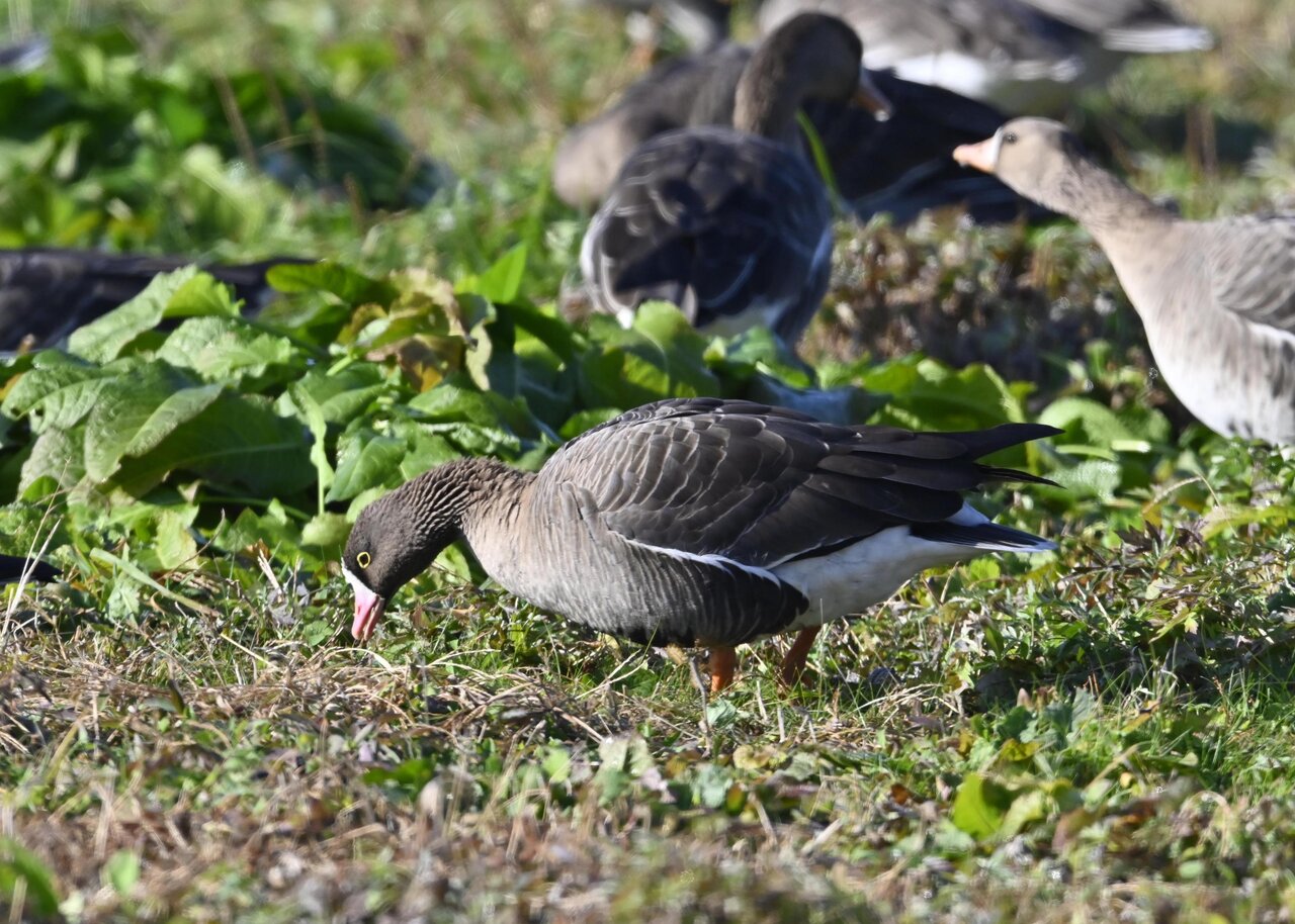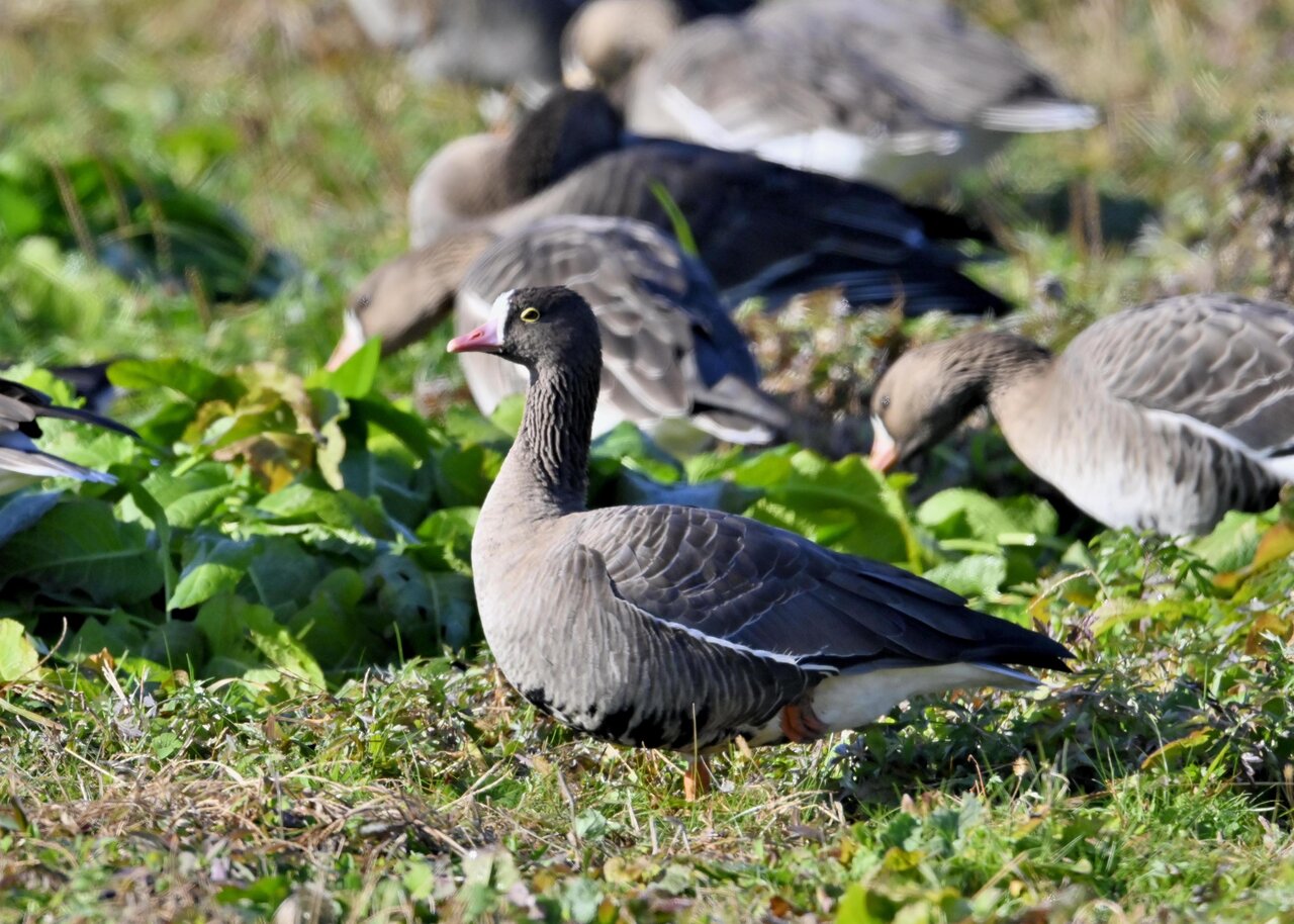 今回の遠征のターゲットの一つは数百羽が入っているカリガネの群れでしたが、あまり大きな群れは見つけられずマガンの群れと混じっている数十羽の群れが見られました。