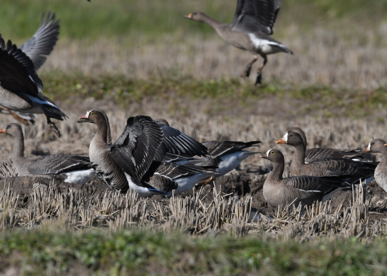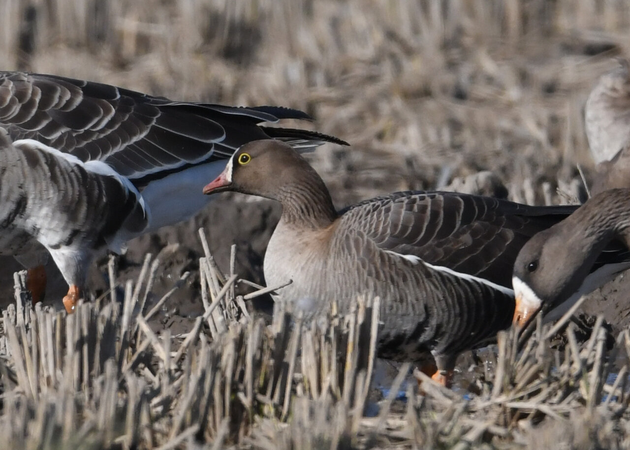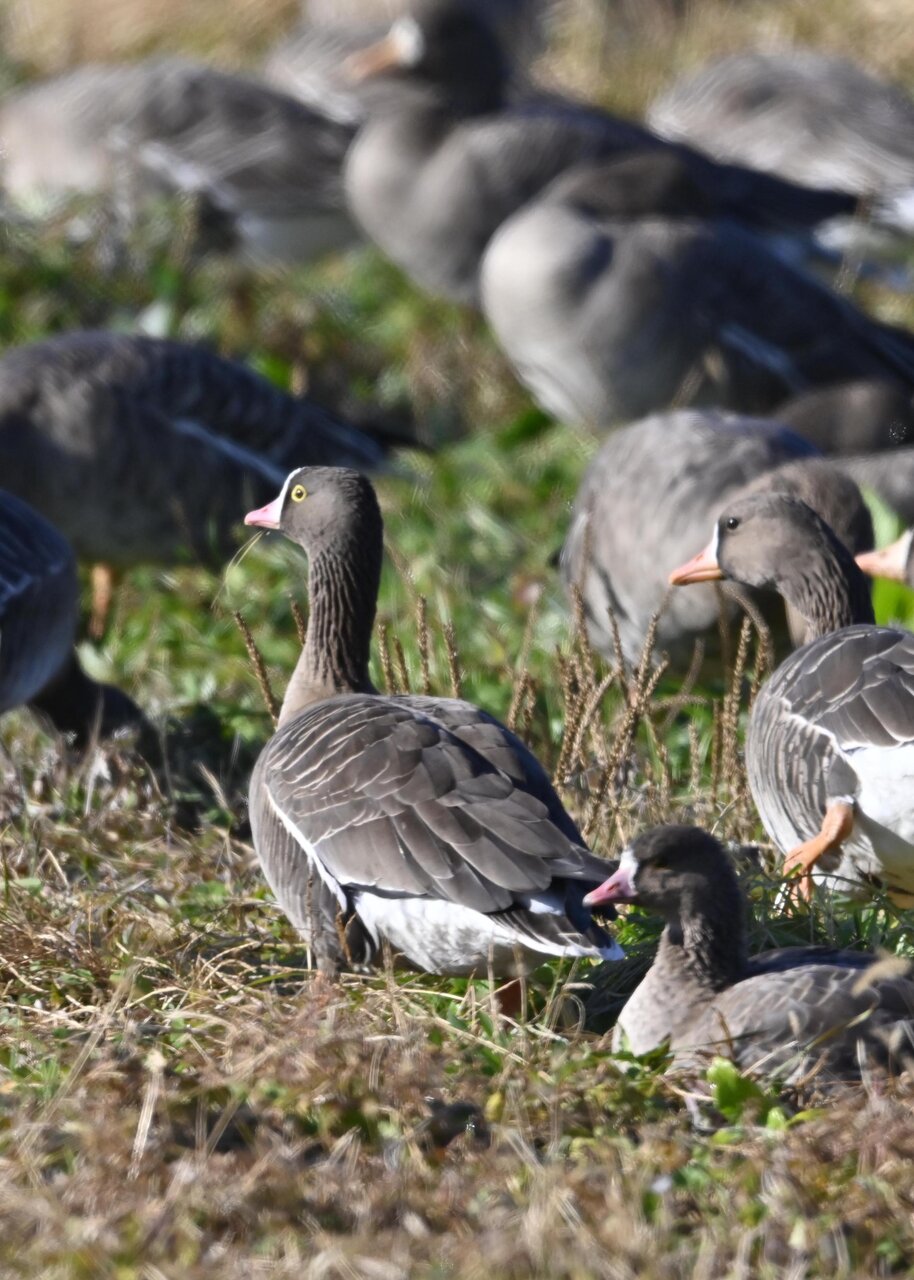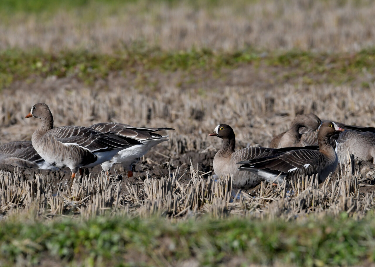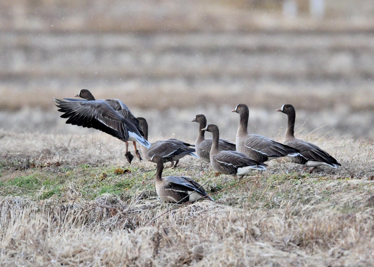 今回の遠征のターゲットの一つは数百羽が入っているカリガネの群れでしたが、あまり大きな群れは見つけられずマガンの群れと混じっている数十羽の群れが見られました。