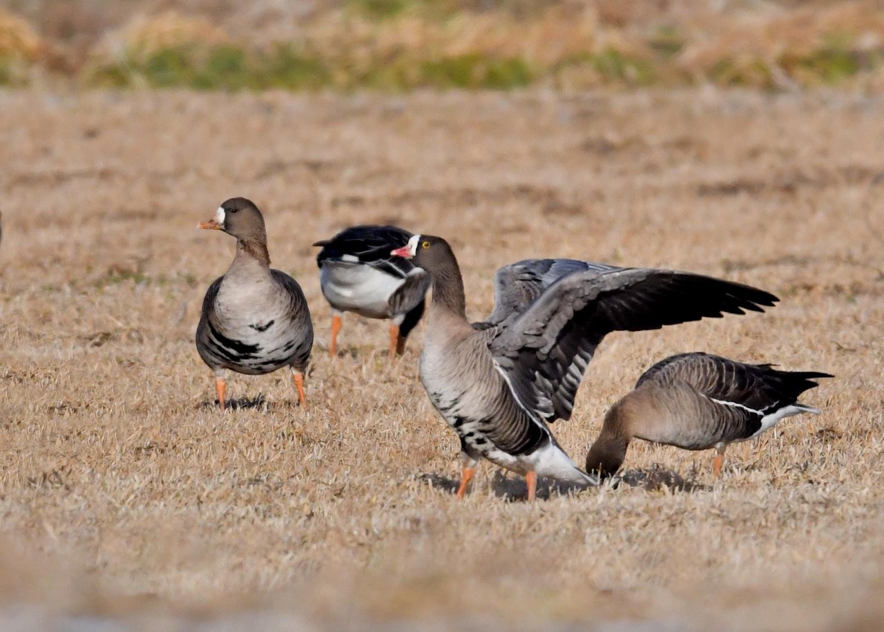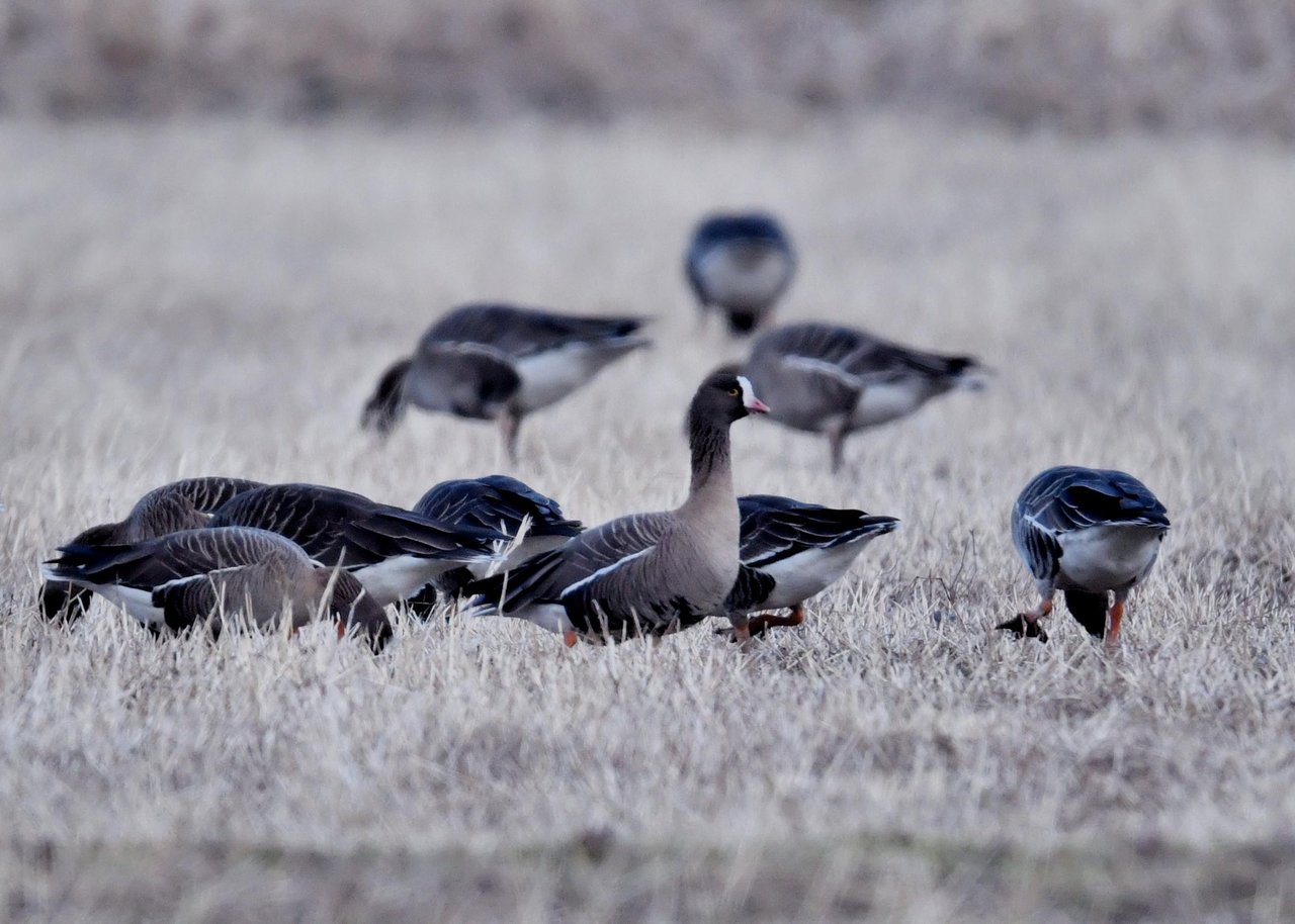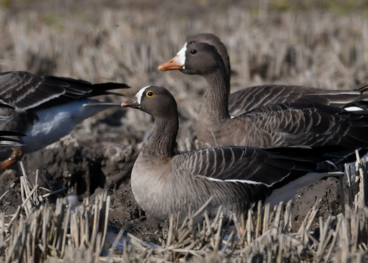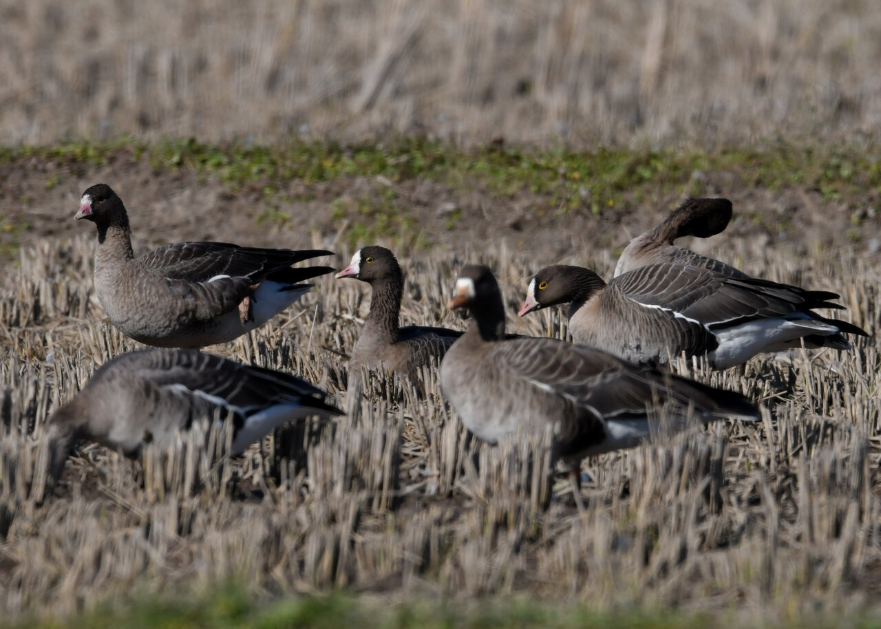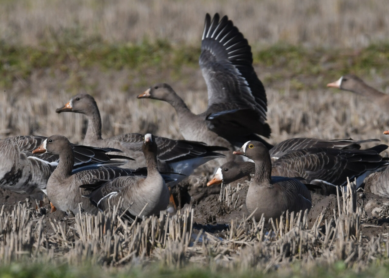 今回の遠征のターゲットの一つは数百羽が入っているカリガネの群れでしたが、あまり大きな群れは見つけられずマガンの群れと混じっている数十羽の群れが見られました。