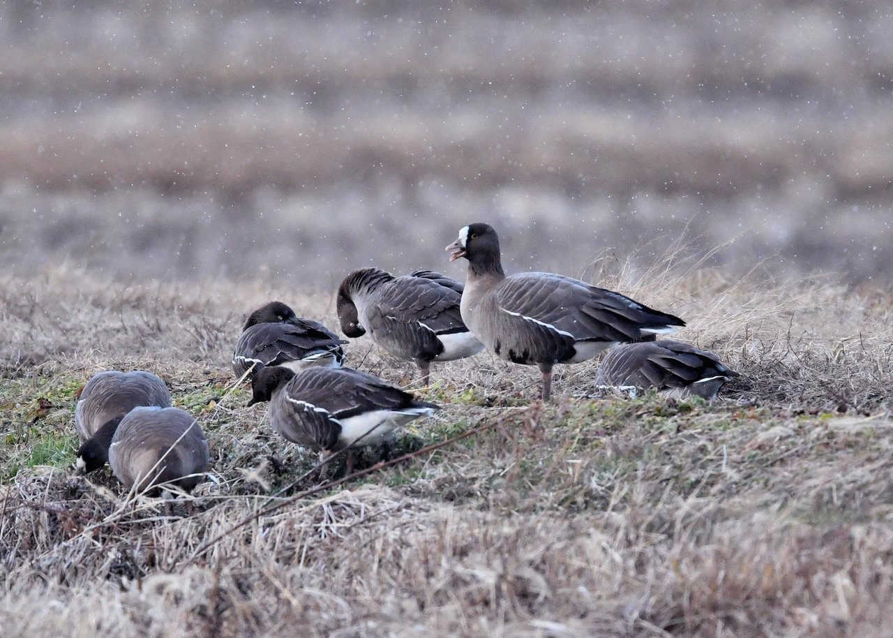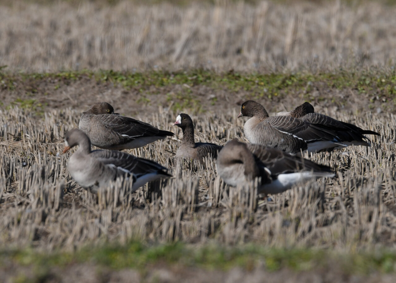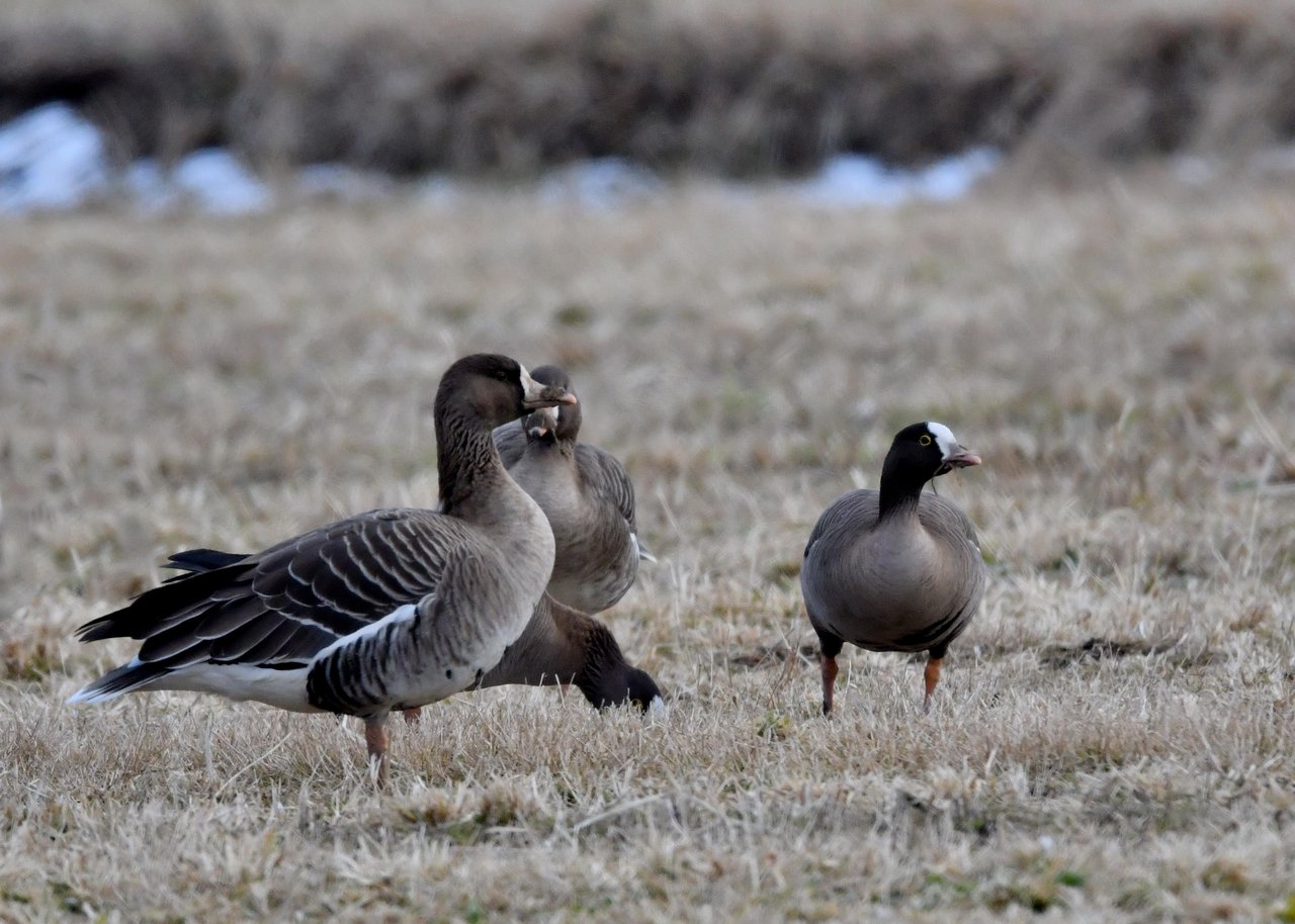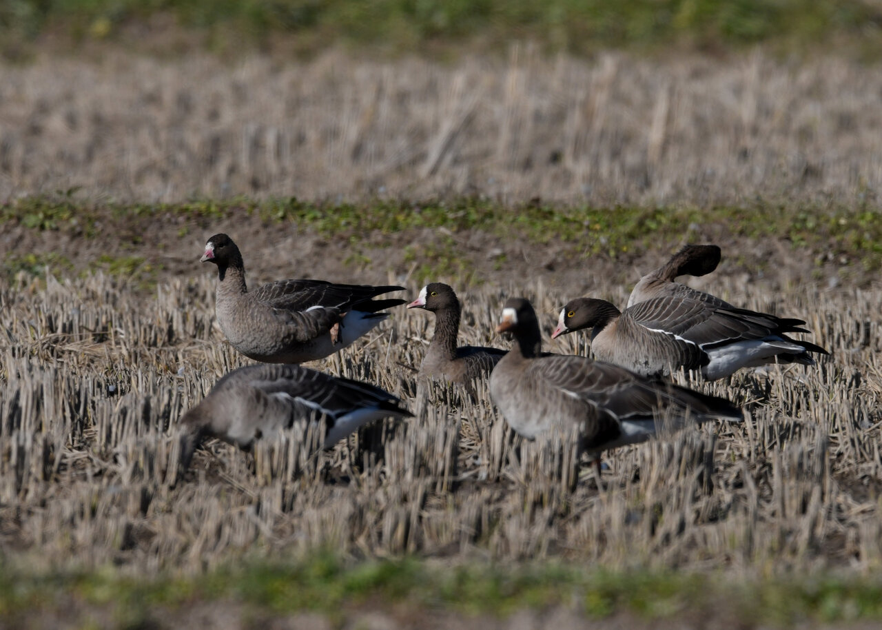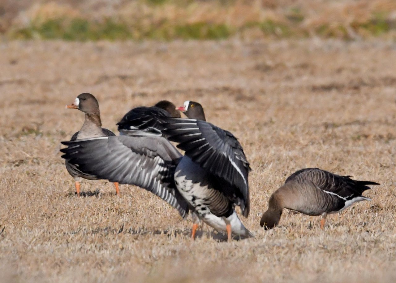 今回の遠征のターゲットの一つは数百羽が入っているカリガネの群れでしたが、あまり大きな群れは見つけられずマガンの群れと混じっている数十羽の群れが見られました。