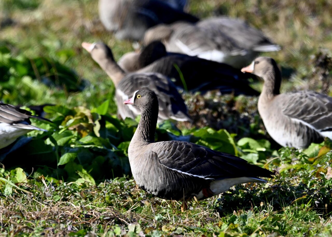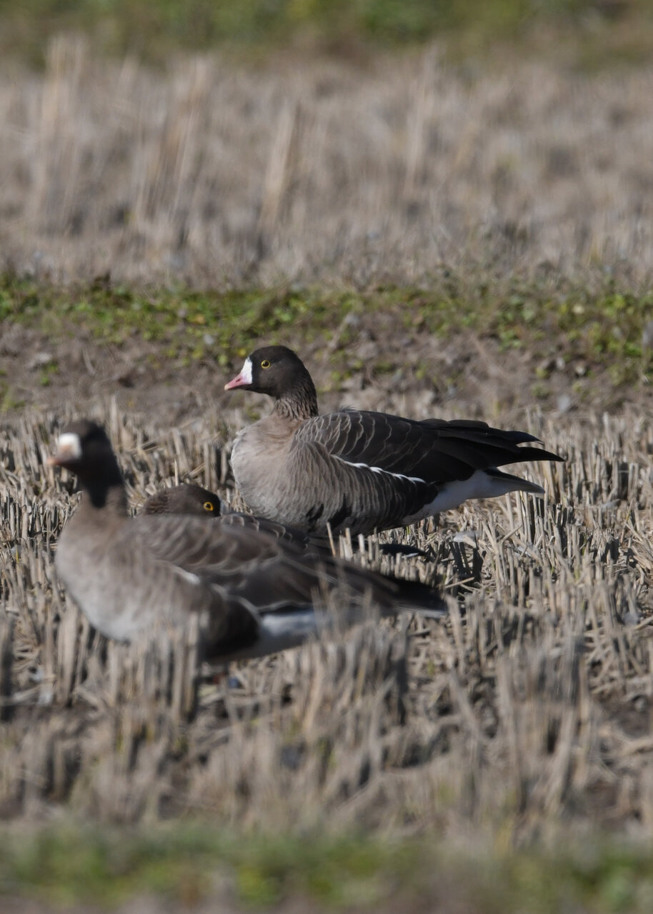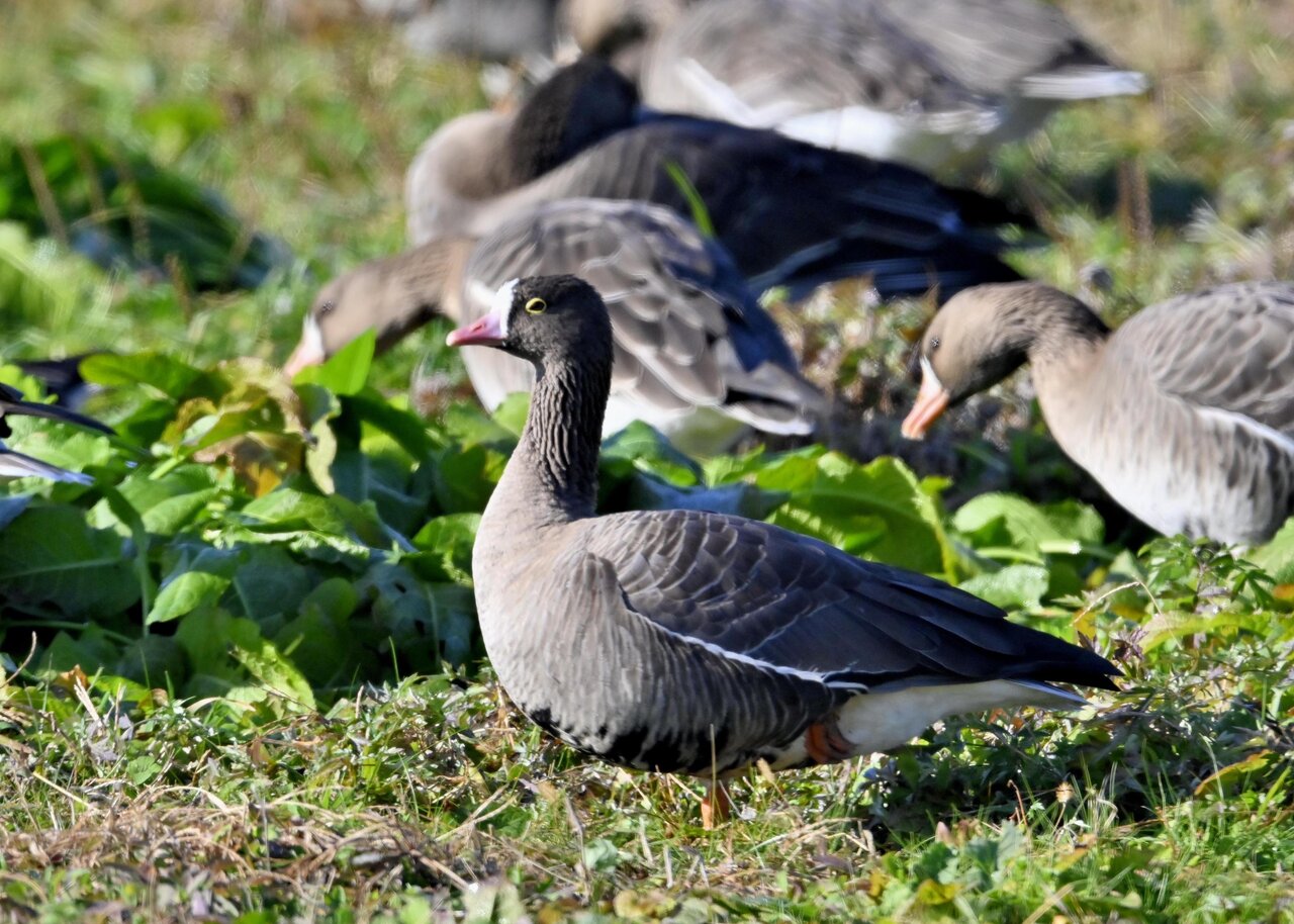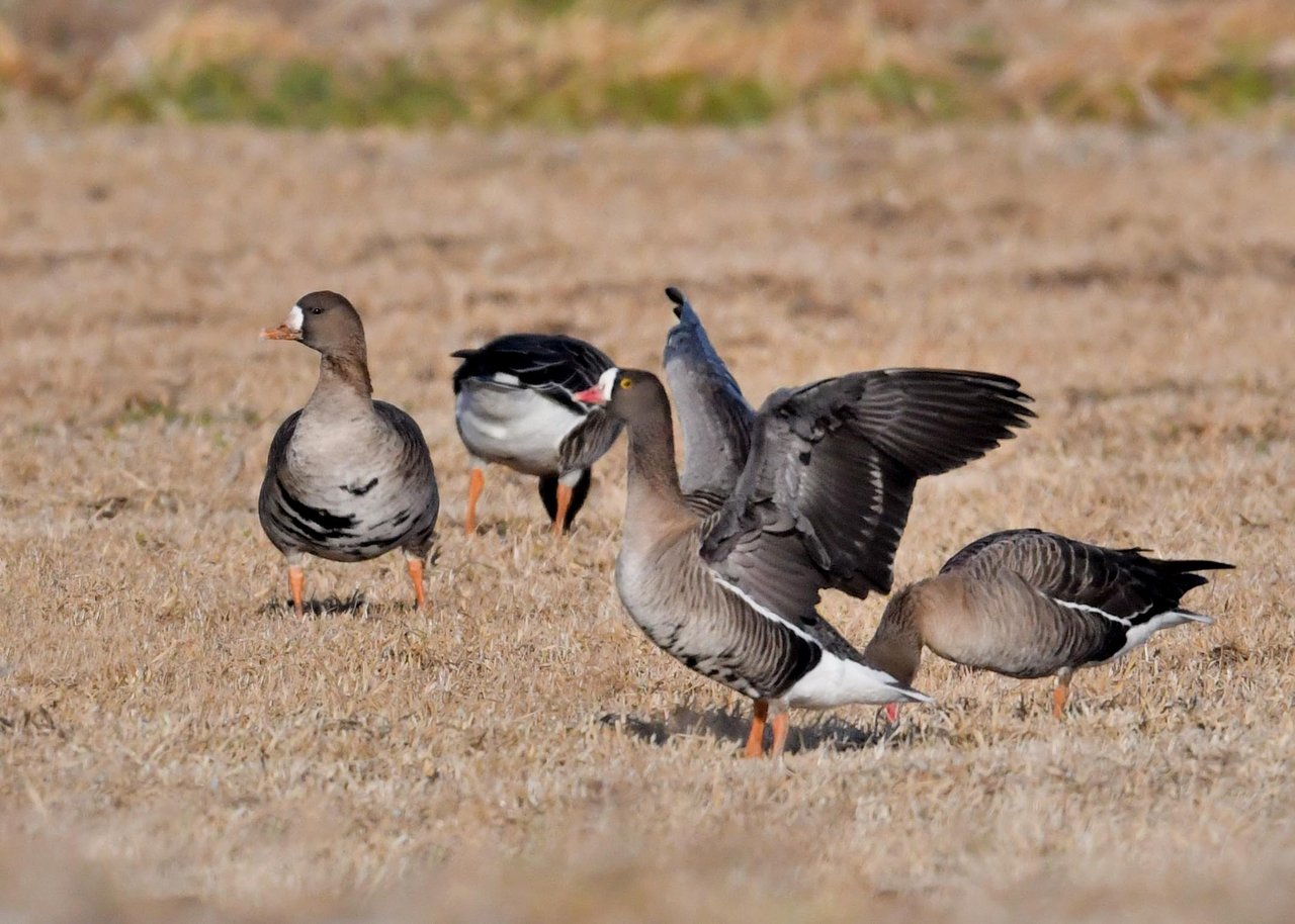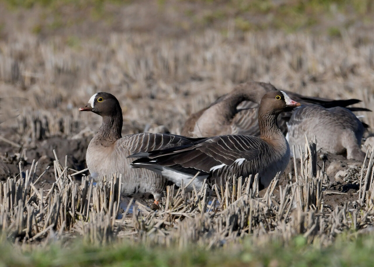 今回の遠征のターゲットの一つは数百羽が入っているカリガネの群れでしたが、あまり大きな群れは見つけられずマガンの群れと混じっている数十羽の群れが見られました。