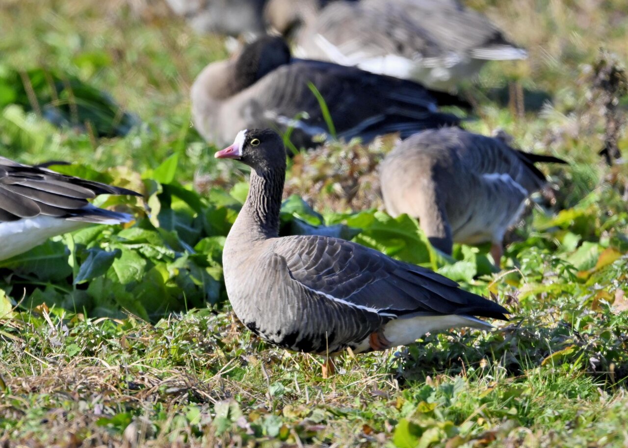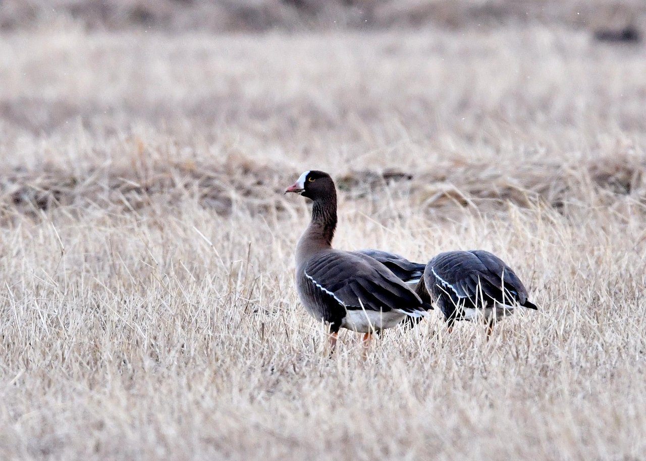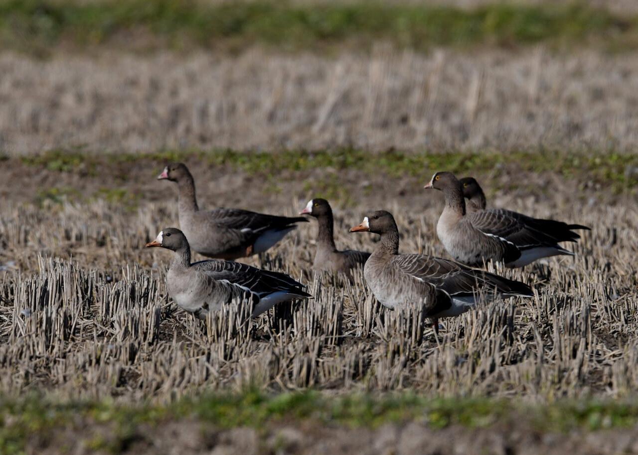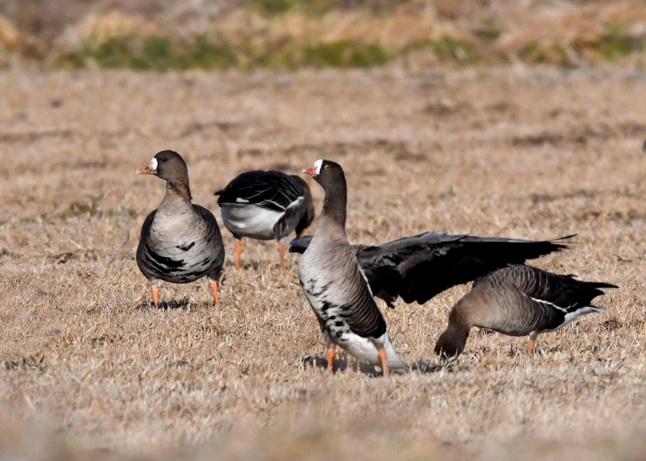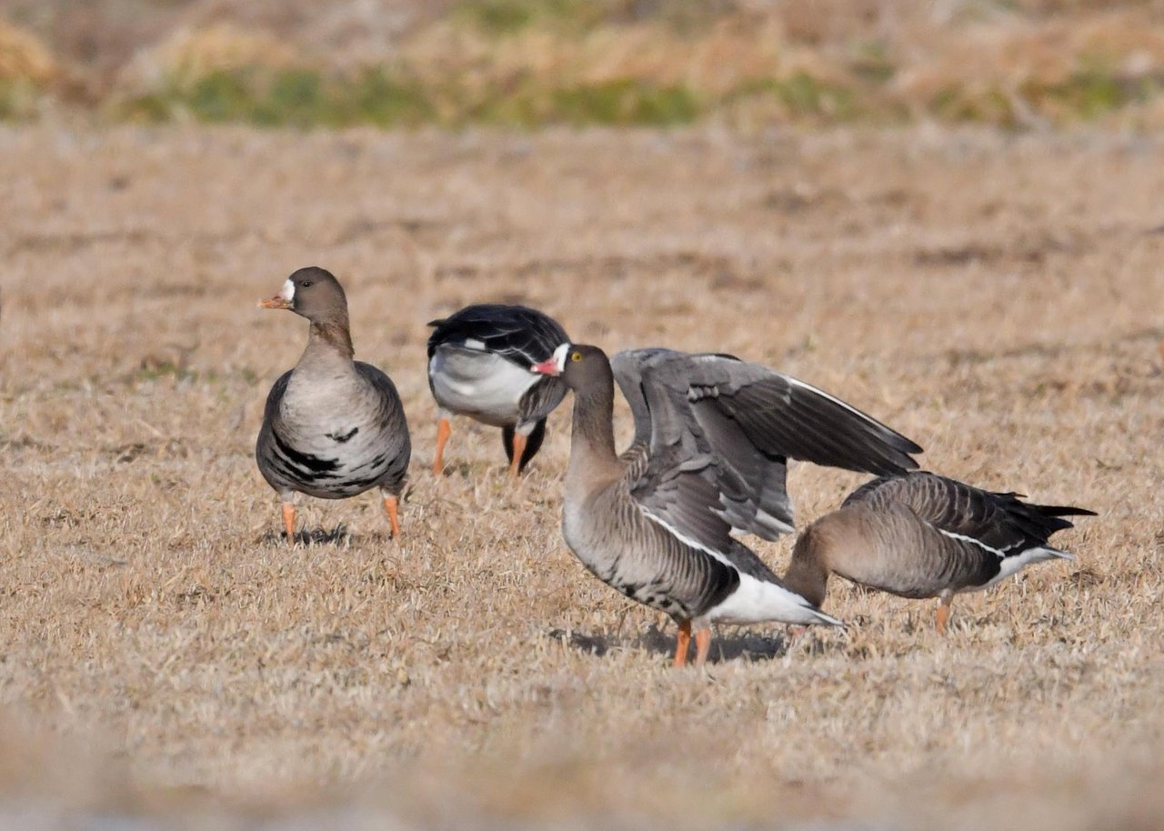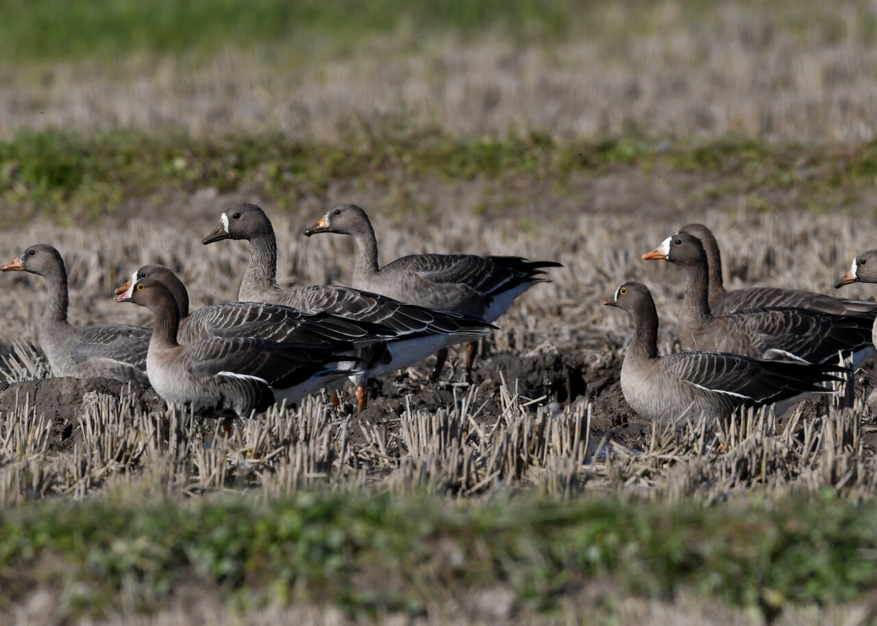 今回の遠征のターゲットの一つは数百羽が入っているカリガネの群れでしたが、あまり大きな群れは見つけられずマガンの群れと混じっている数十羽の群れが見られました。