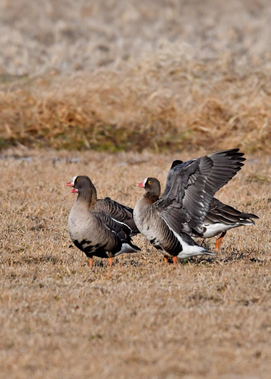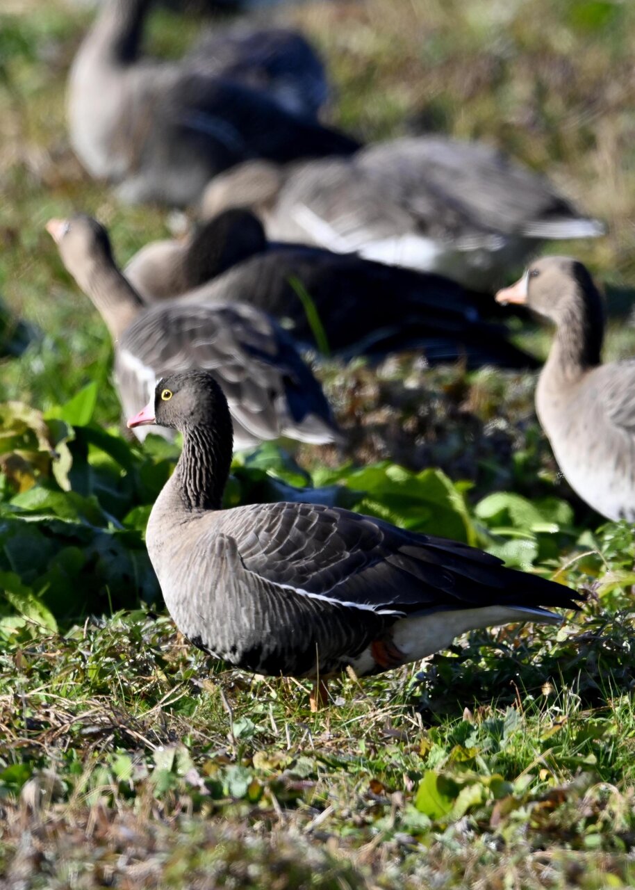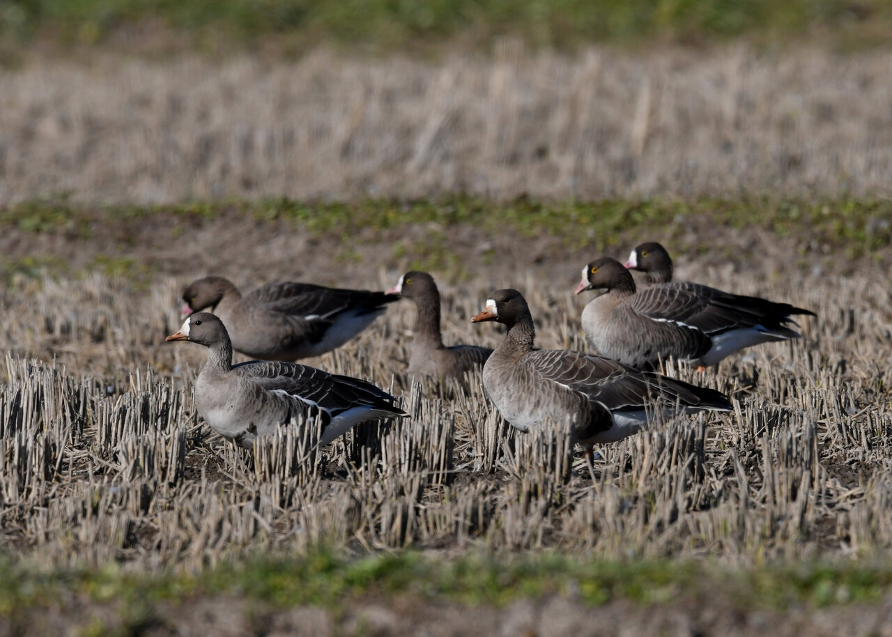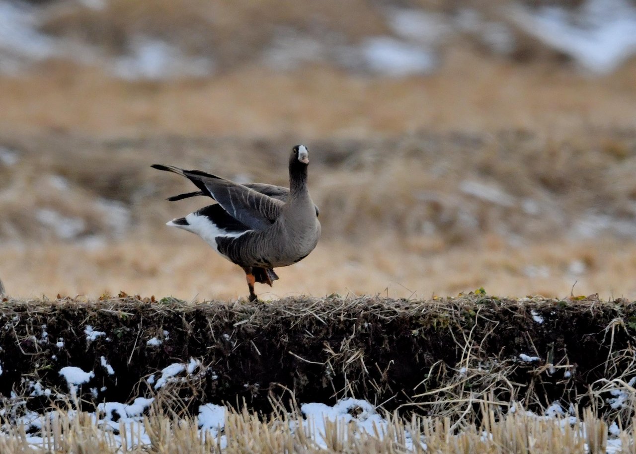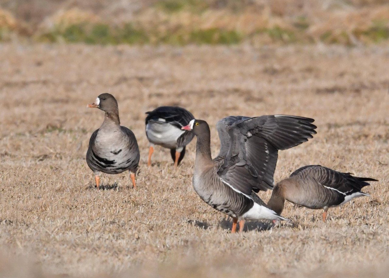 今回の遠征のターゲットの一つは数百羽が入っているカリガネの群れでしたが、あまり大きな群れは見つけられずマガンの群れと混じっている数十羽の群れが見られました。