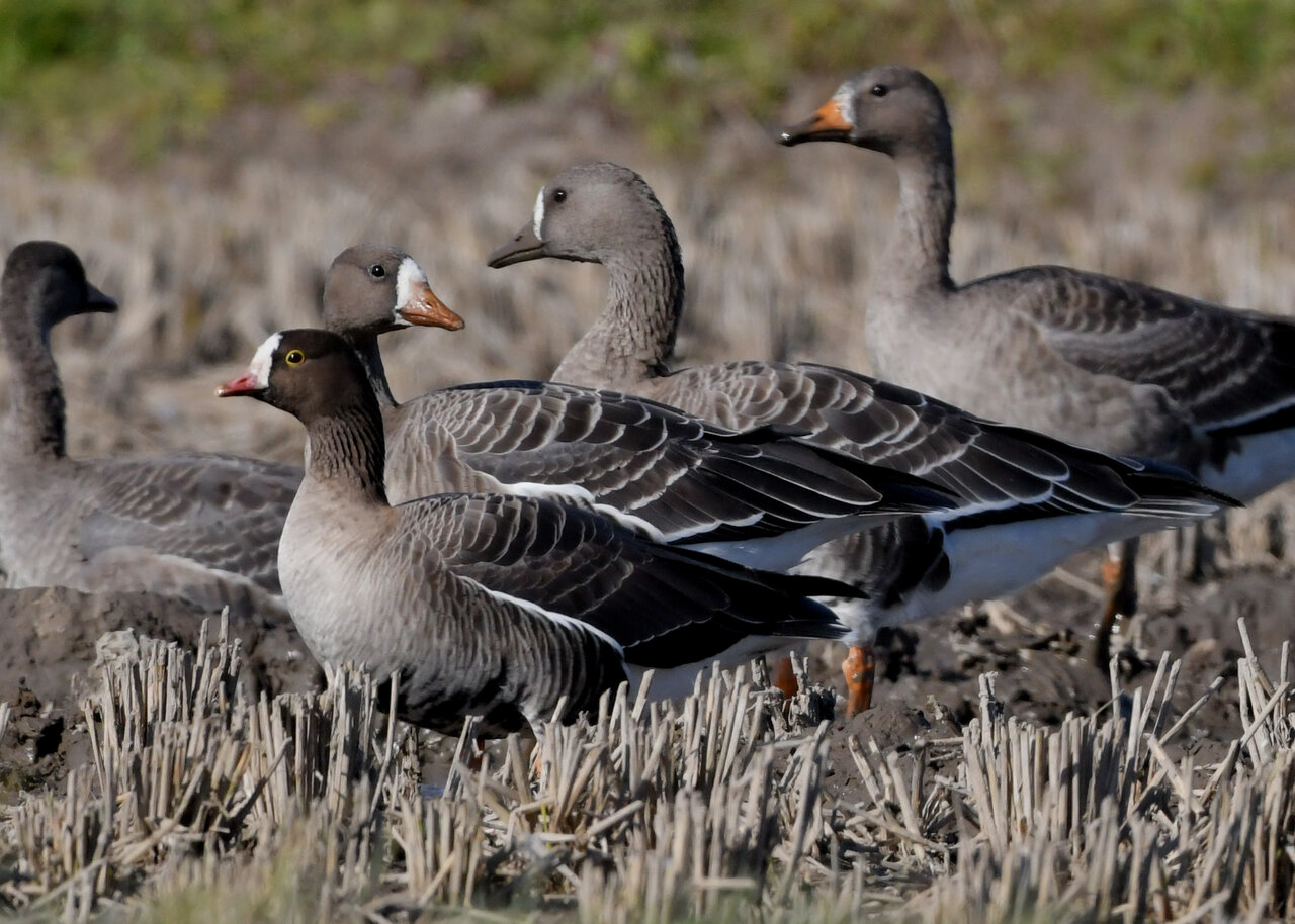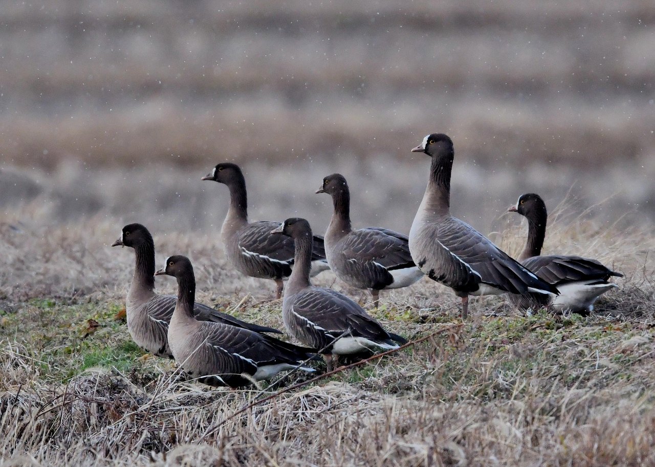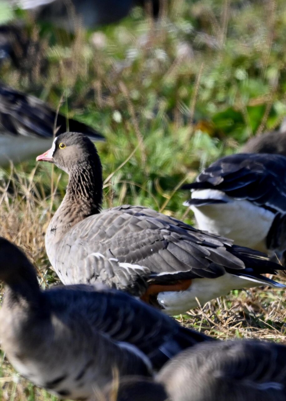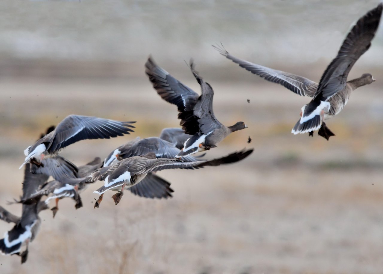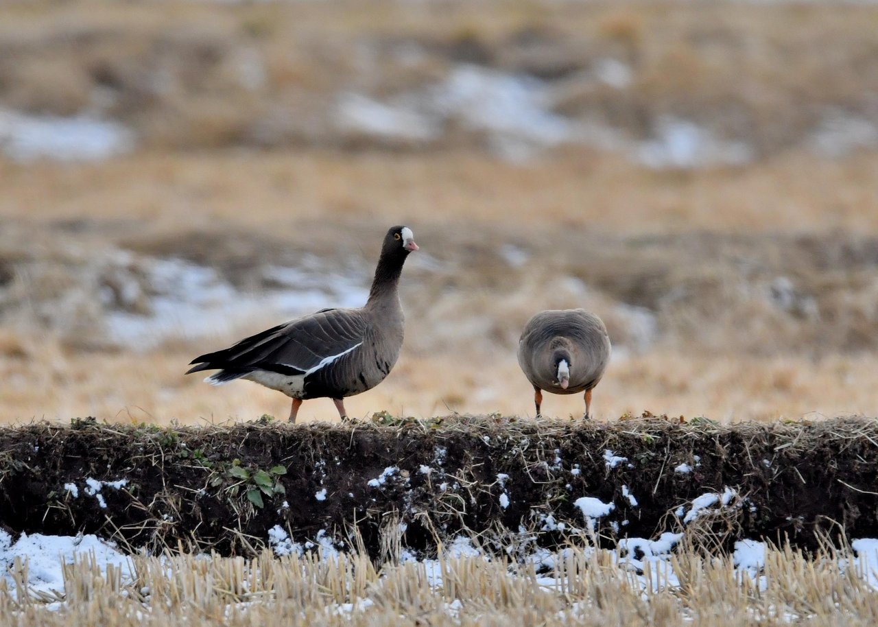 今回の遠征のターゲットの一つは数百羽が入っているカリガネの群れでしたが、あまり大きな群れは見つけられずマガンの群れと混じっている数十羽の群れが見られました。