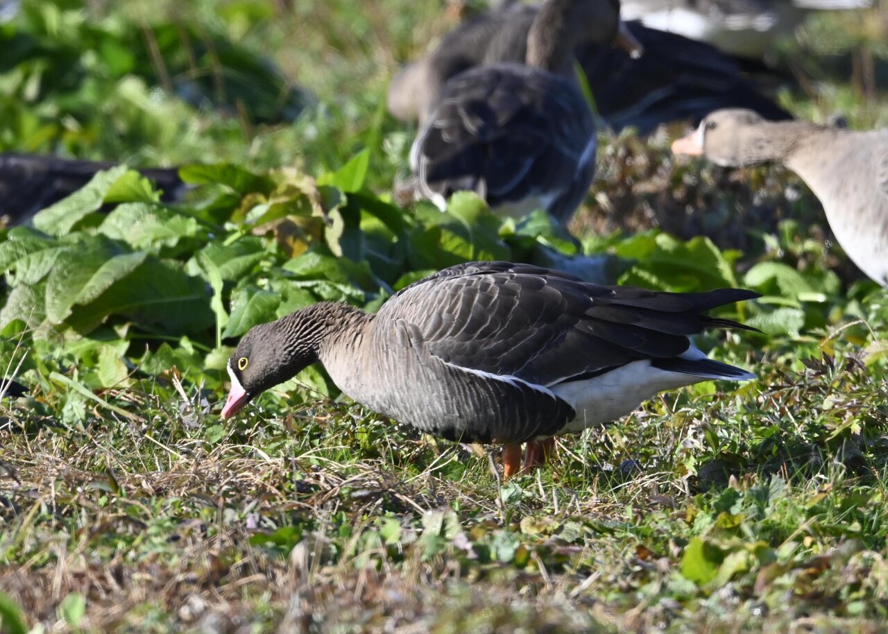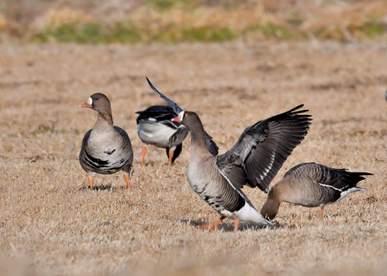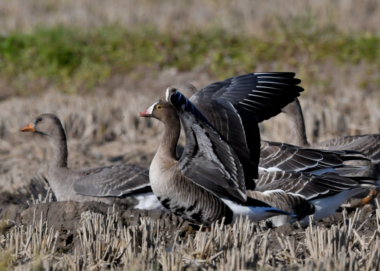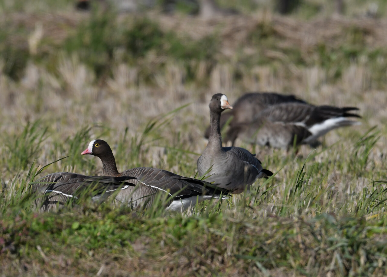 マガンの群れの中に混じって居る事が多く、田園を走りまわり探します。