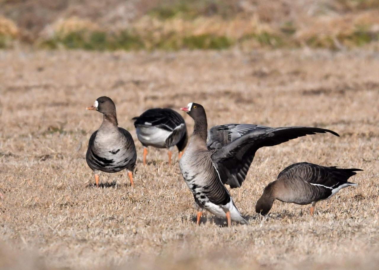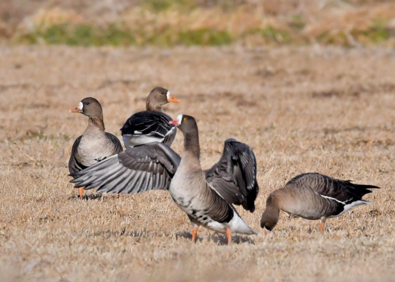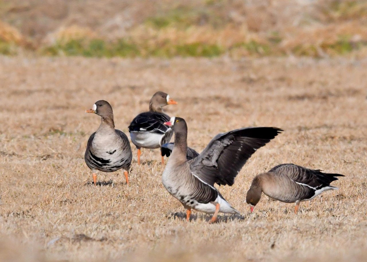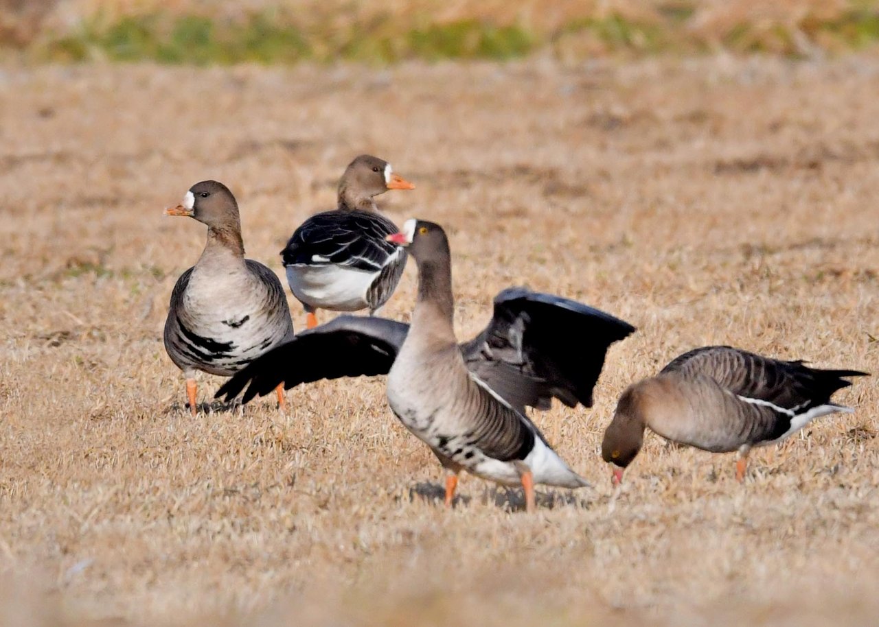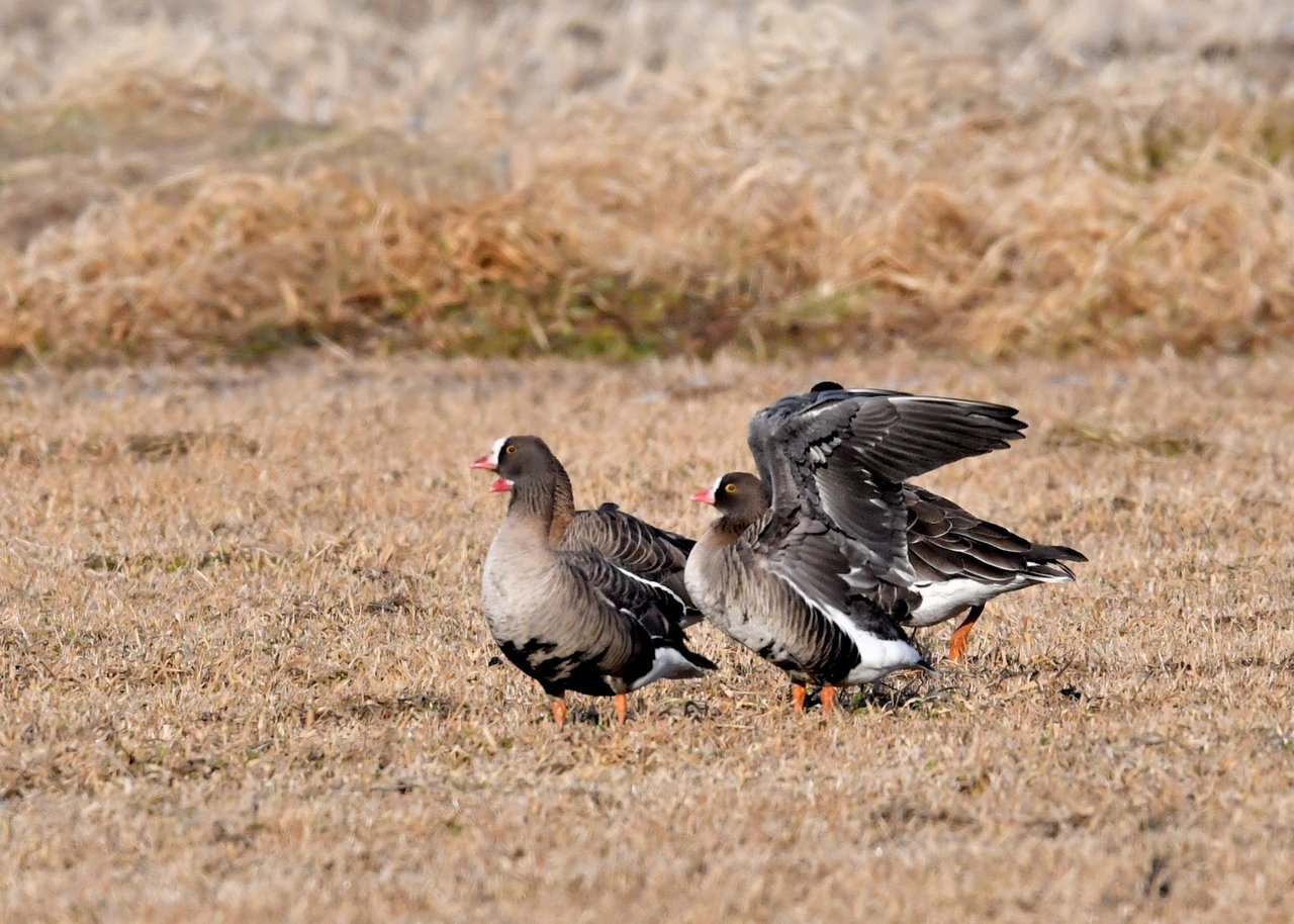 マガンの群れの中に混じって居る事が多く、田園を走りまわり探します。