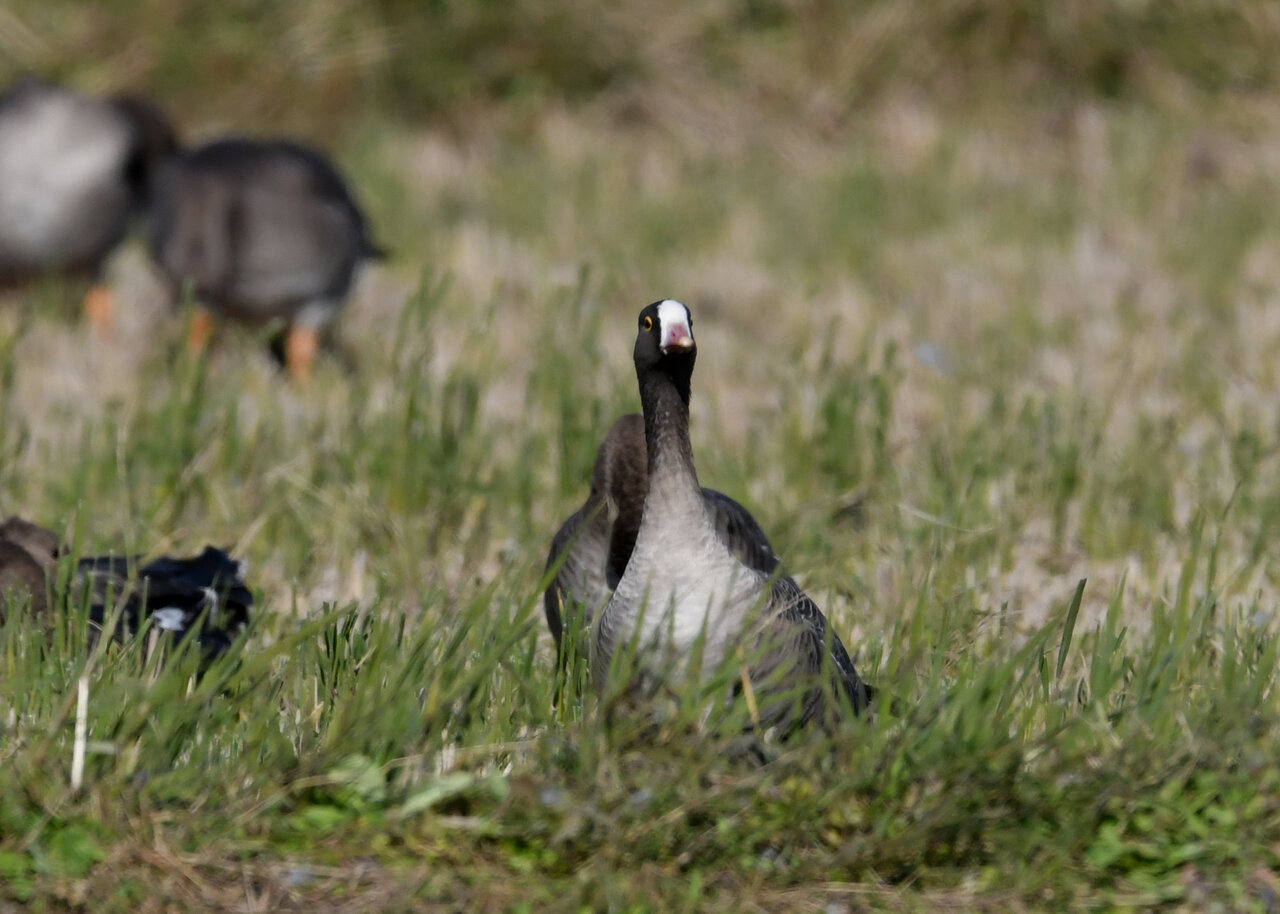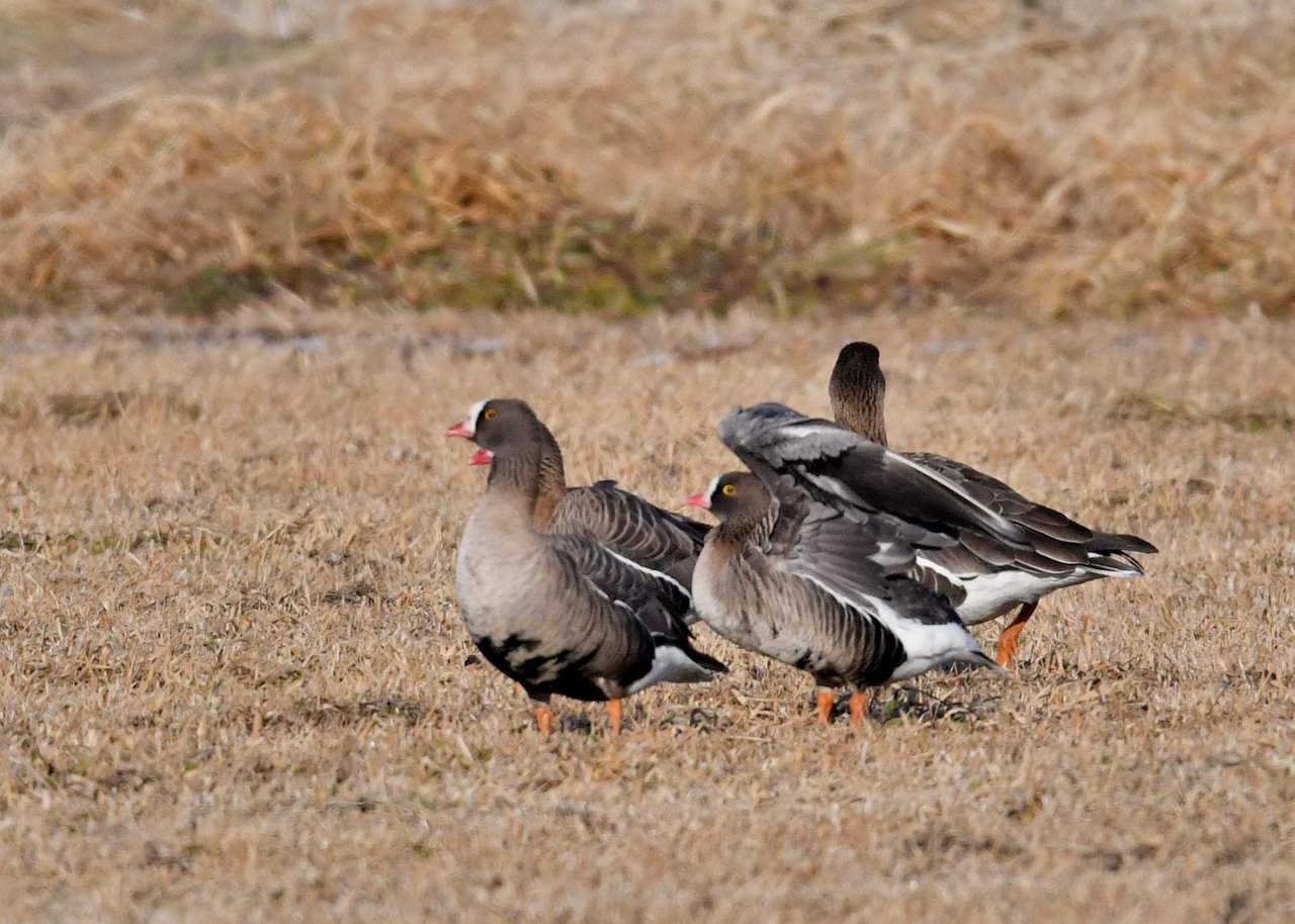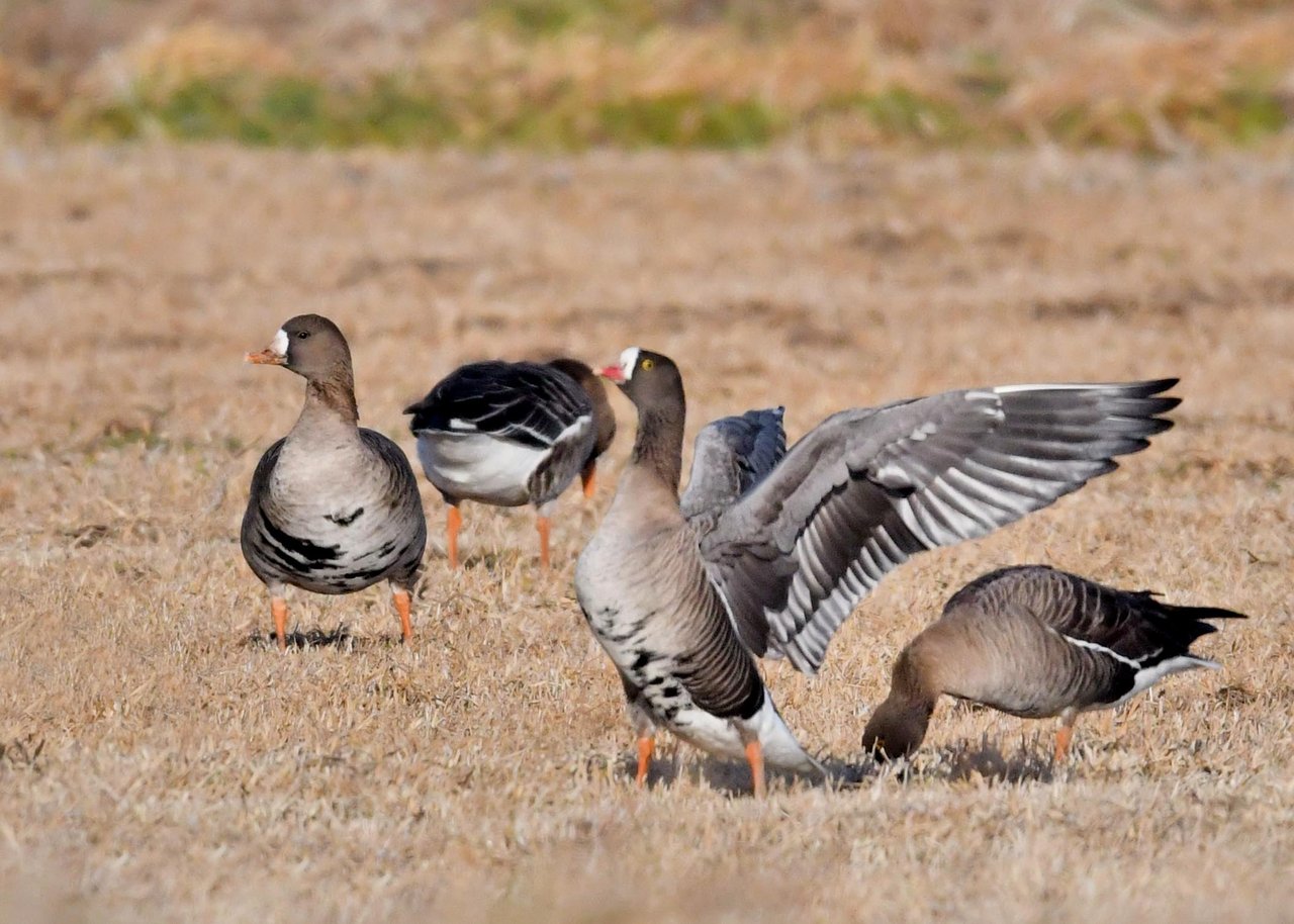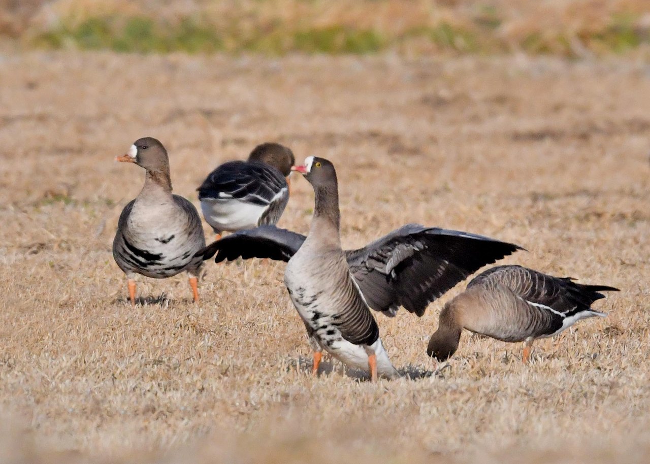 マガンの群れの中に混じって居る事が多く、田園を走りまわり探します。