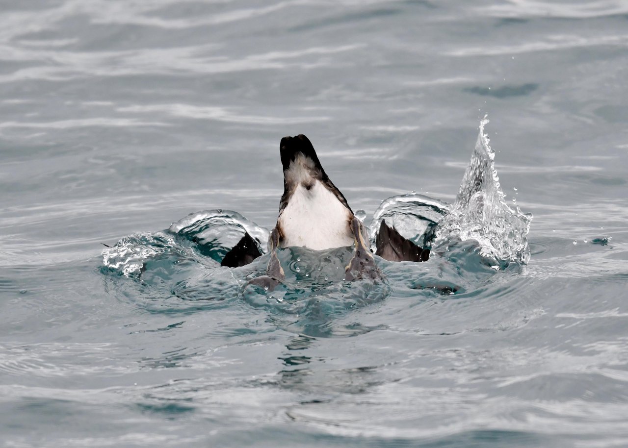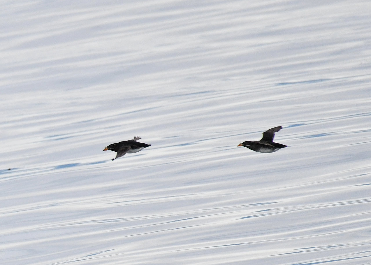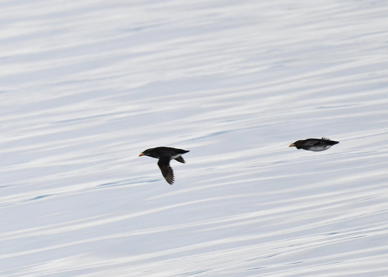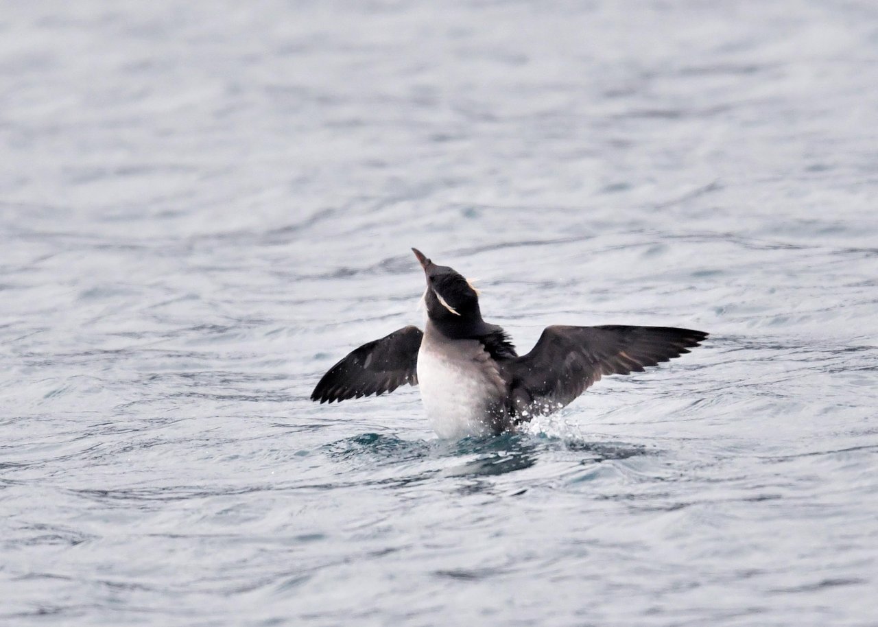 ウトウは北海道天売島などの繁殖地で、早朝から海洋で過ごし夕方群れが巣に帰ってくるところが有名です。