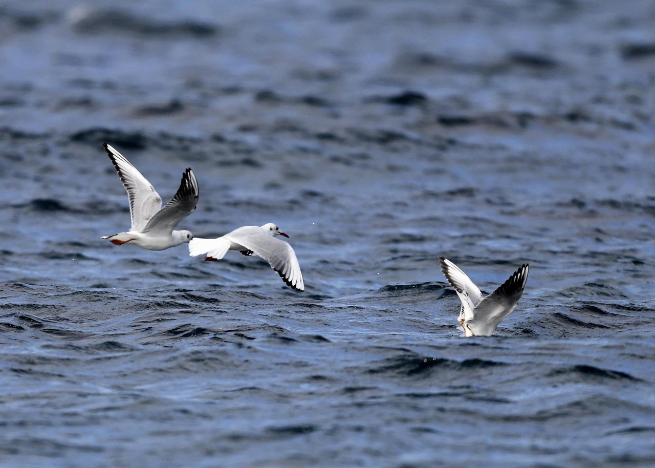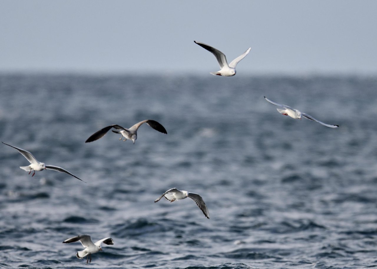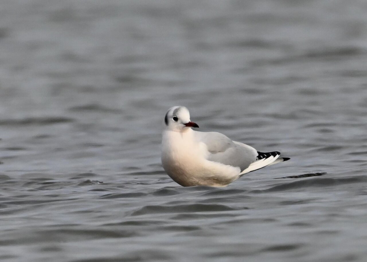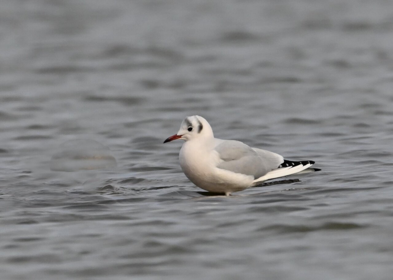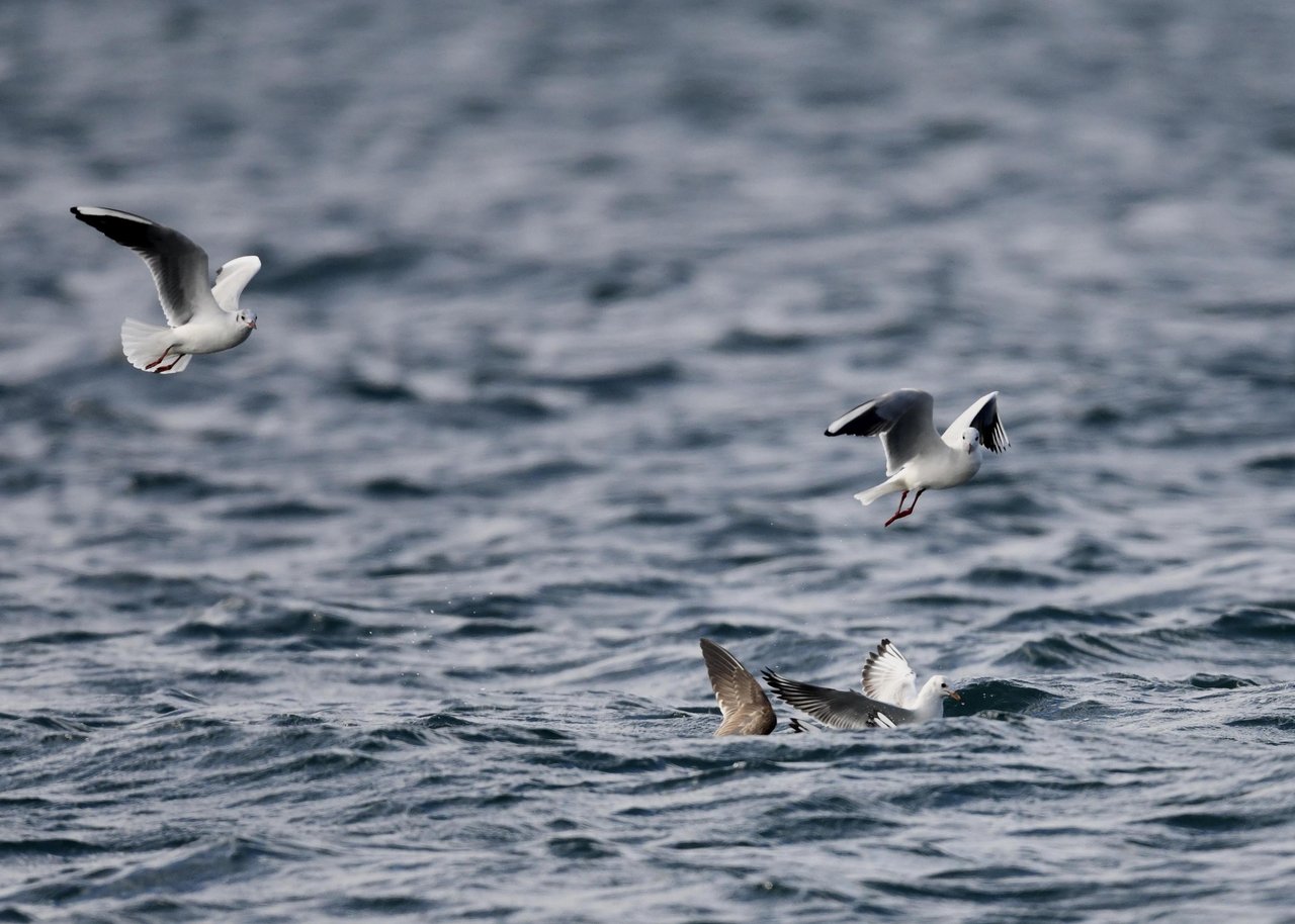 過日、ウミスズメを撮影に出かけた時のユリカモメです。ウミスズメが魚捕りに潜っている