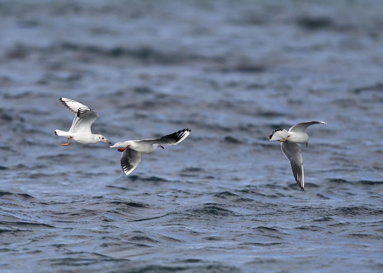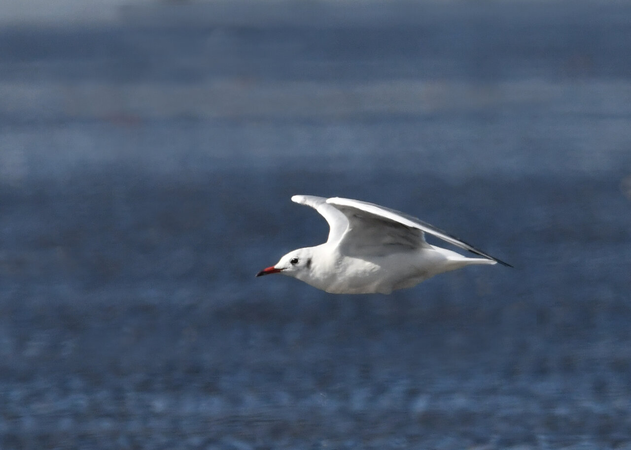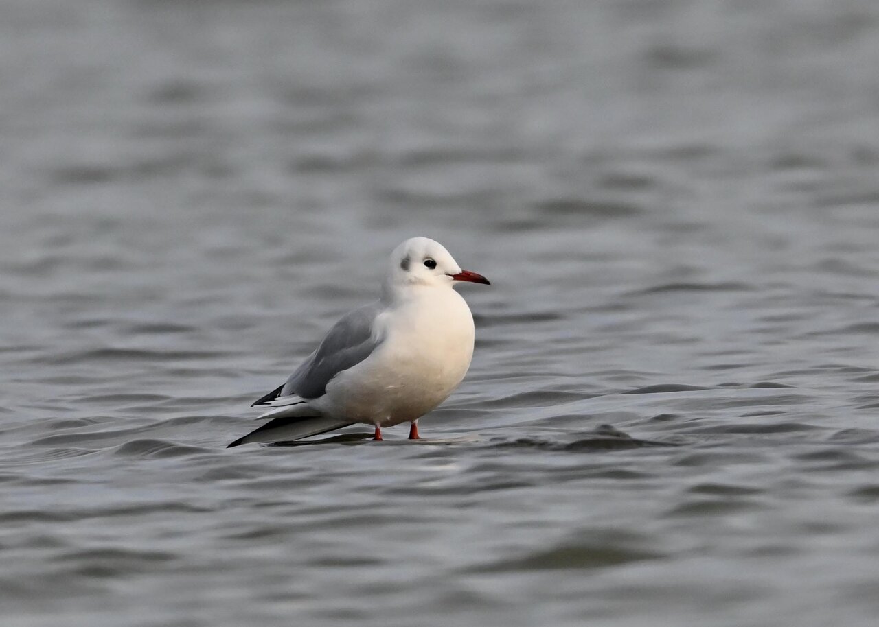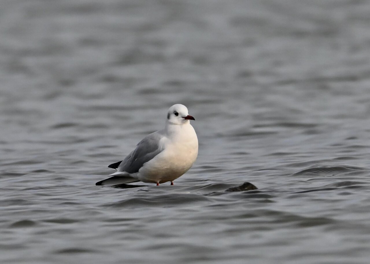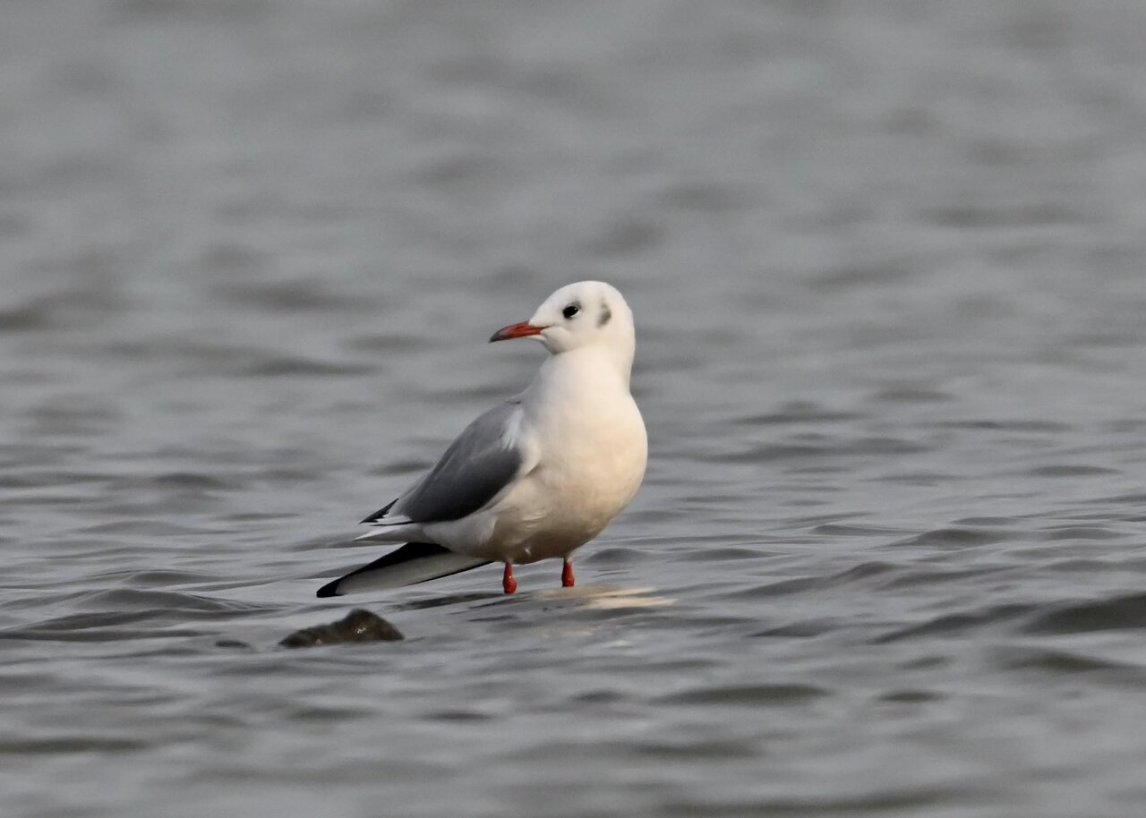 過日、ウミスズメを撮影に出かけた時のユリカモメです。ウミスズメが魚捕りに潜っている