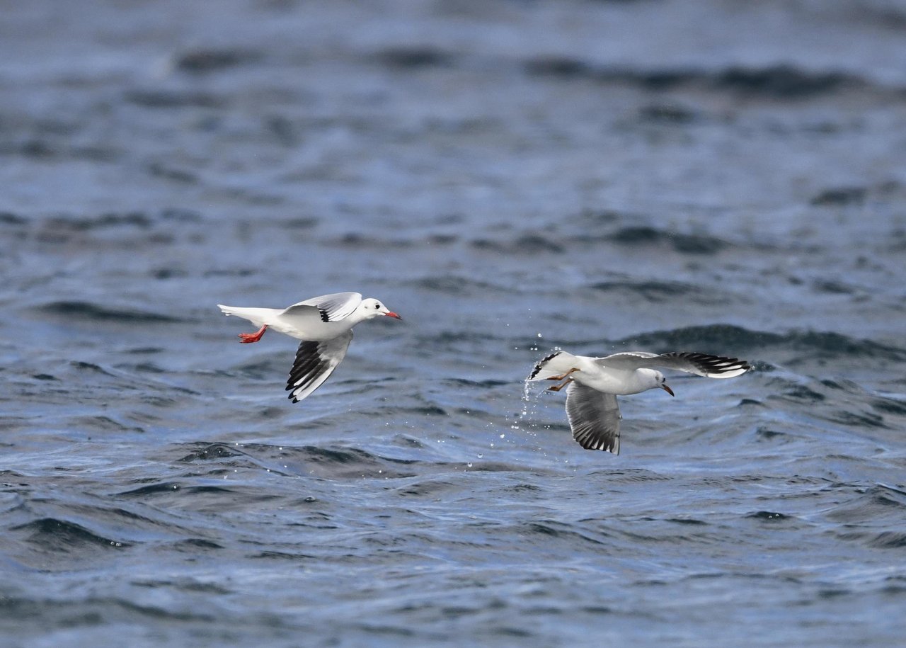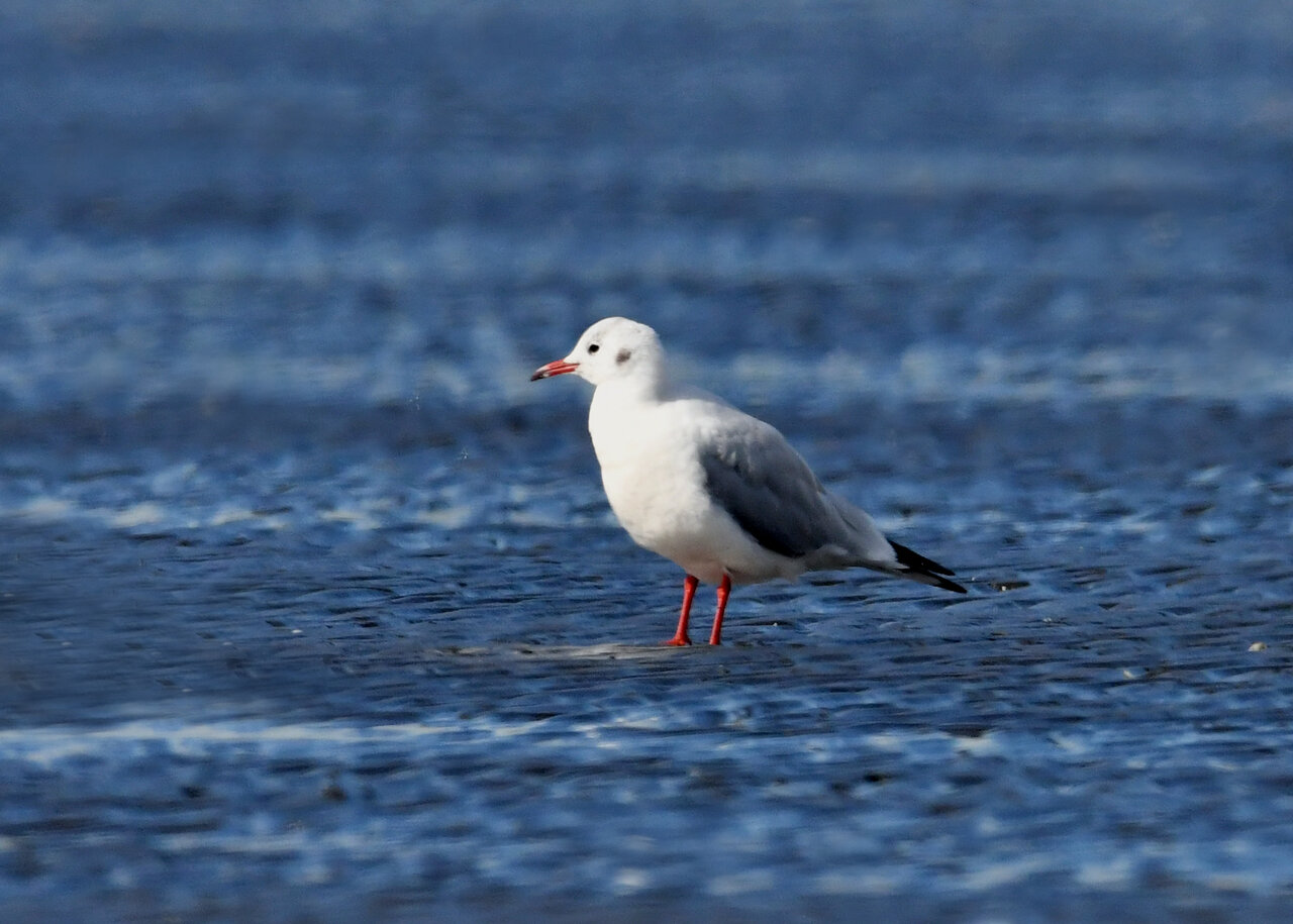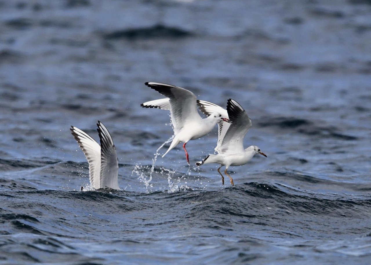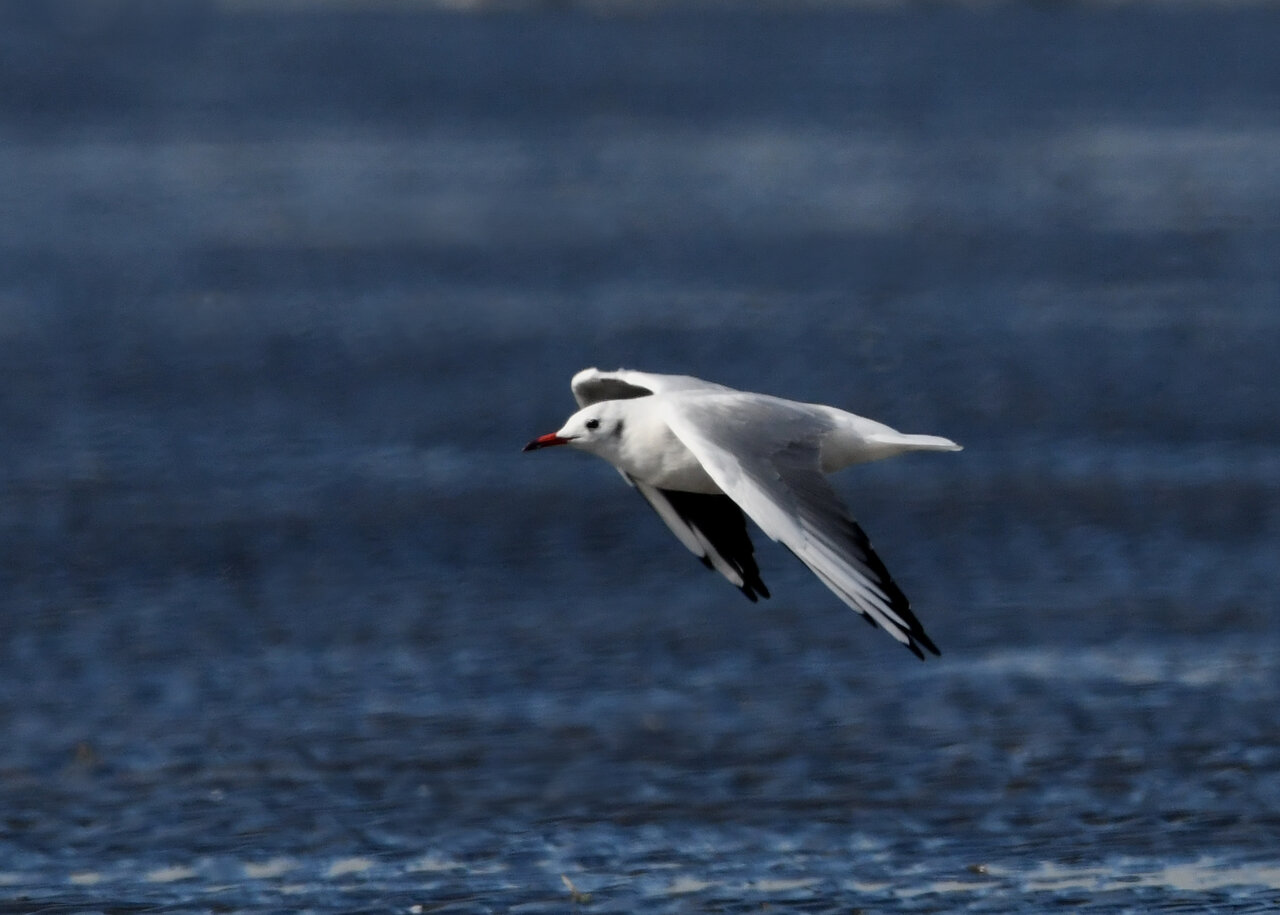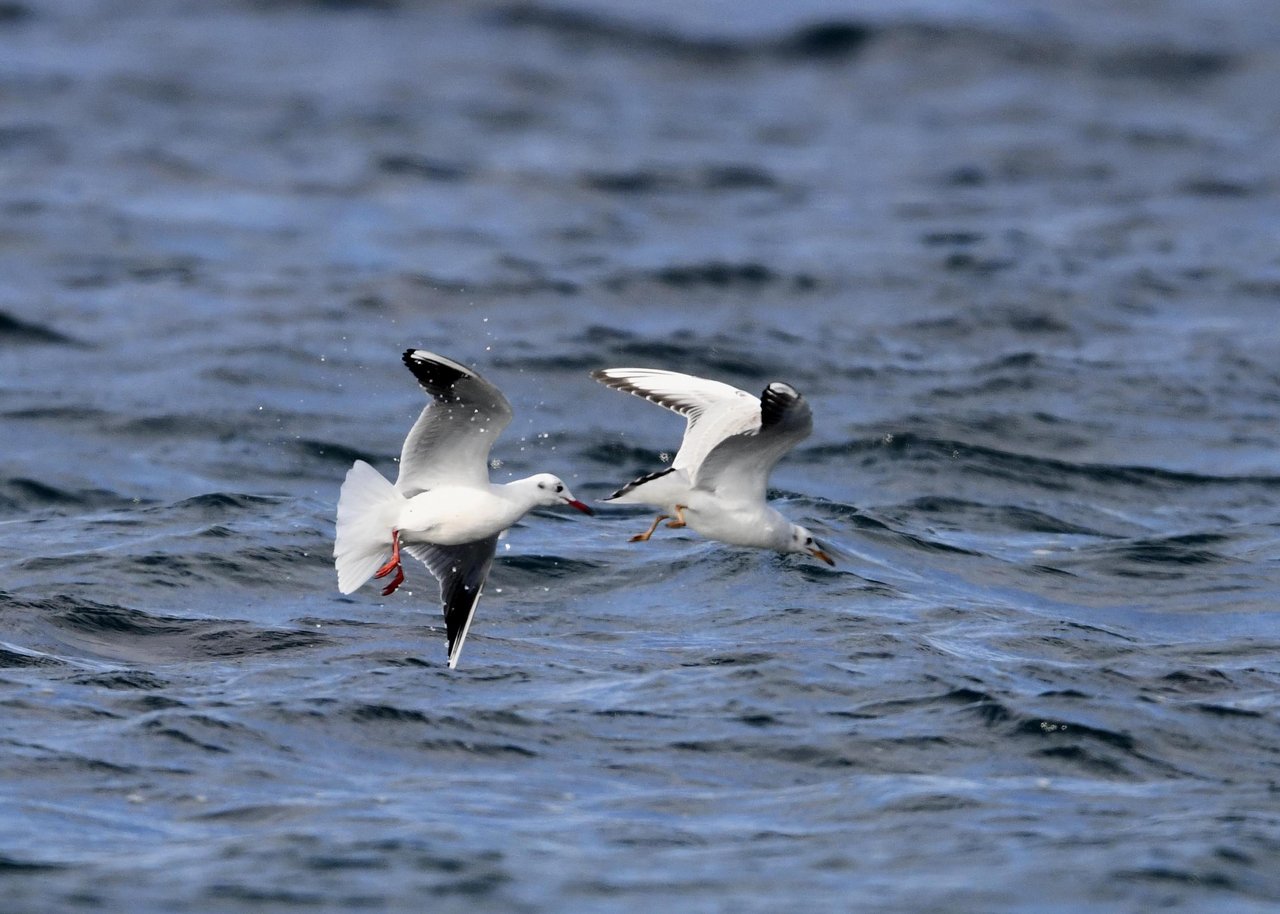 過日、ウミスズメを撮影に出かけた時のユリカモメです。ウミスズメが魚捕りに潜っている
