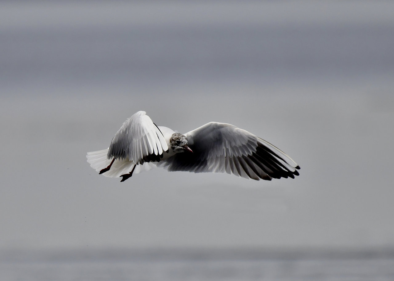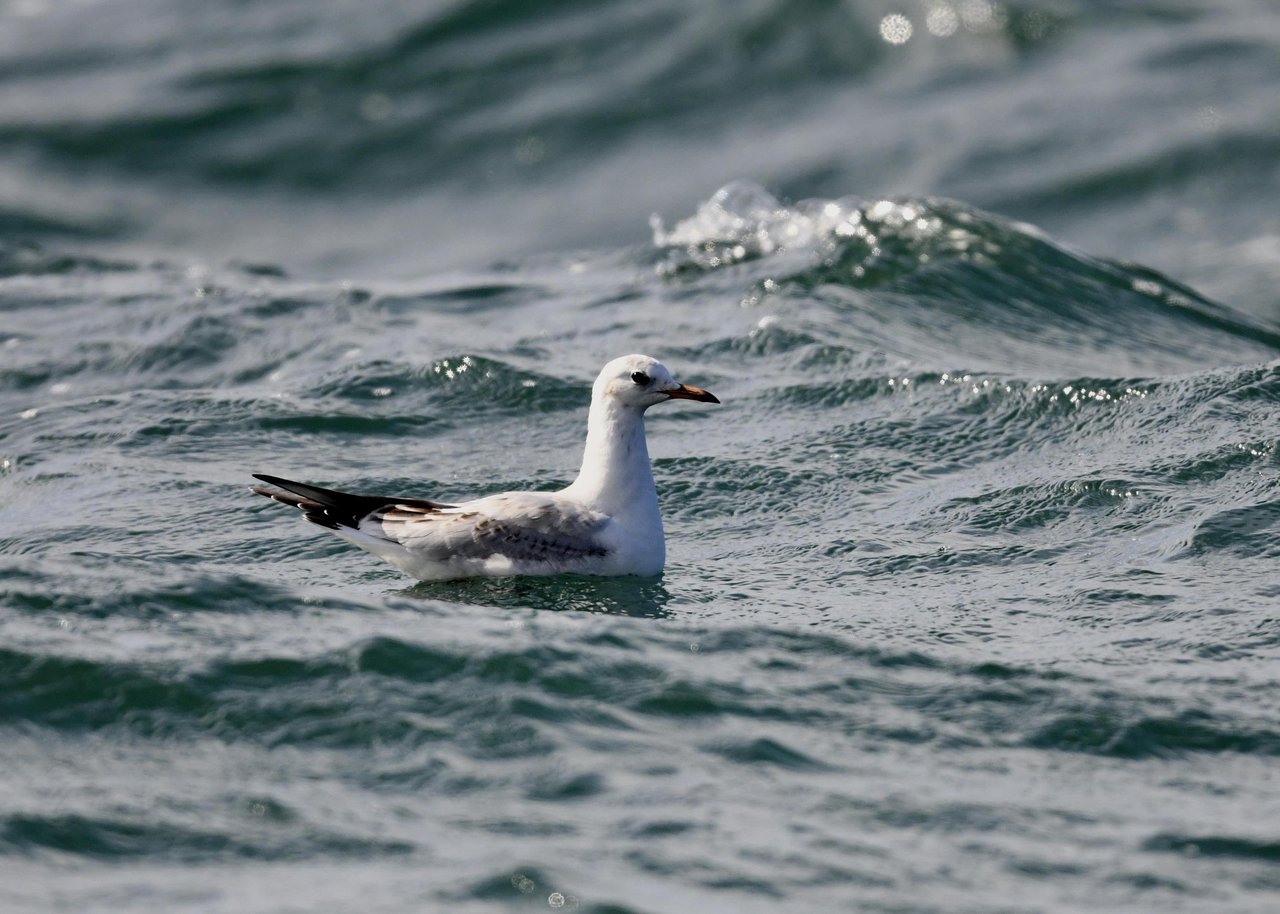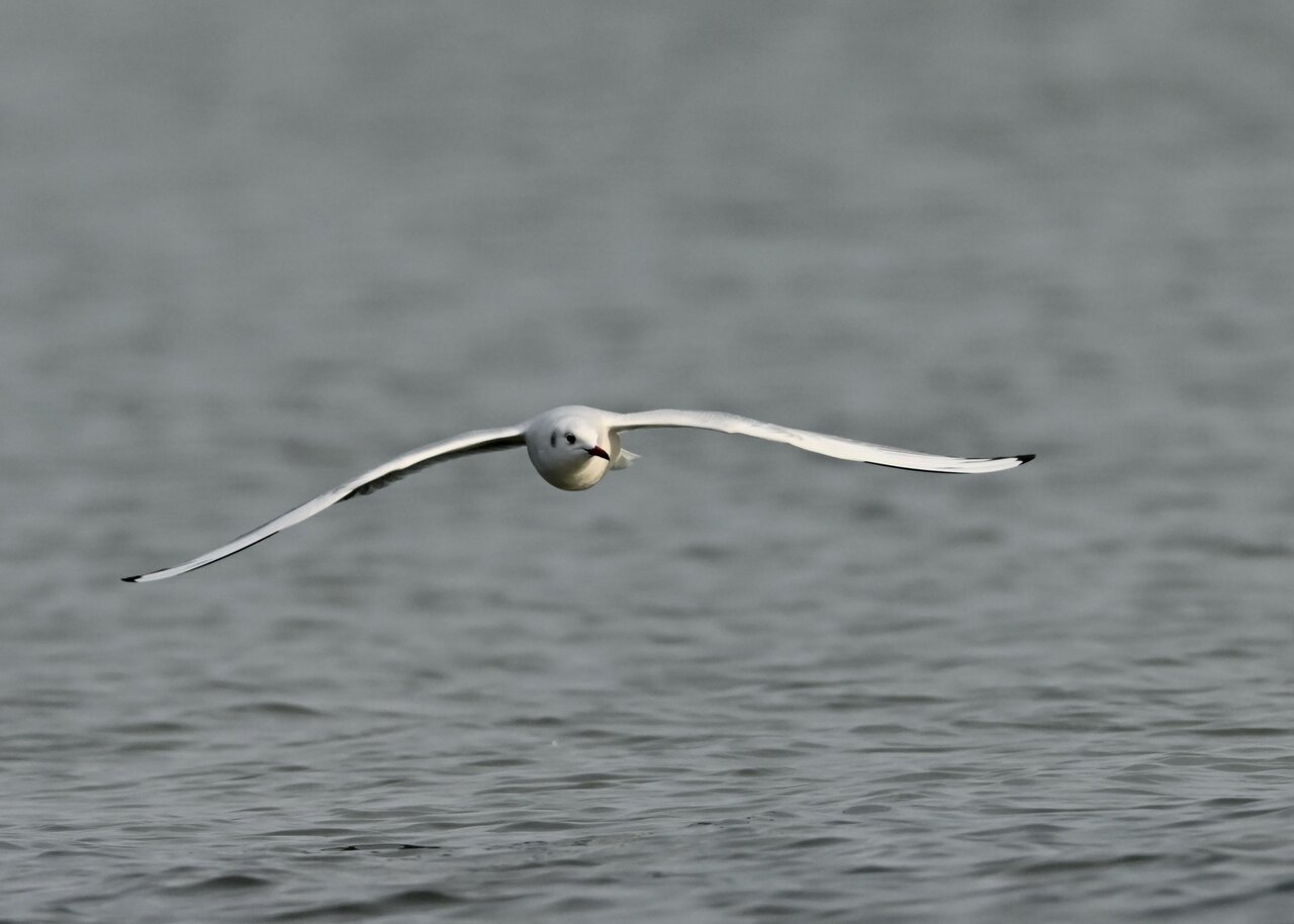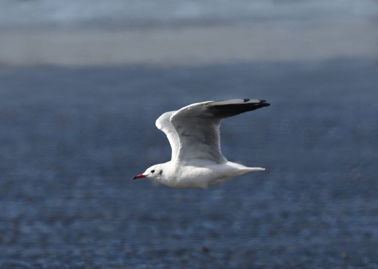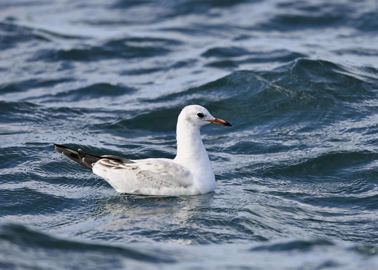 過日、ウミスズメを撮影に出かけた時のユリカモメです。ウミスズメが魚捕りに潜っている