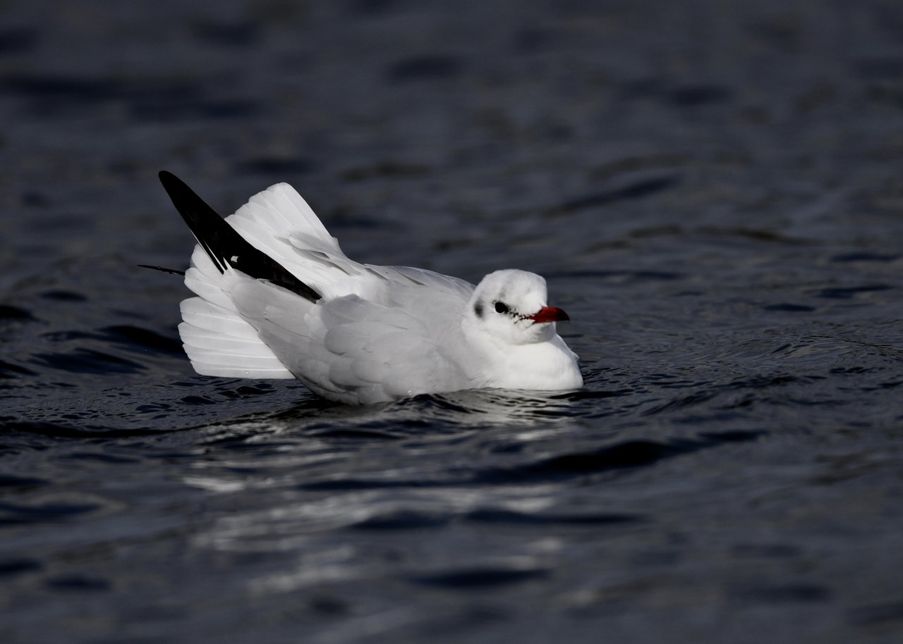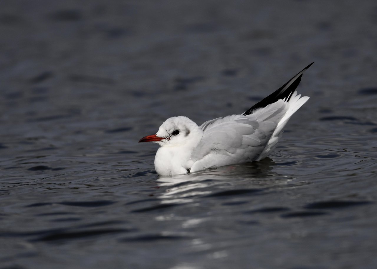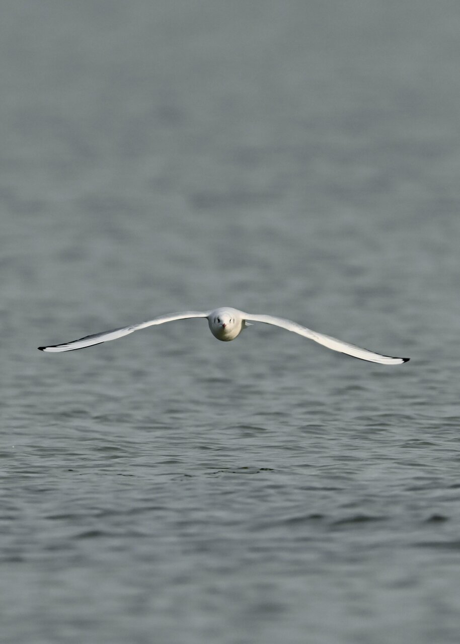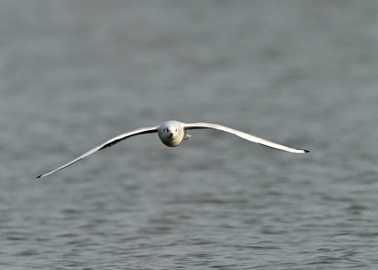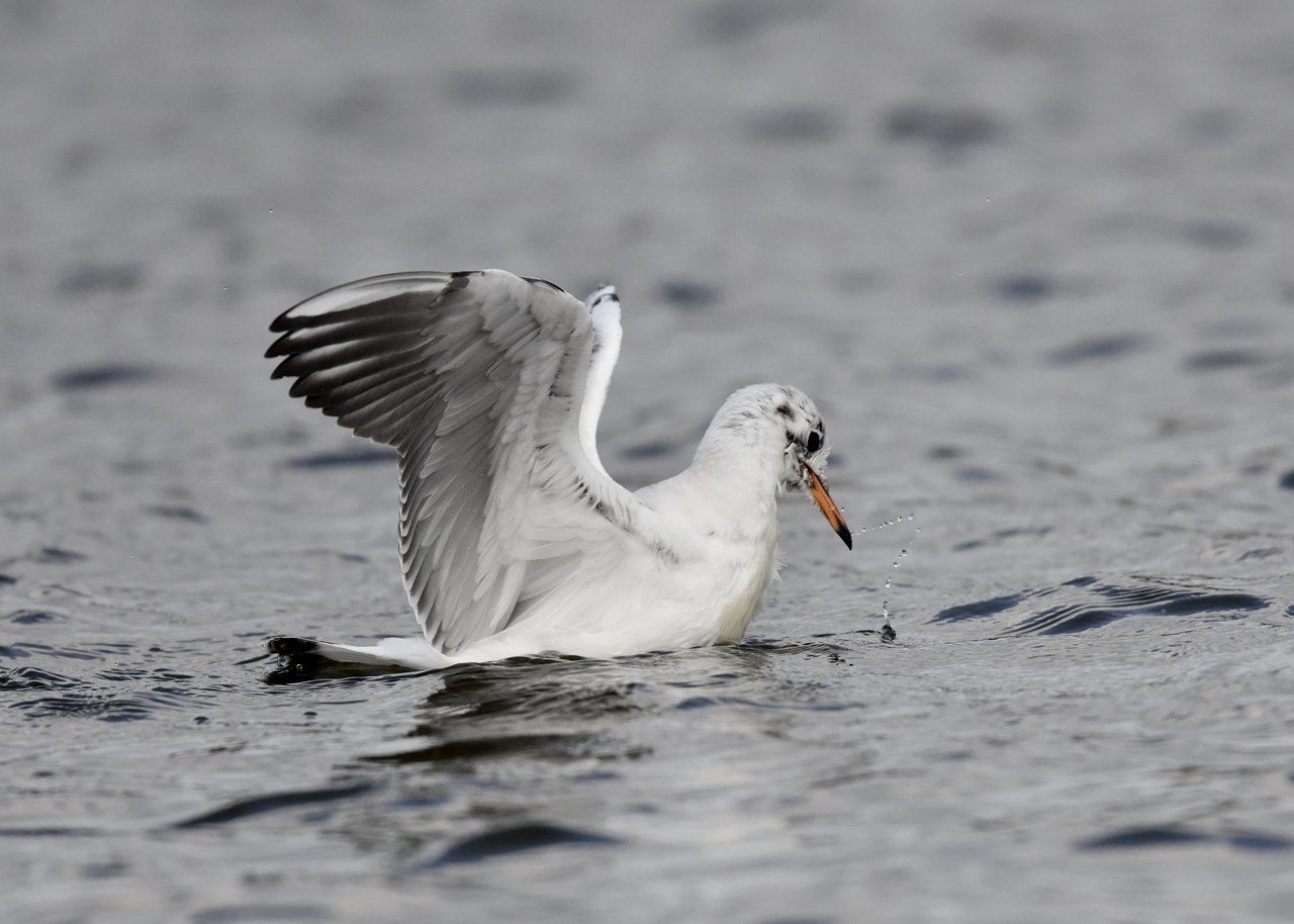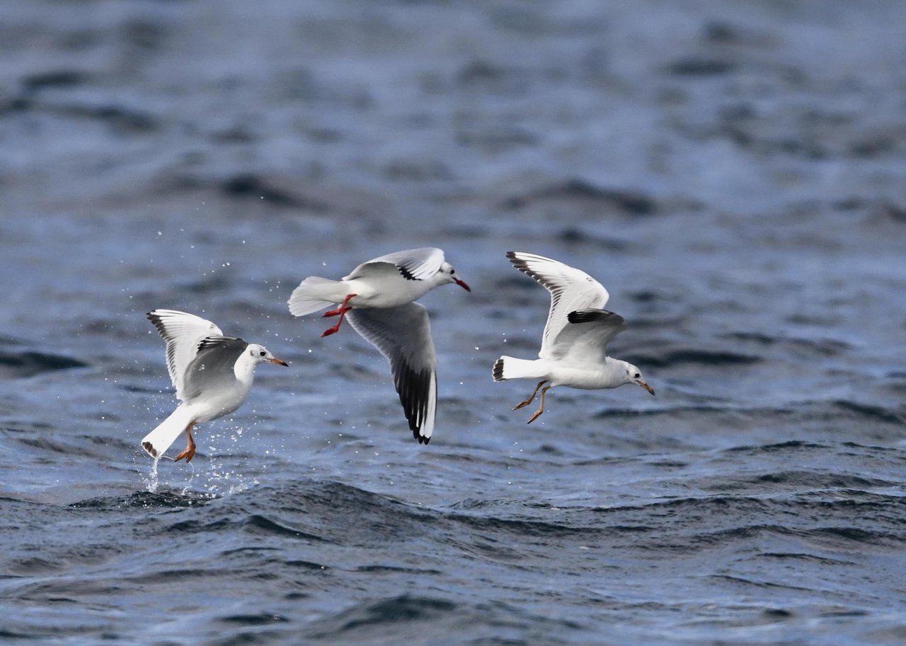 過日、ウミスズメを撮影に出かけた時のユリカモメです。ウミスズメが魚捕りに潜っている
