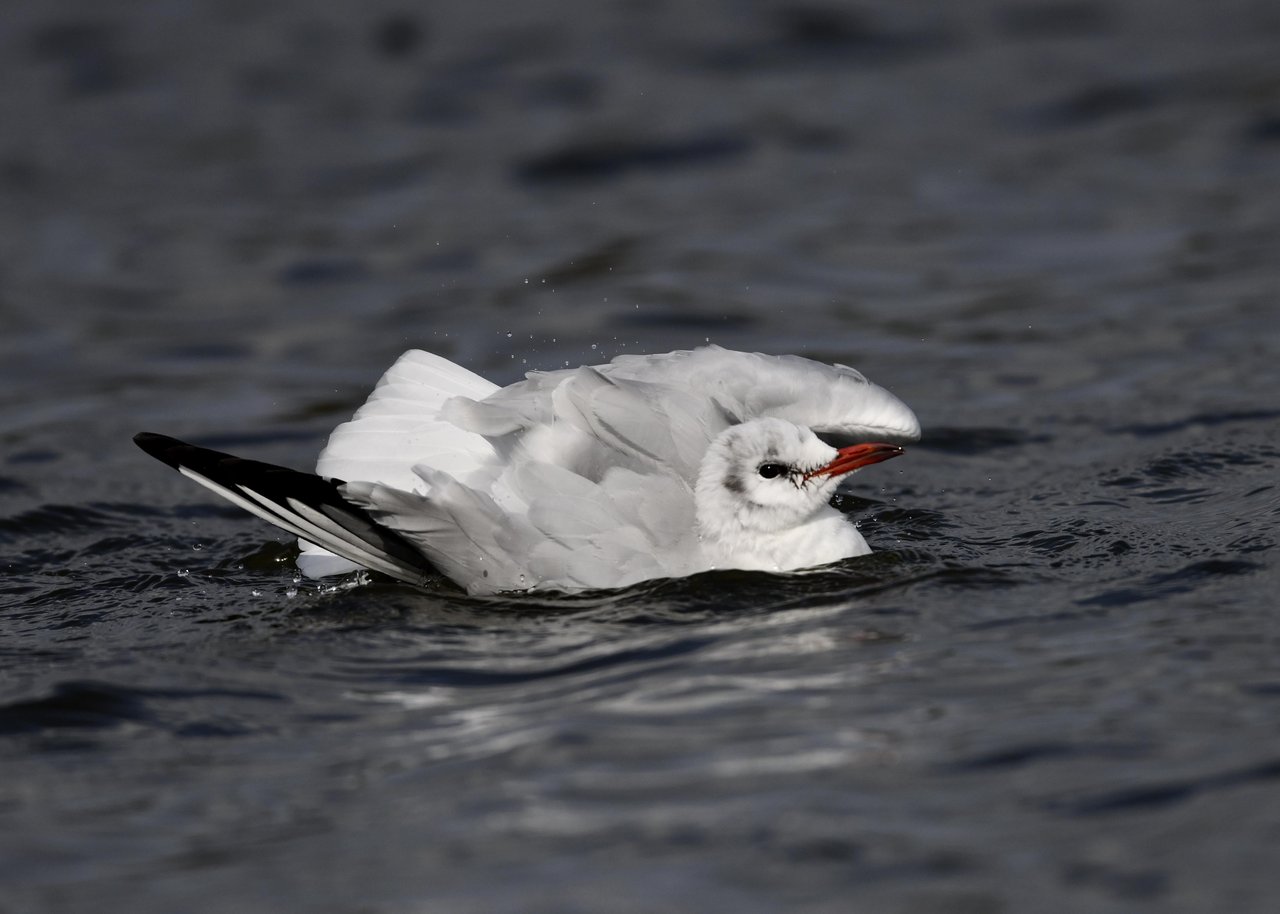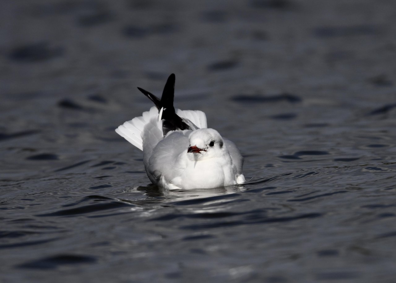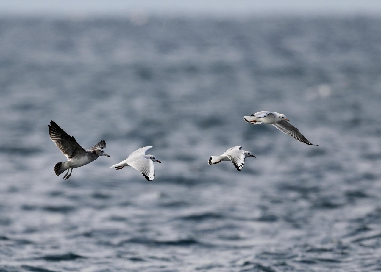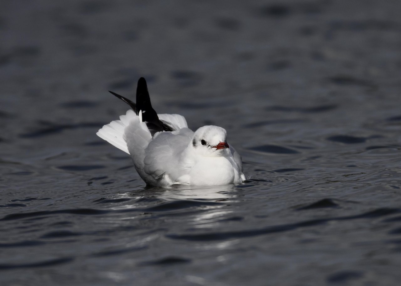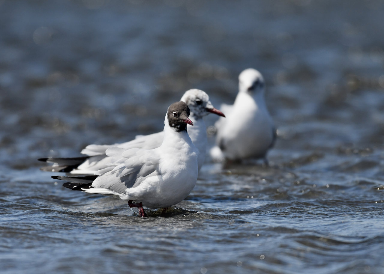 過日、ウミスズメを撮影に出かけた時のユリカモメです。ウミスズメが魚捕りに潜っている