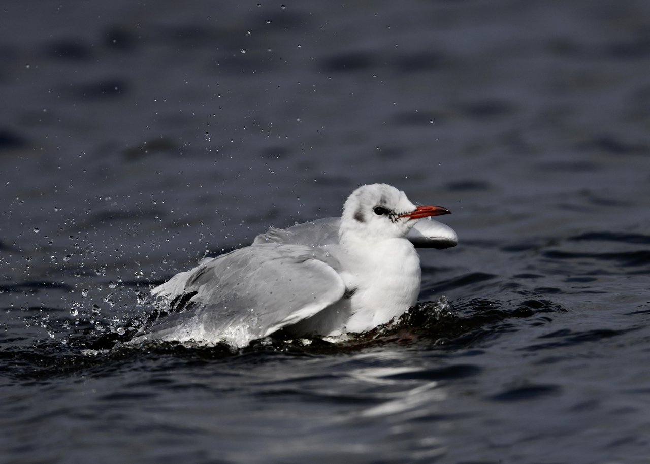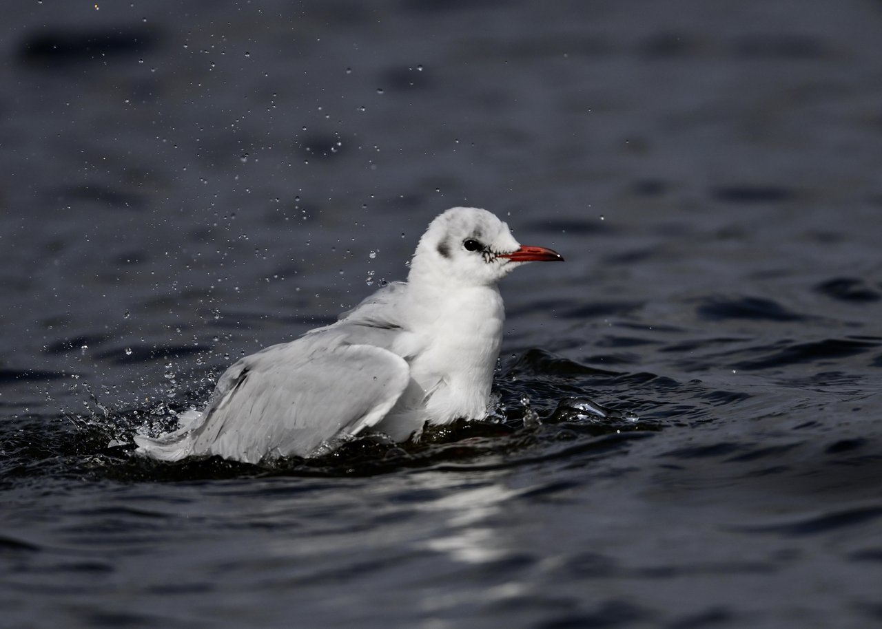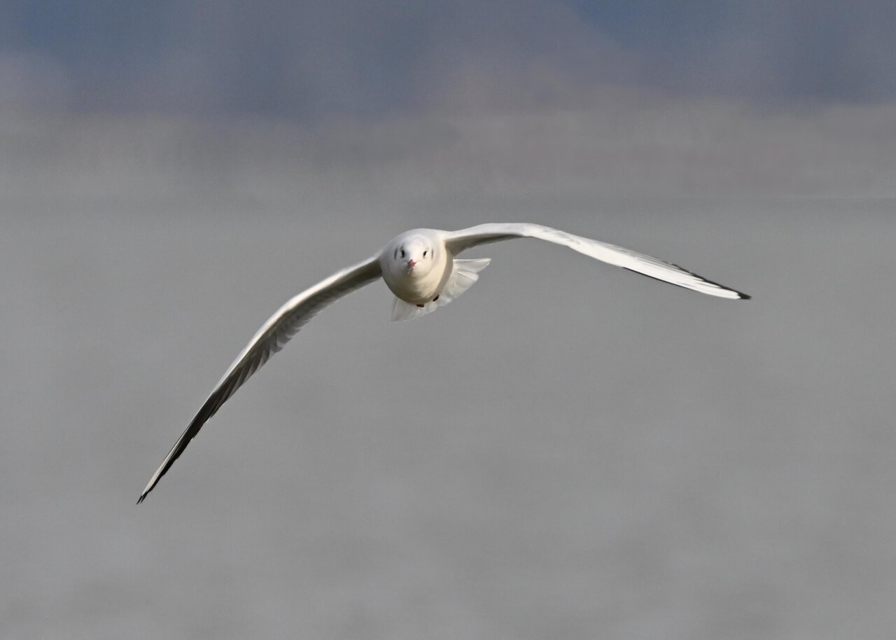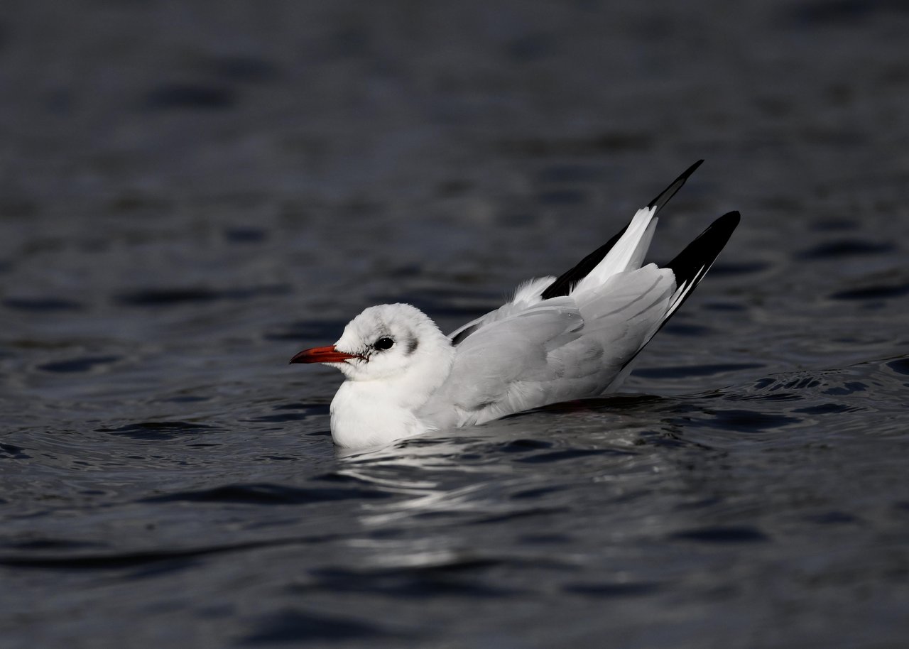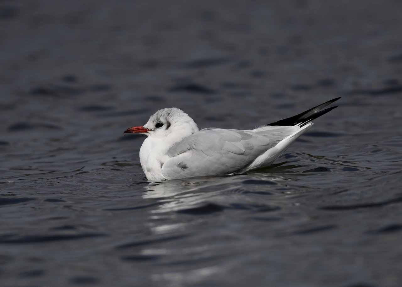 過日、ウミスズメを撮影に出かけた時のユリカモメです。ウミスズメが魚捕りに潜っている