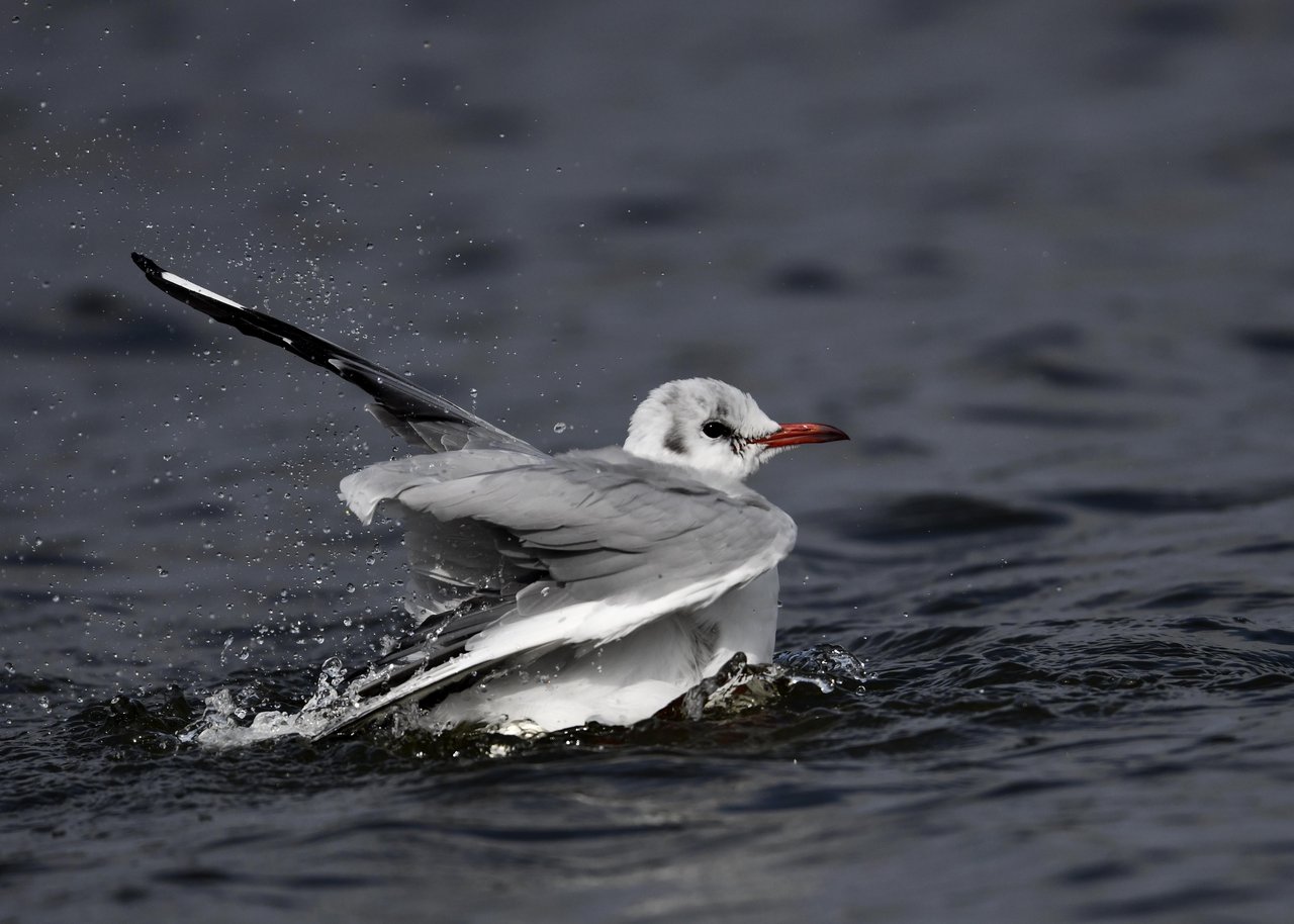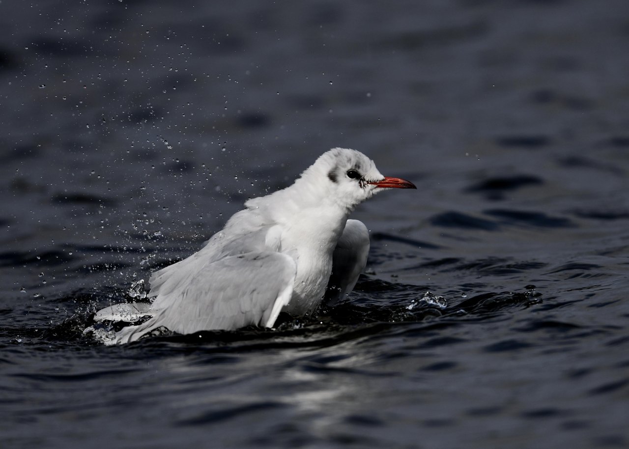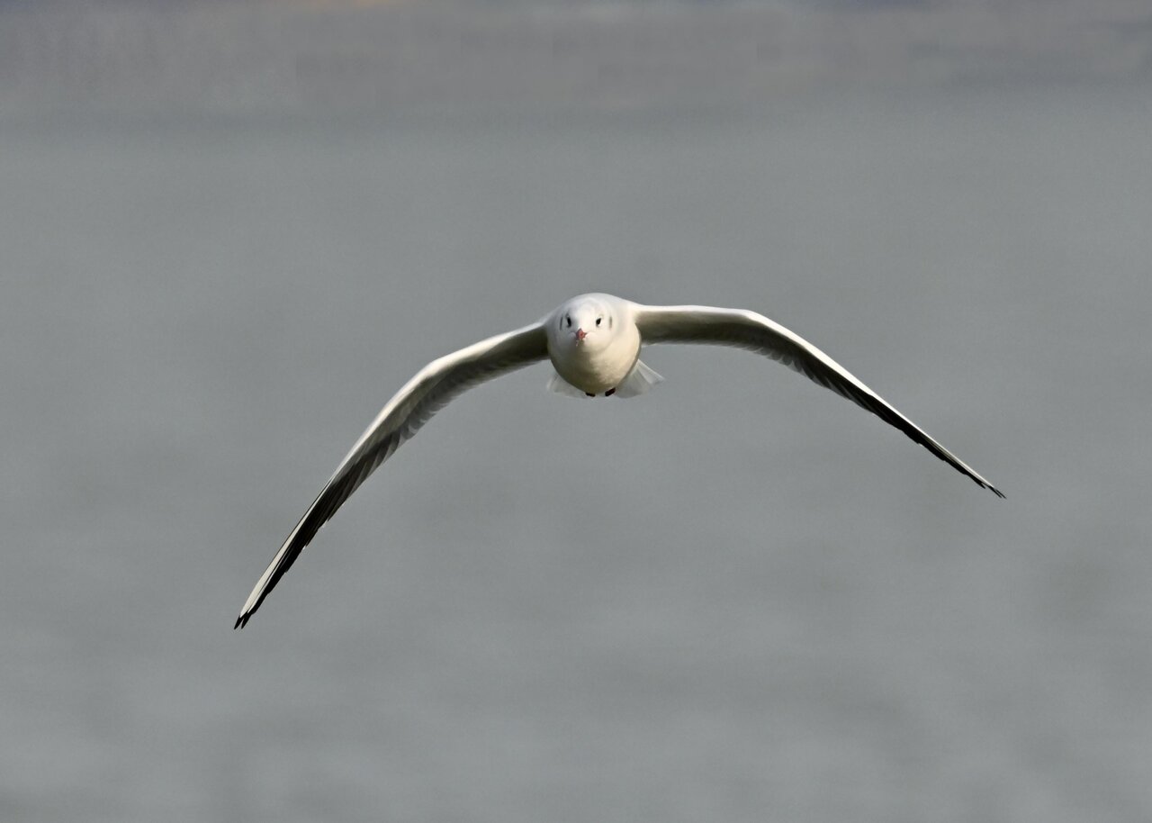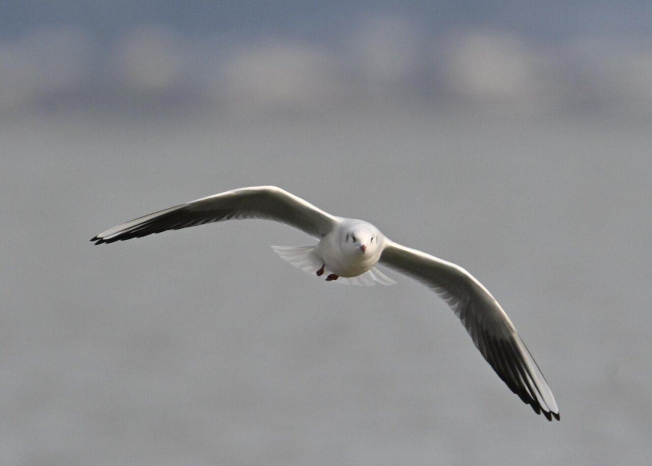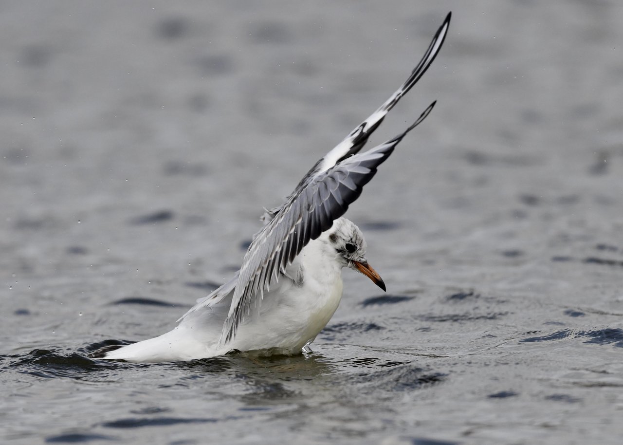 過日、ウミスズメを撮影に出かけた時のユリカモメです。ウミスズメが魚捕りに潜っている