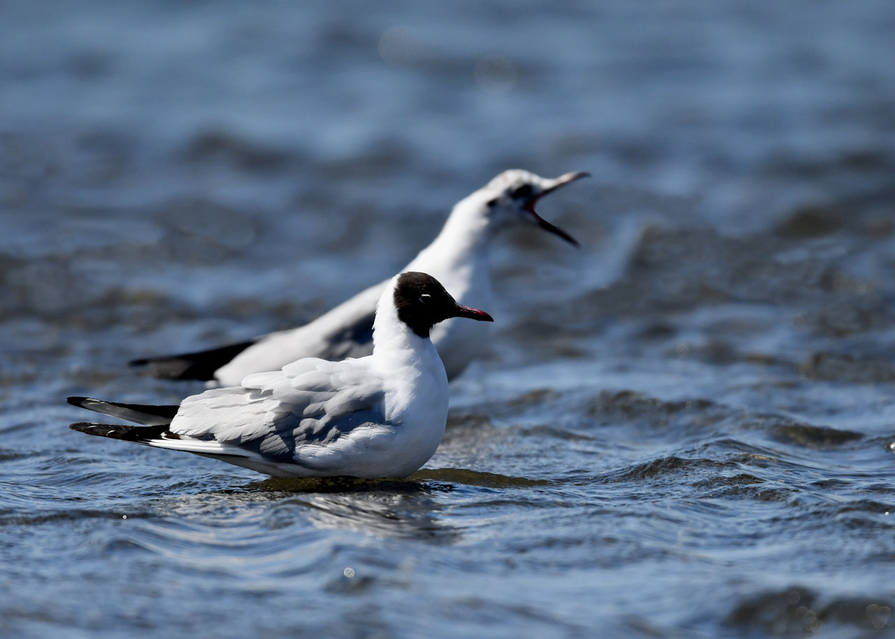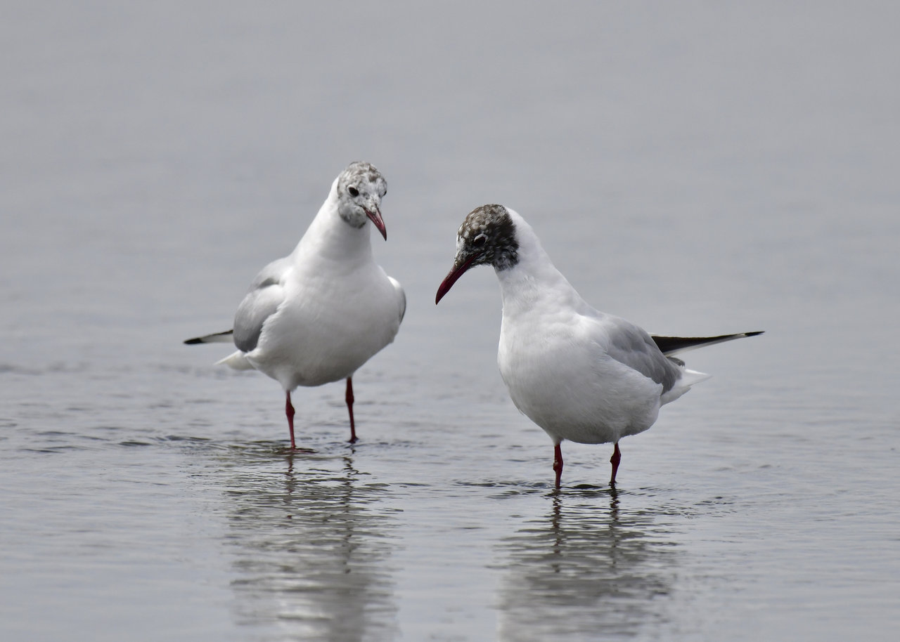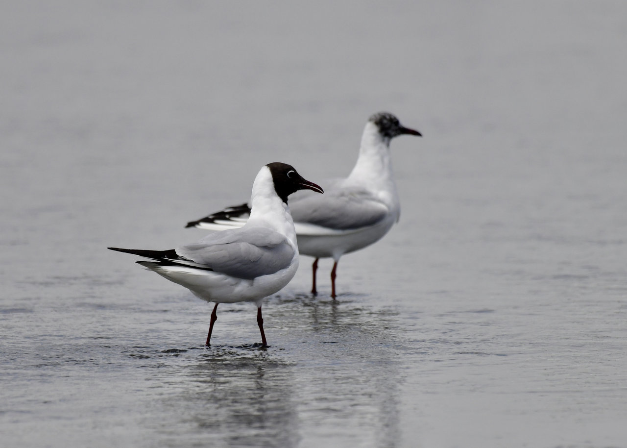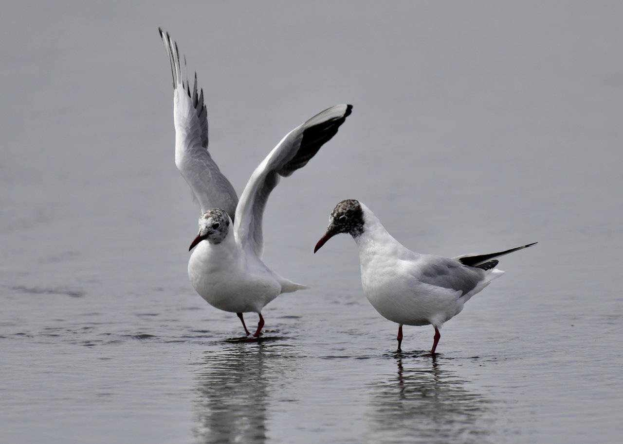 ソリハシセイタカシギを撮影の合間、何処からと無く飛んで来た2羽のユリカモメ・冬羽です。