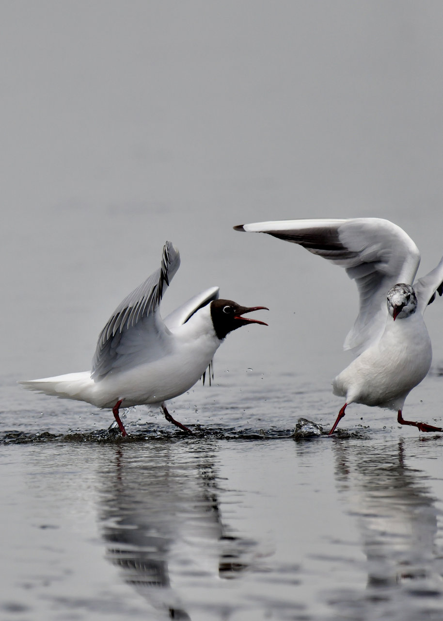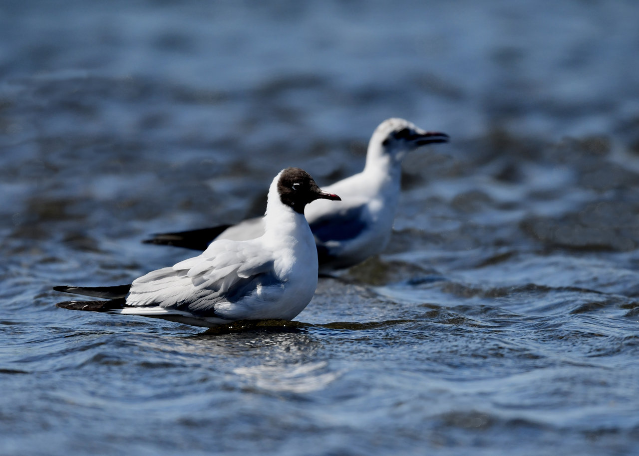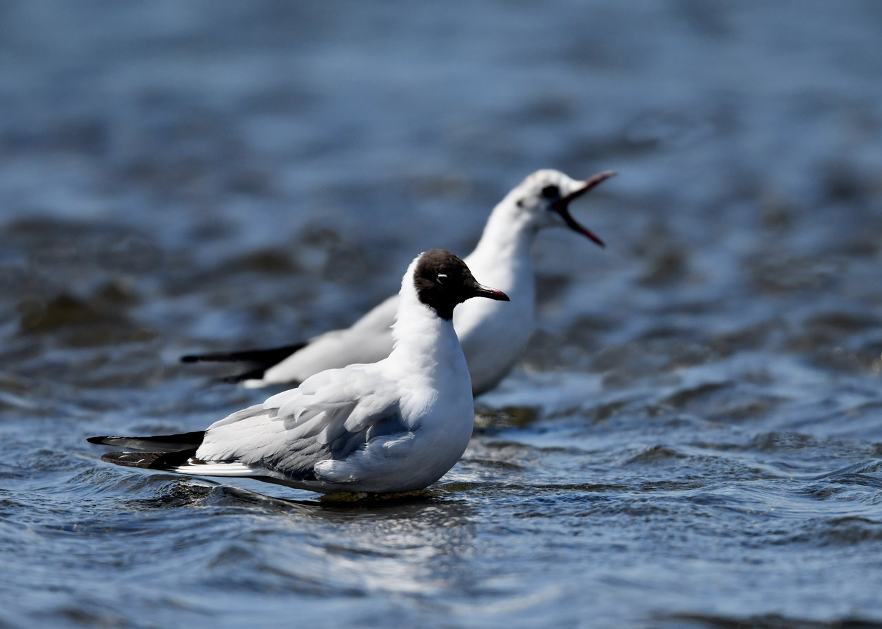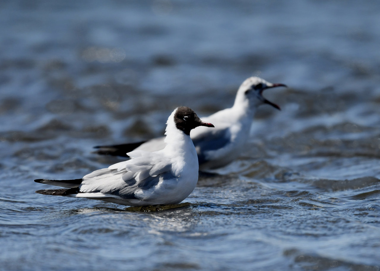 ソリハシセイタカシギを撮影の合間、何処からと無く飛んで来た2羽のユリカモメ・冬羽です。