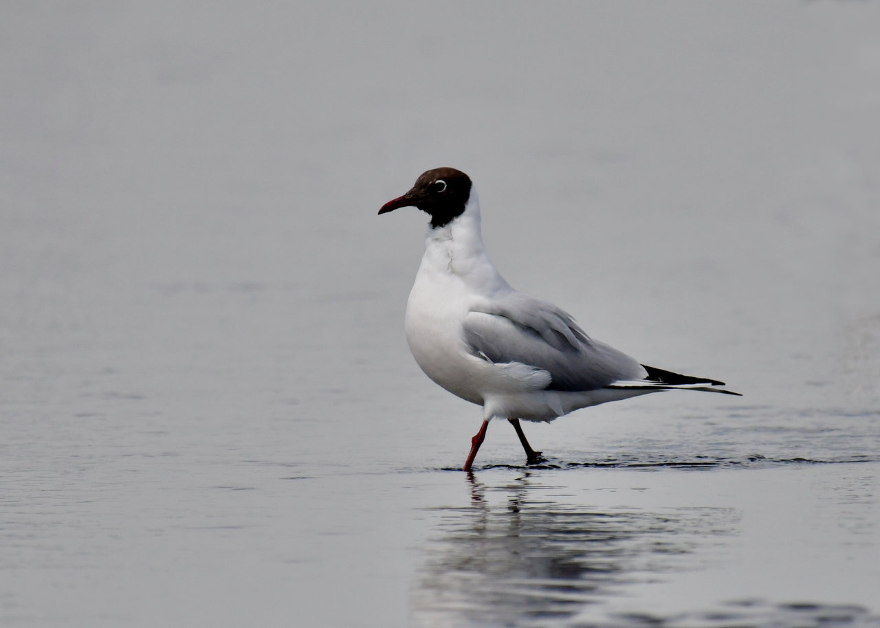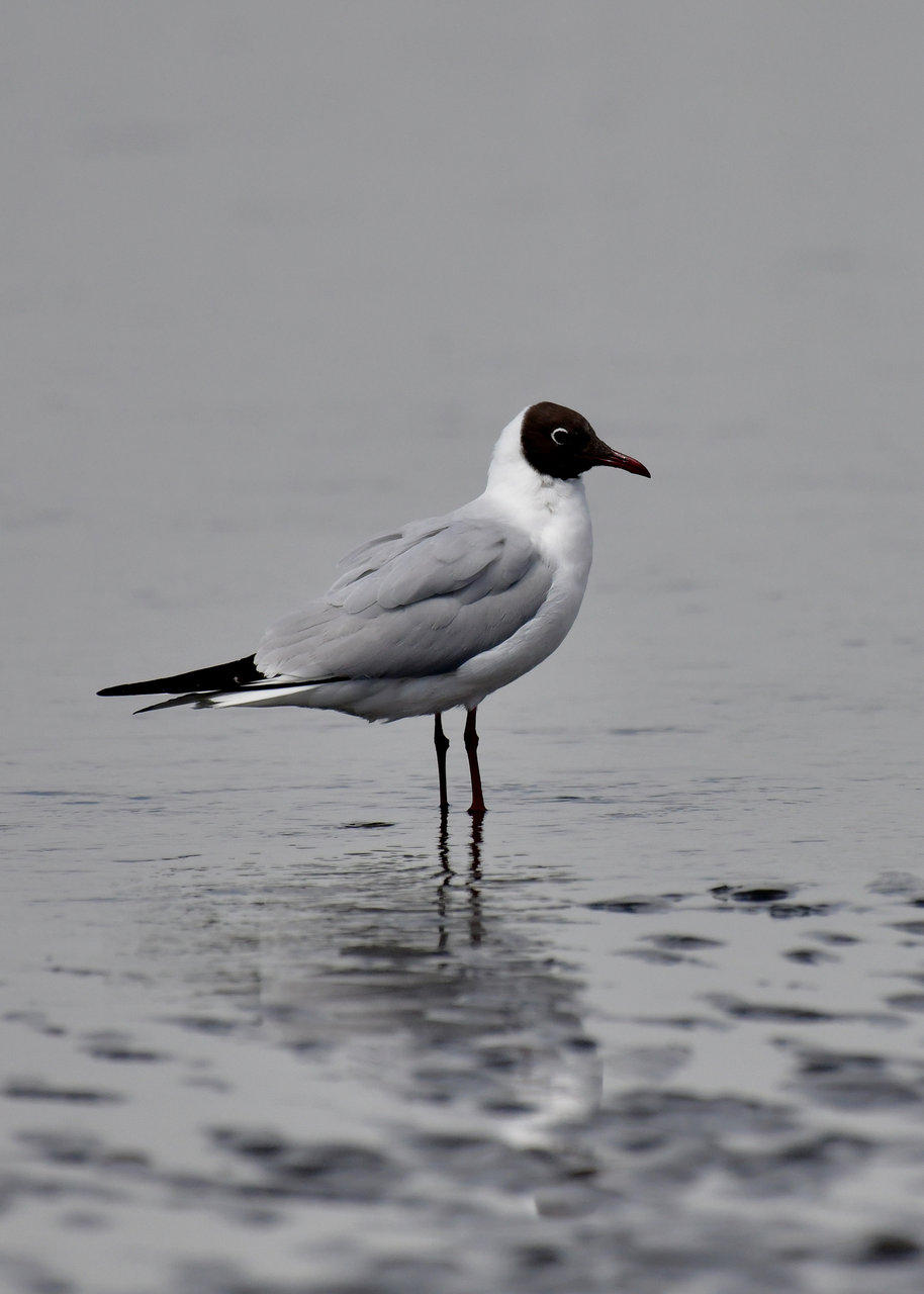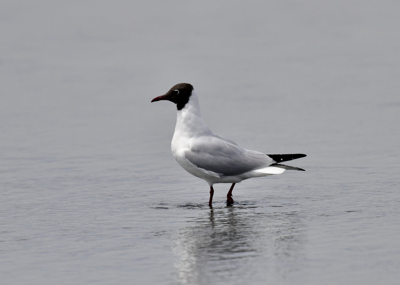 ユリカモメ・夏羽は顔・頭の黒色に近い焦褐色が魅力です。