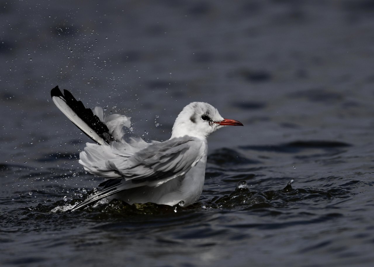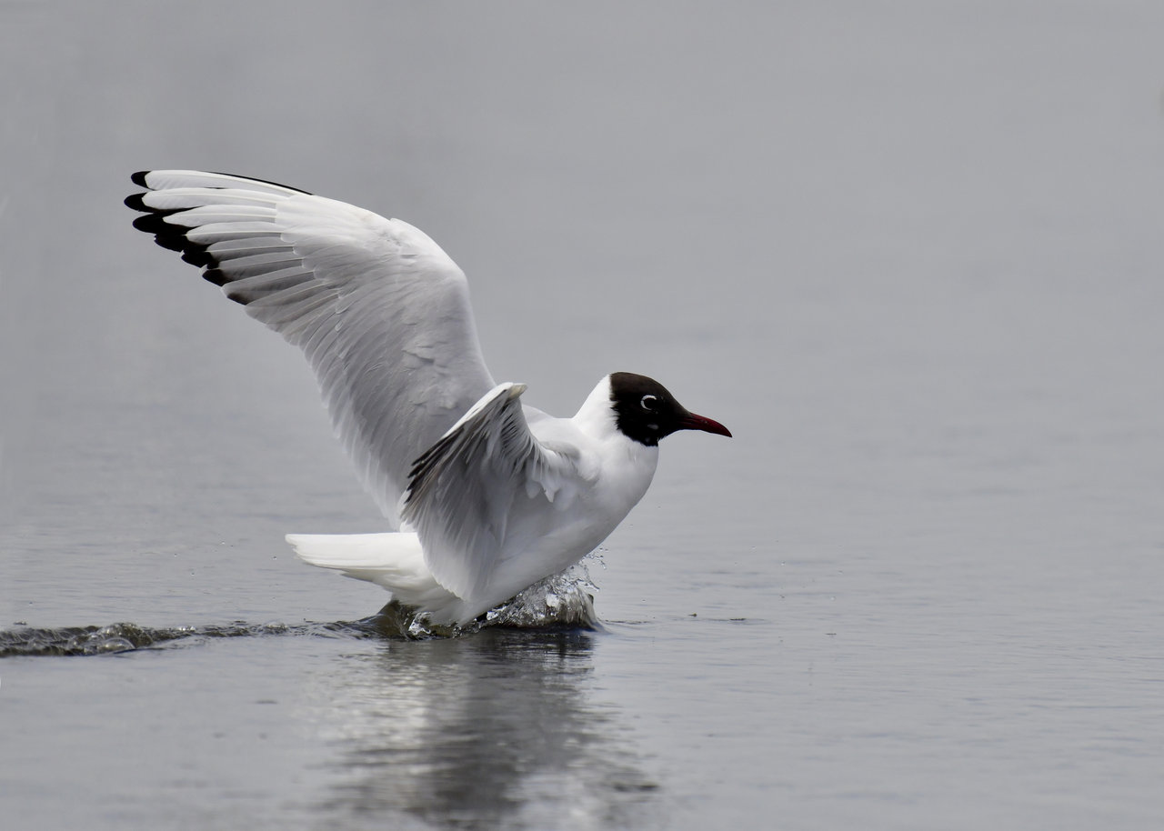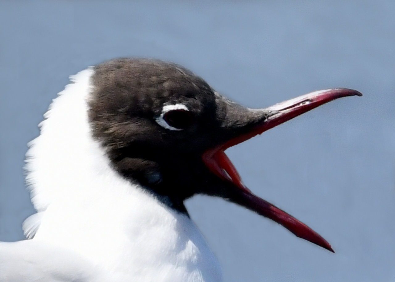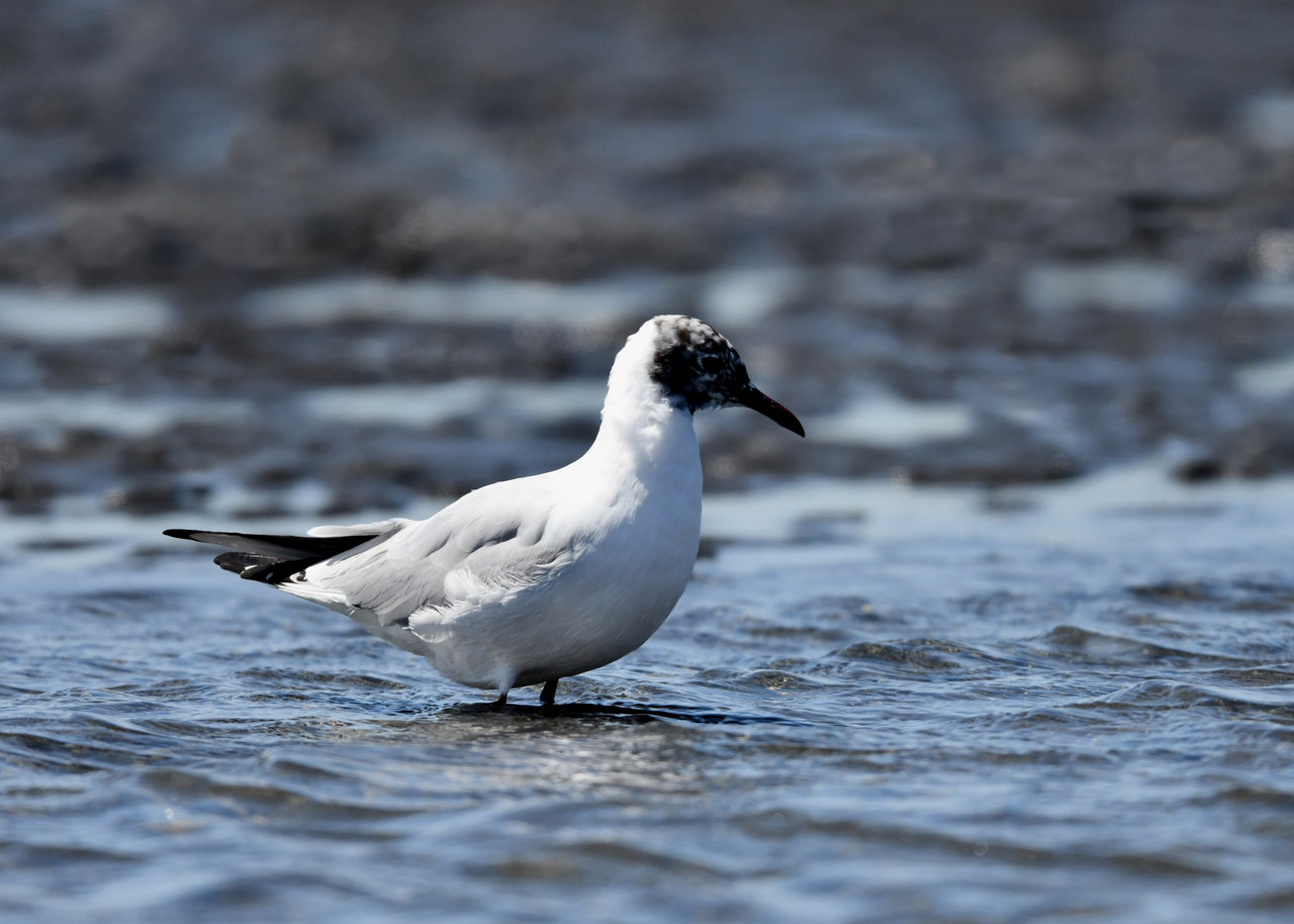 ユリカモメ・夏羽は顔・頭の黒色に近い焦褐色が魅力です。