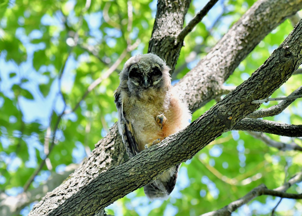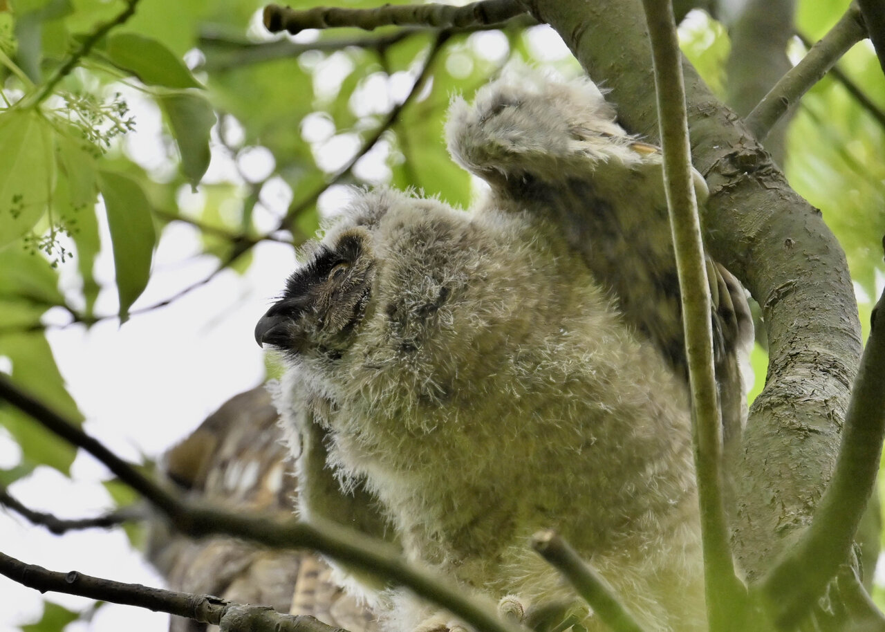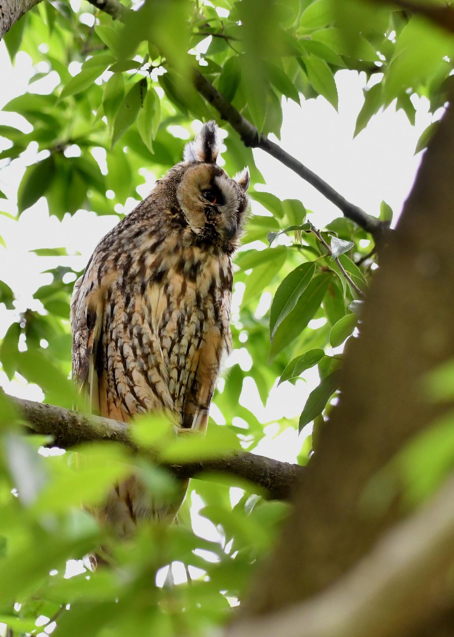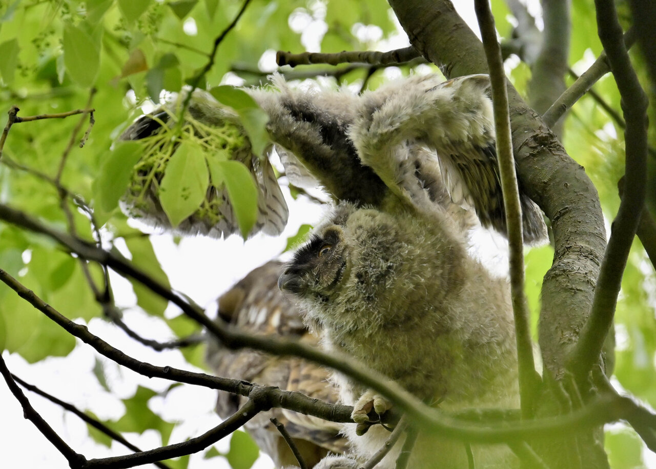 先週、トラフズクのヒナが見えるようになったとの事で出かけてきました。 ヒナは4羽生まれいましたが、早速1羽が落鳥(間引きかも?)地元の鳥友が巣に戻してくれましたが矢張りダメで助からず3羽のヒナになりました。