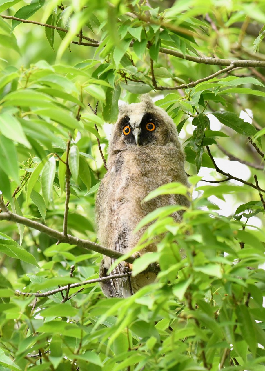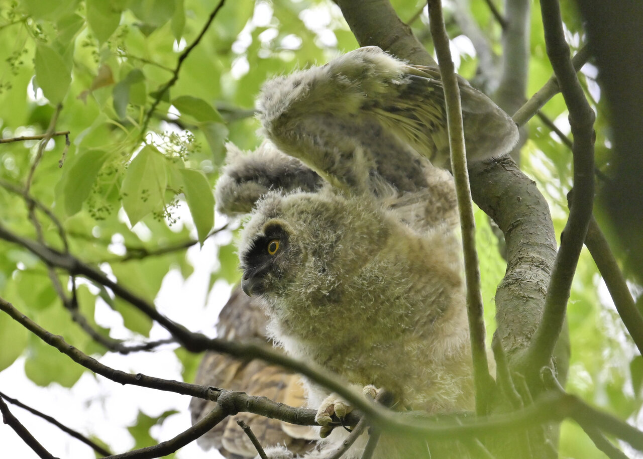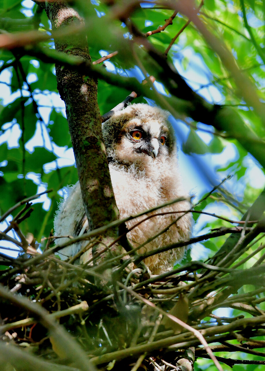 先週、トラフズクのヒナが見えるようになったとの事で出かけてきました。 ヒナは4羽生まれいましたが、早速1羽が落鳥(間引きかも?)地元の鳥友が巣に戻してくれましたが矢張りダメで助からず3羽のヒナになりました。