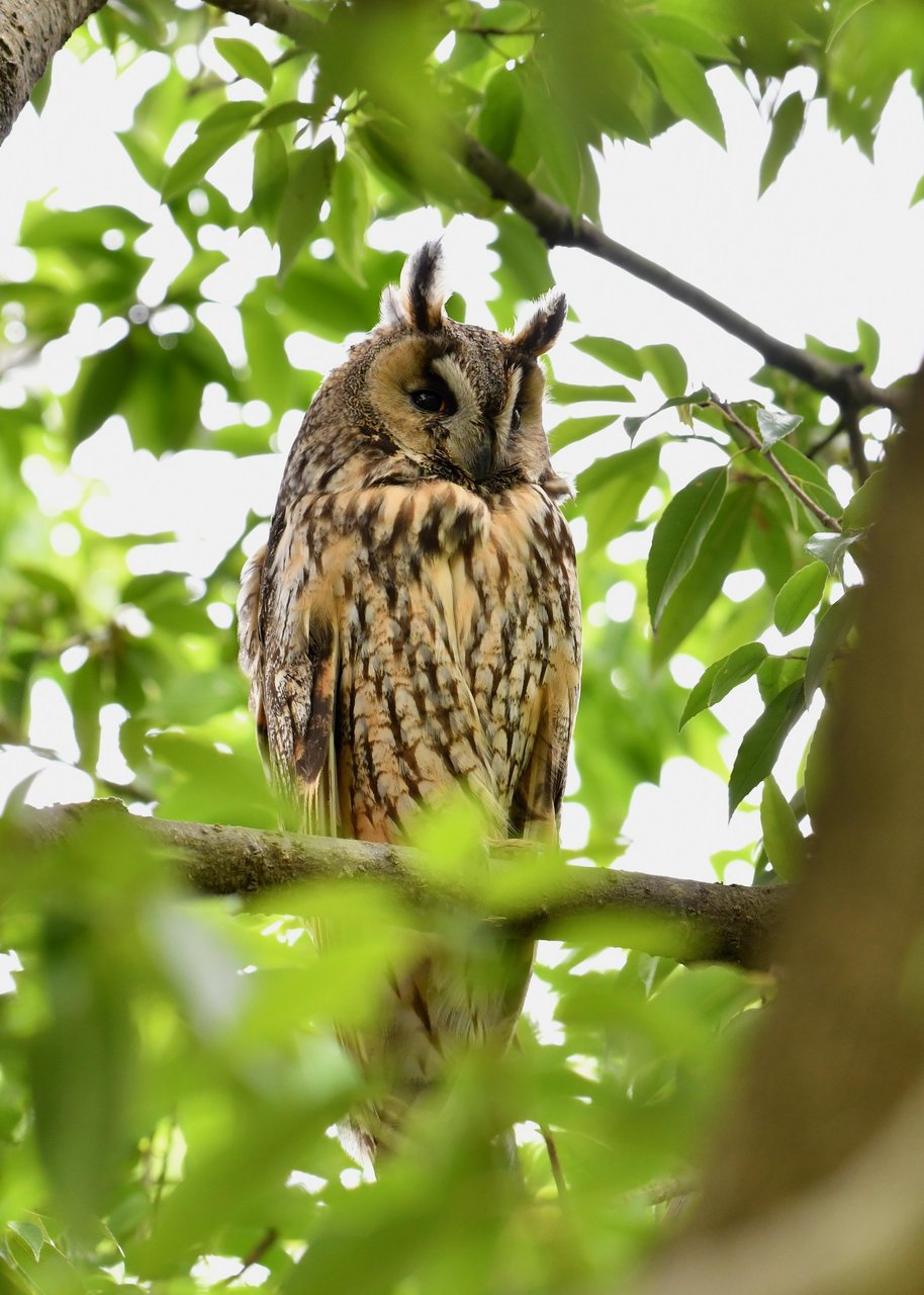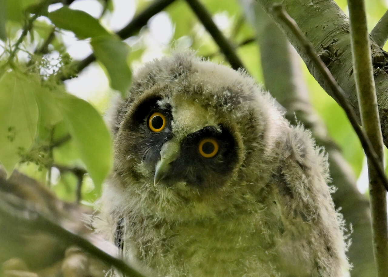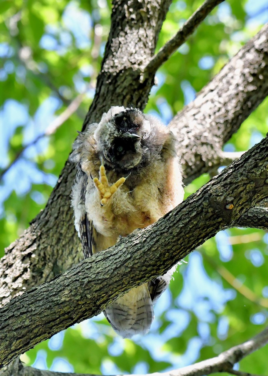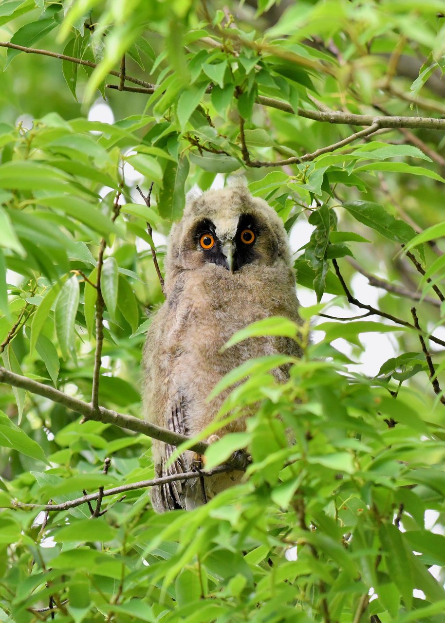 先週、トラフズクのヒナが見えるようになったとの事で出かけてきました。 ヒナは4羽生まれいましたが、早速1羽が落鳥(間引きかも?)地元の鳥友が巣に戻してくれましたが矢張りダメで助からず3羽のヒナになりました。