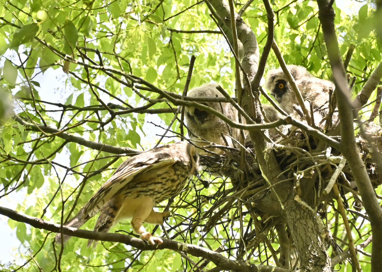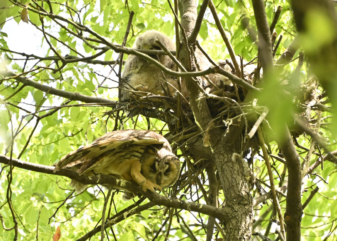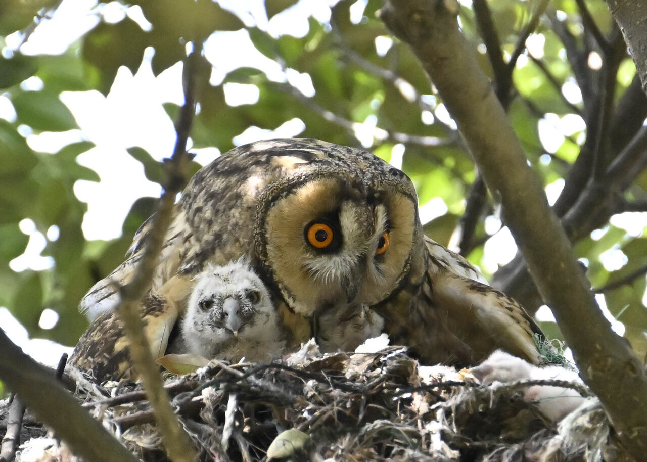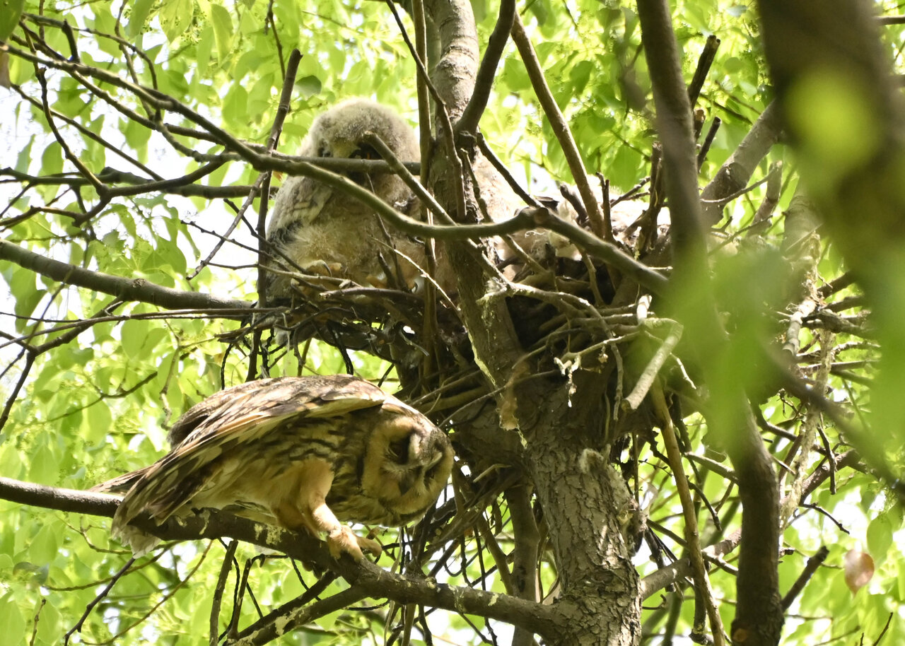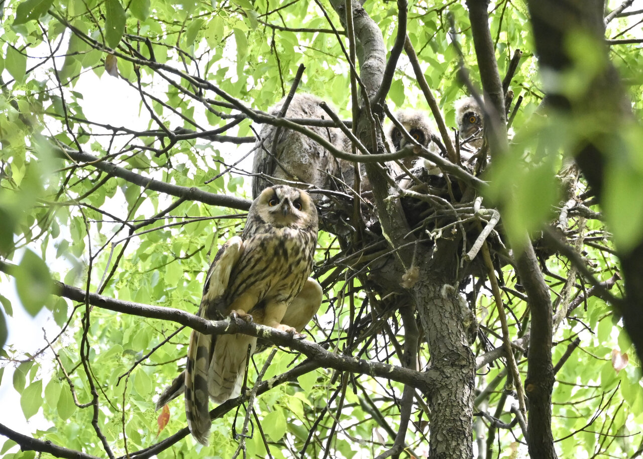 「トラフズク♀親とヒナ」 撮影地 : 埼玉県加須市