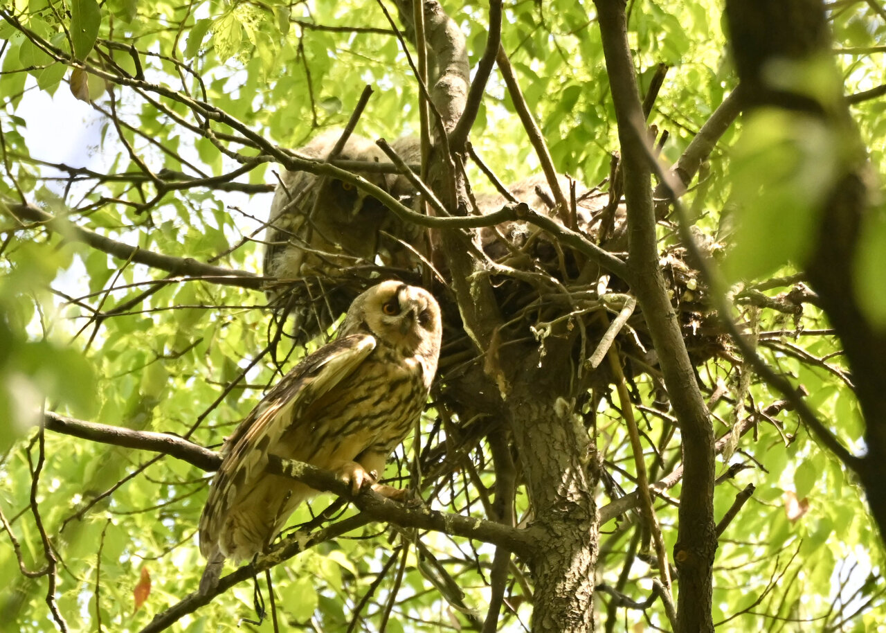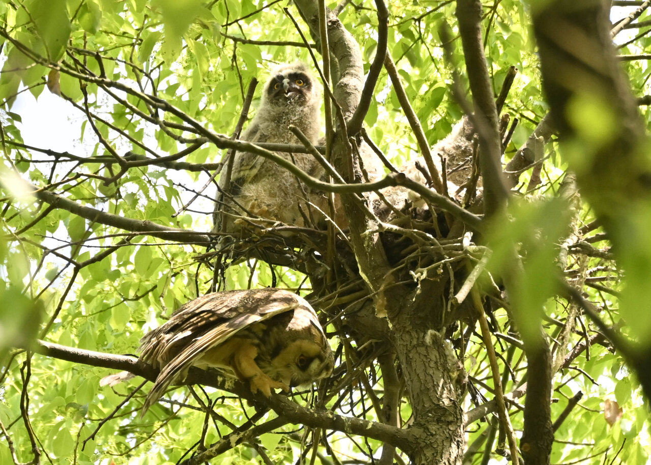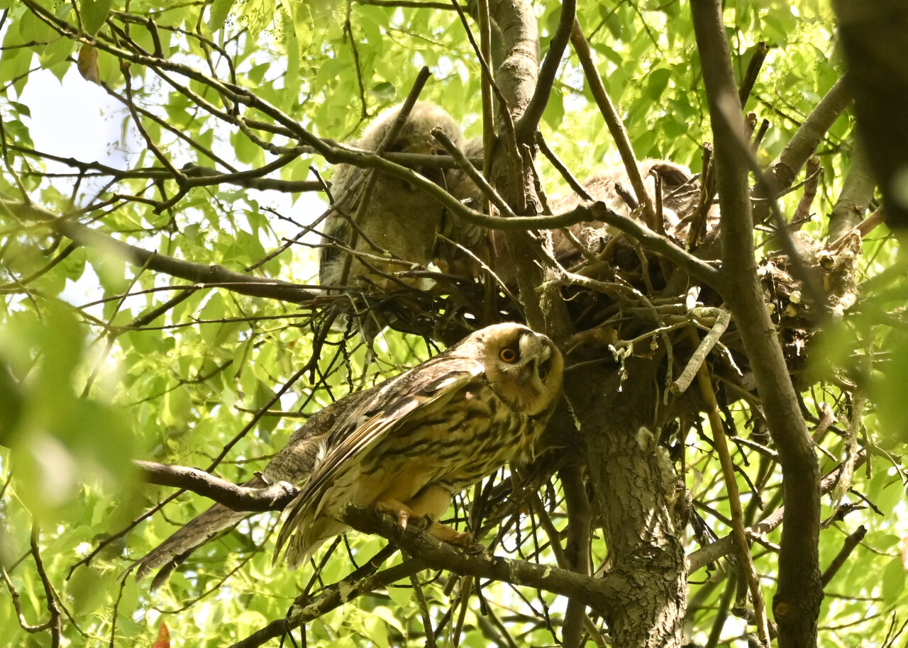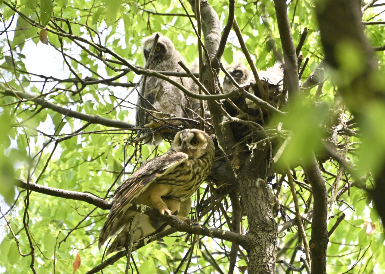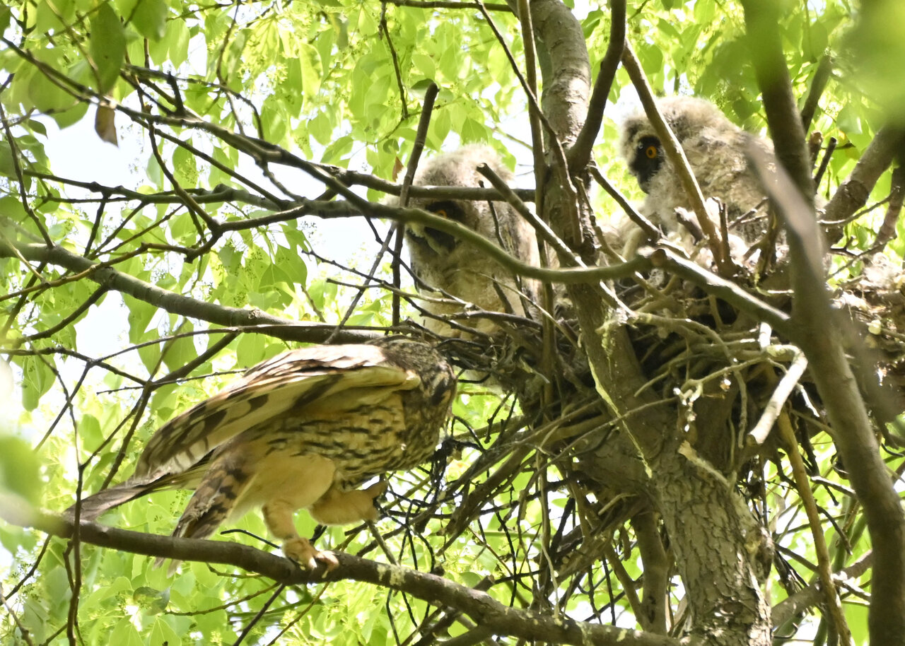 「トラフズク♀親とヒナ」 撮影地 : 埼玉県加須市