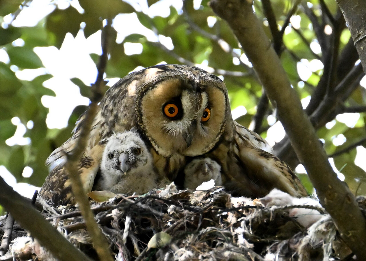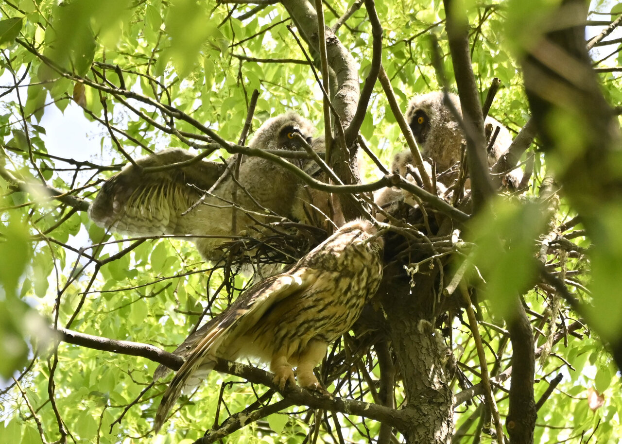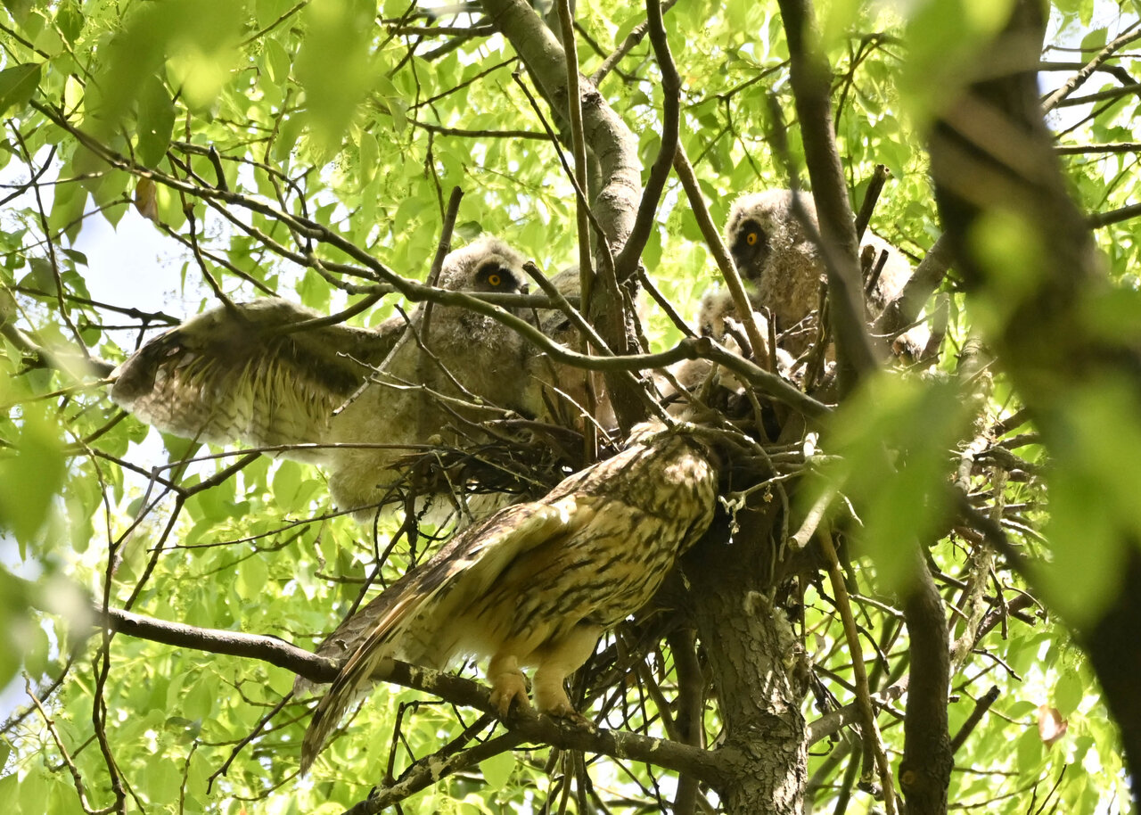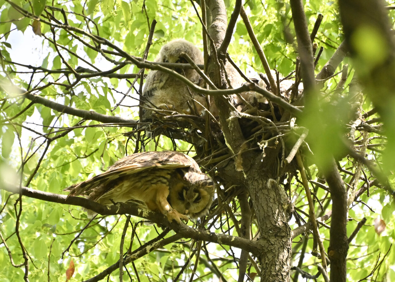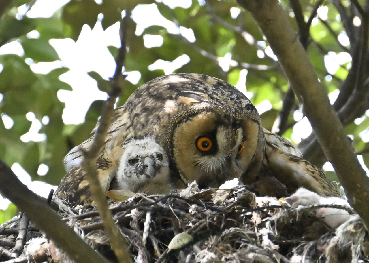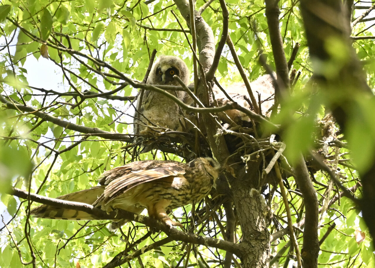 「トラフズク♀親とヒナ」 撮影地 : 埼玉県加須市