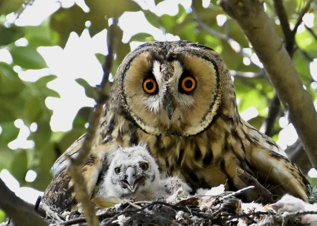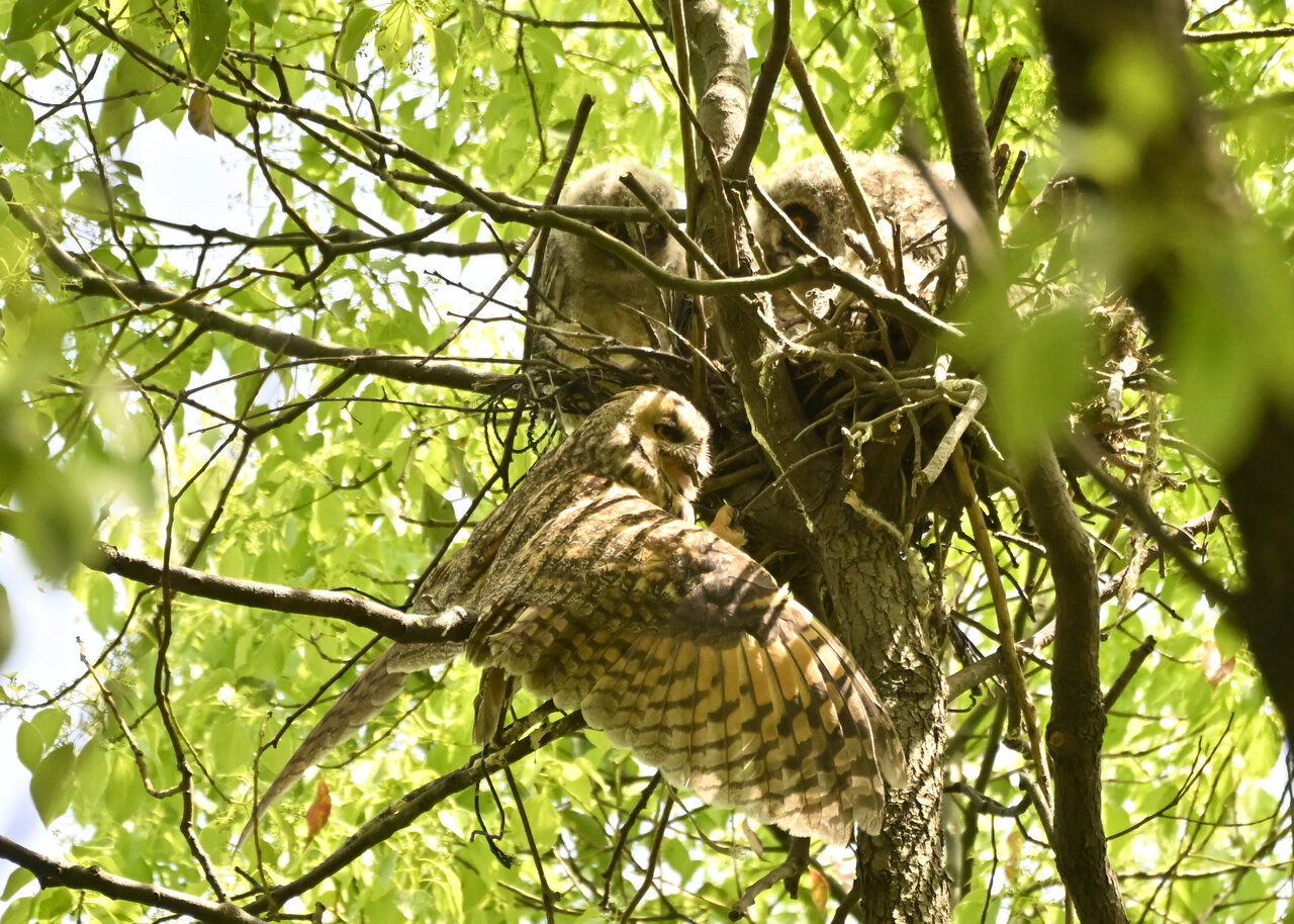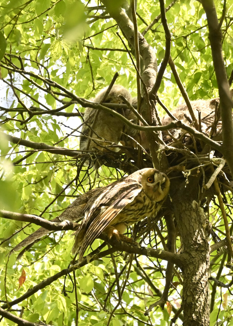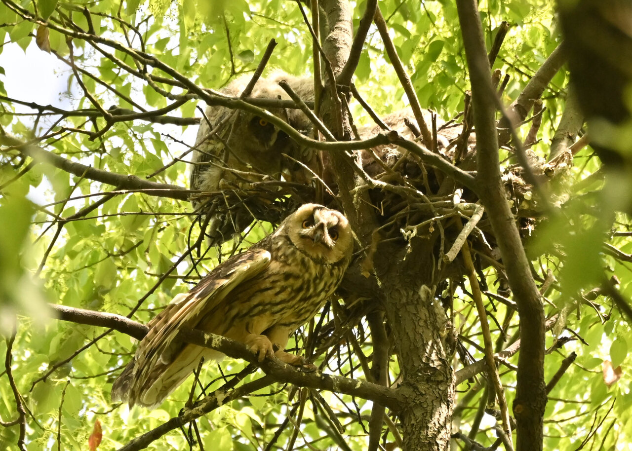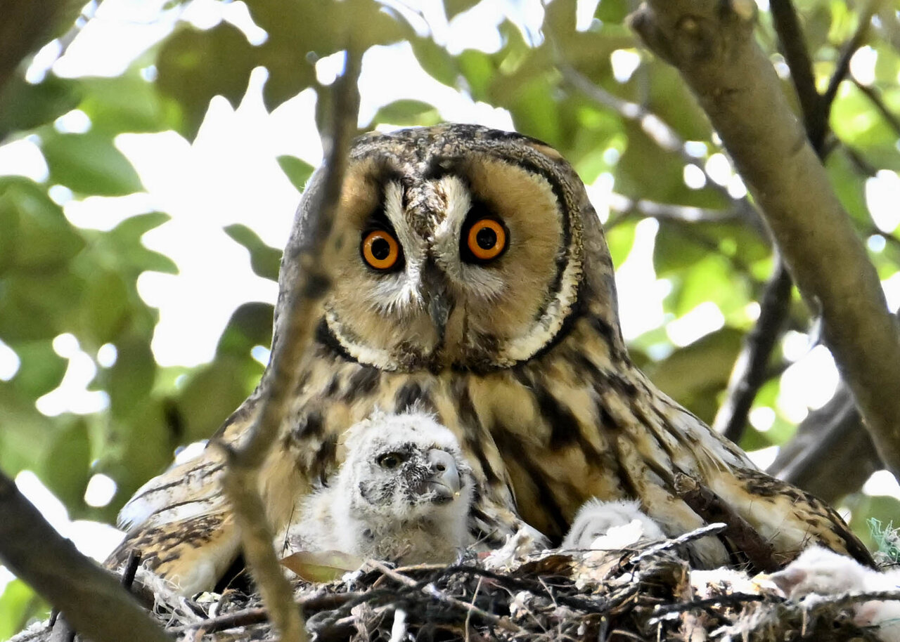 「トラフズク♀親とヒナ」 撮影地 : 埼玉県加須市