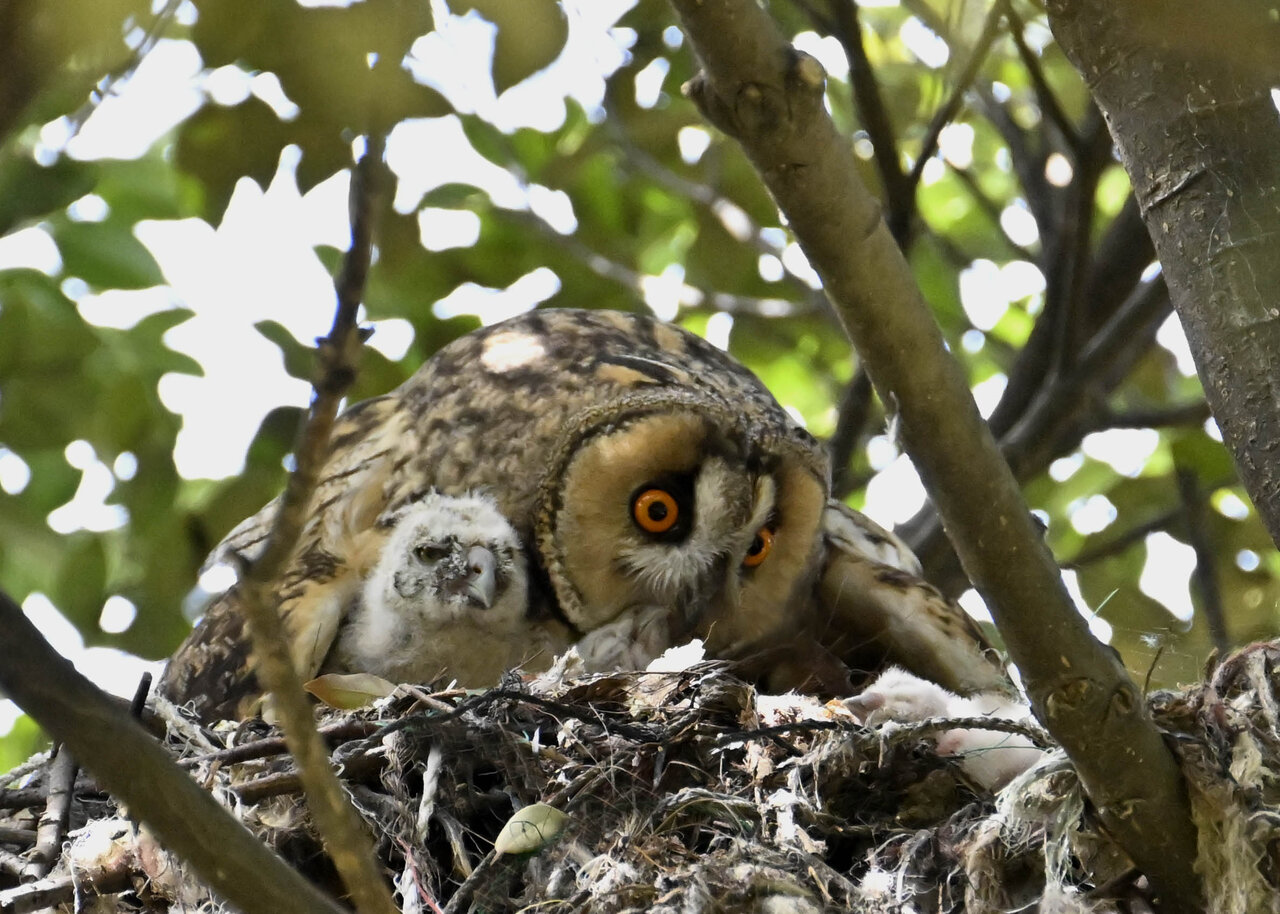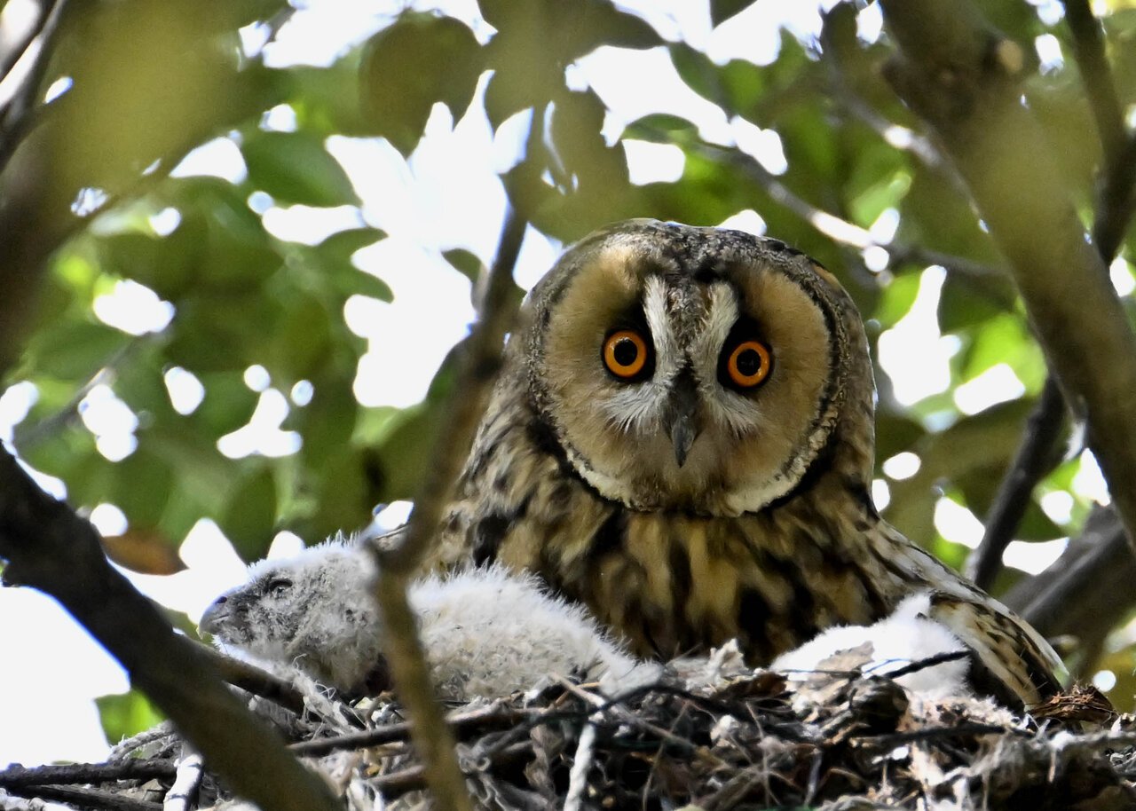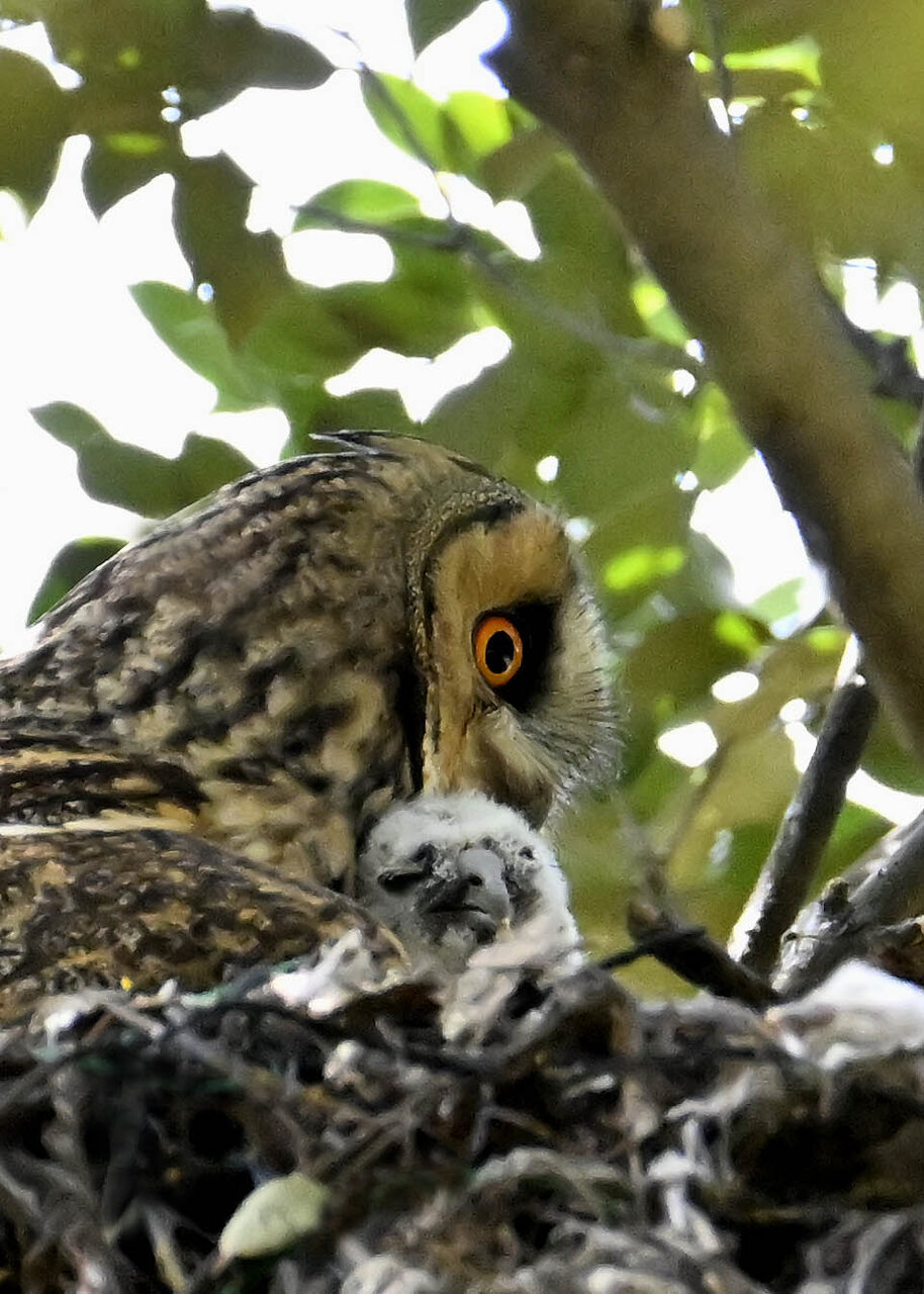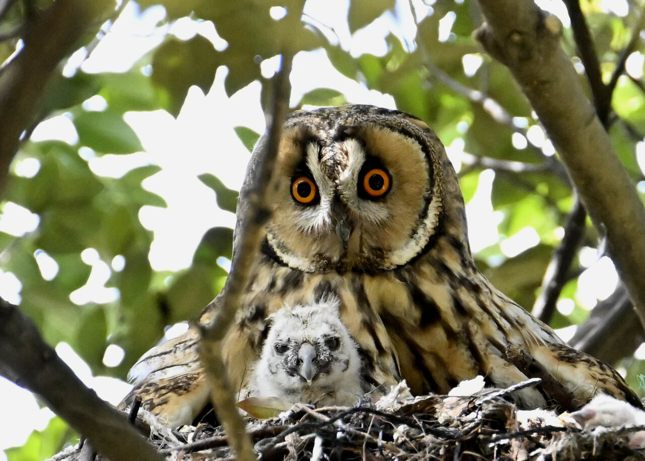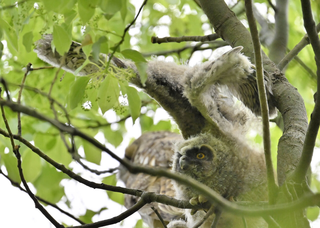 「トラフズク♀親とヒナ」 撮影地 : 埼玉県加須市