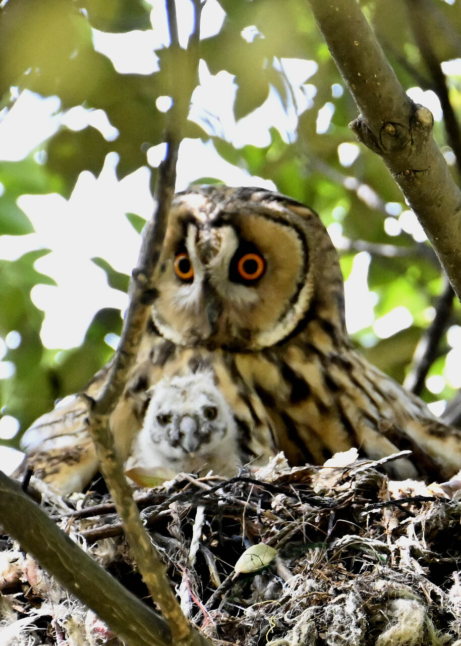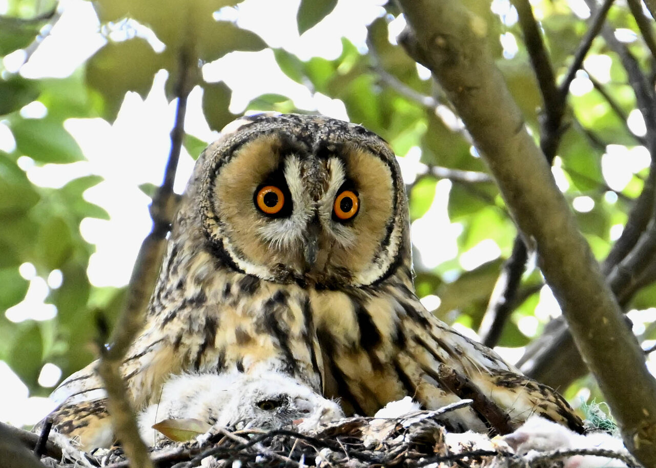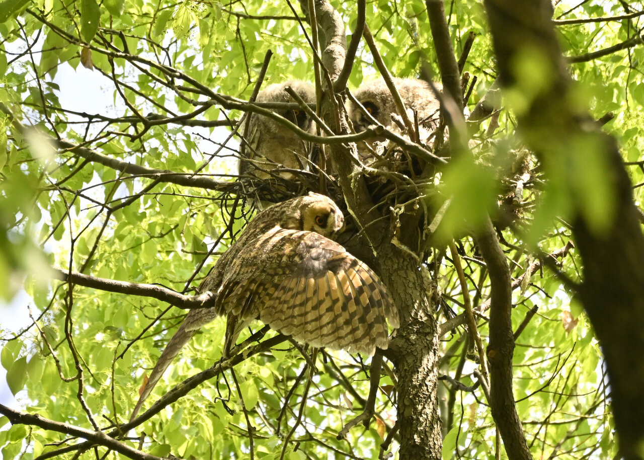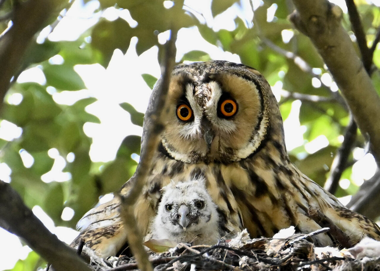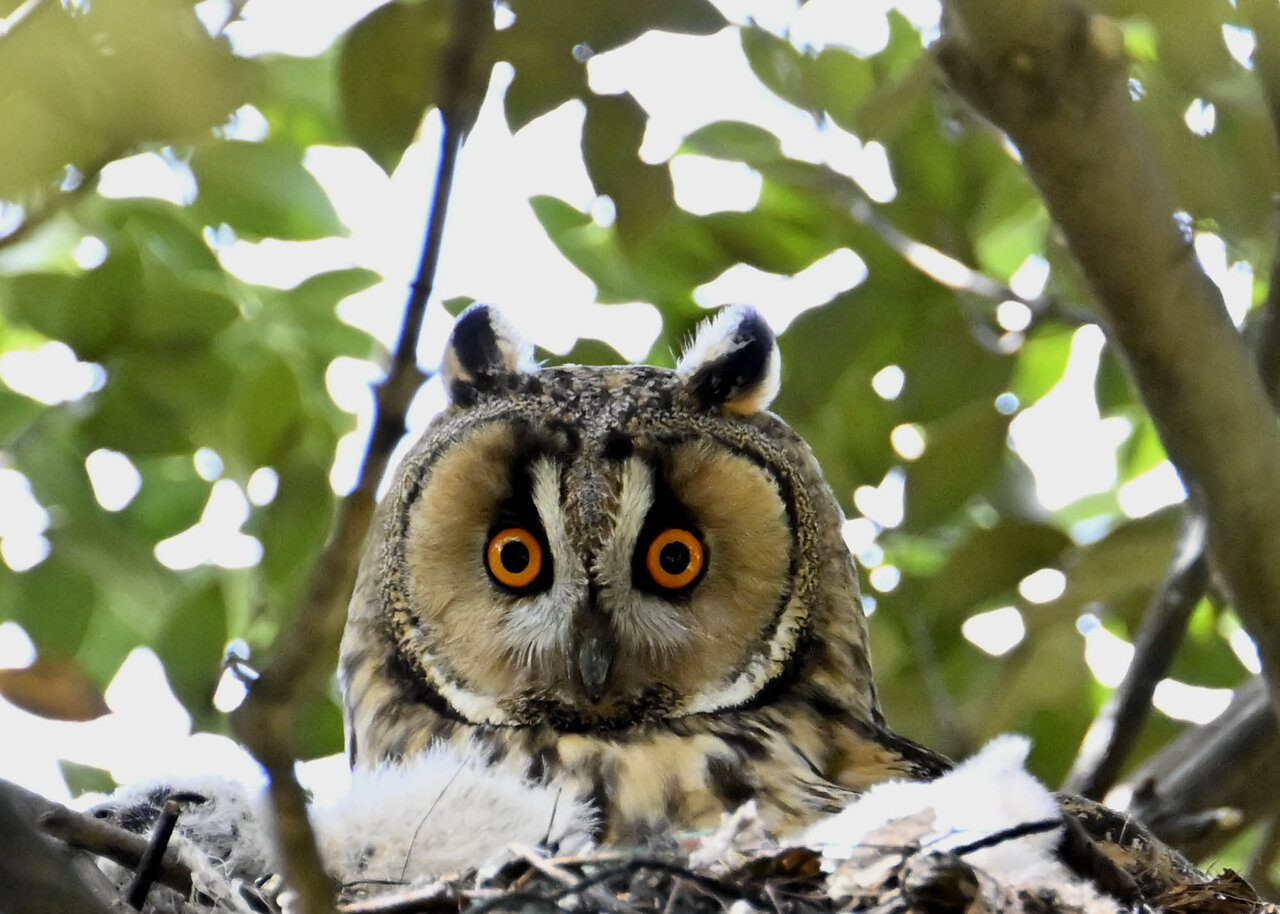 「トラフズク♀親とヒナ」 撮影地 : 埼玉県加須市